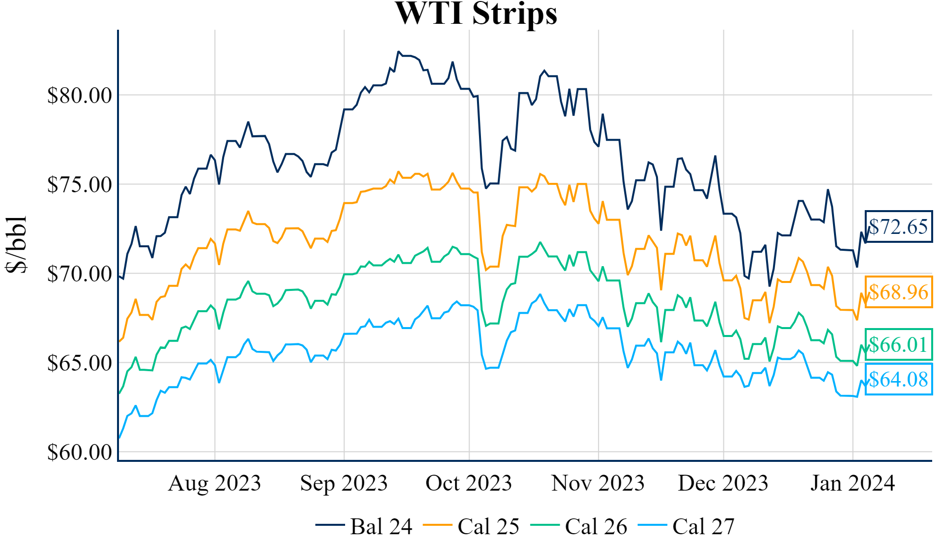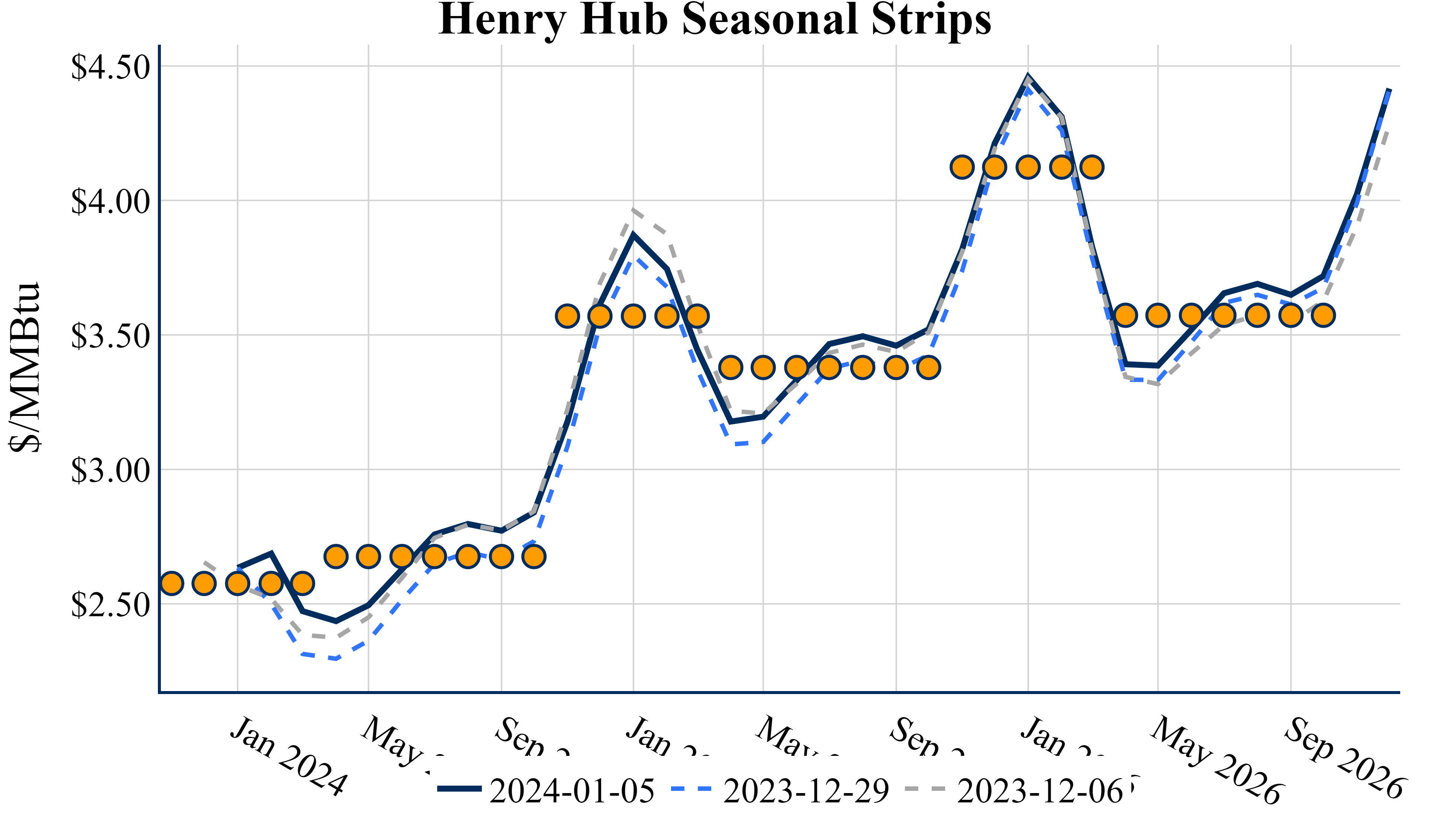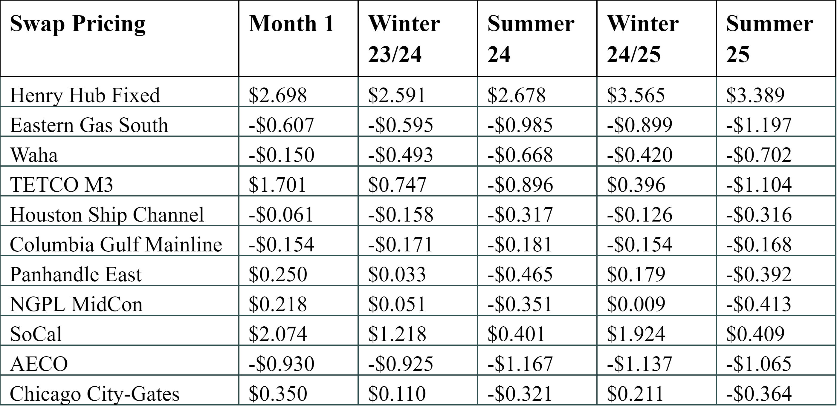 The Winter ‘23/’24 strip is down 12.5c to $2.590, and the Summer ’24 strip is down 7.2c to $2.691