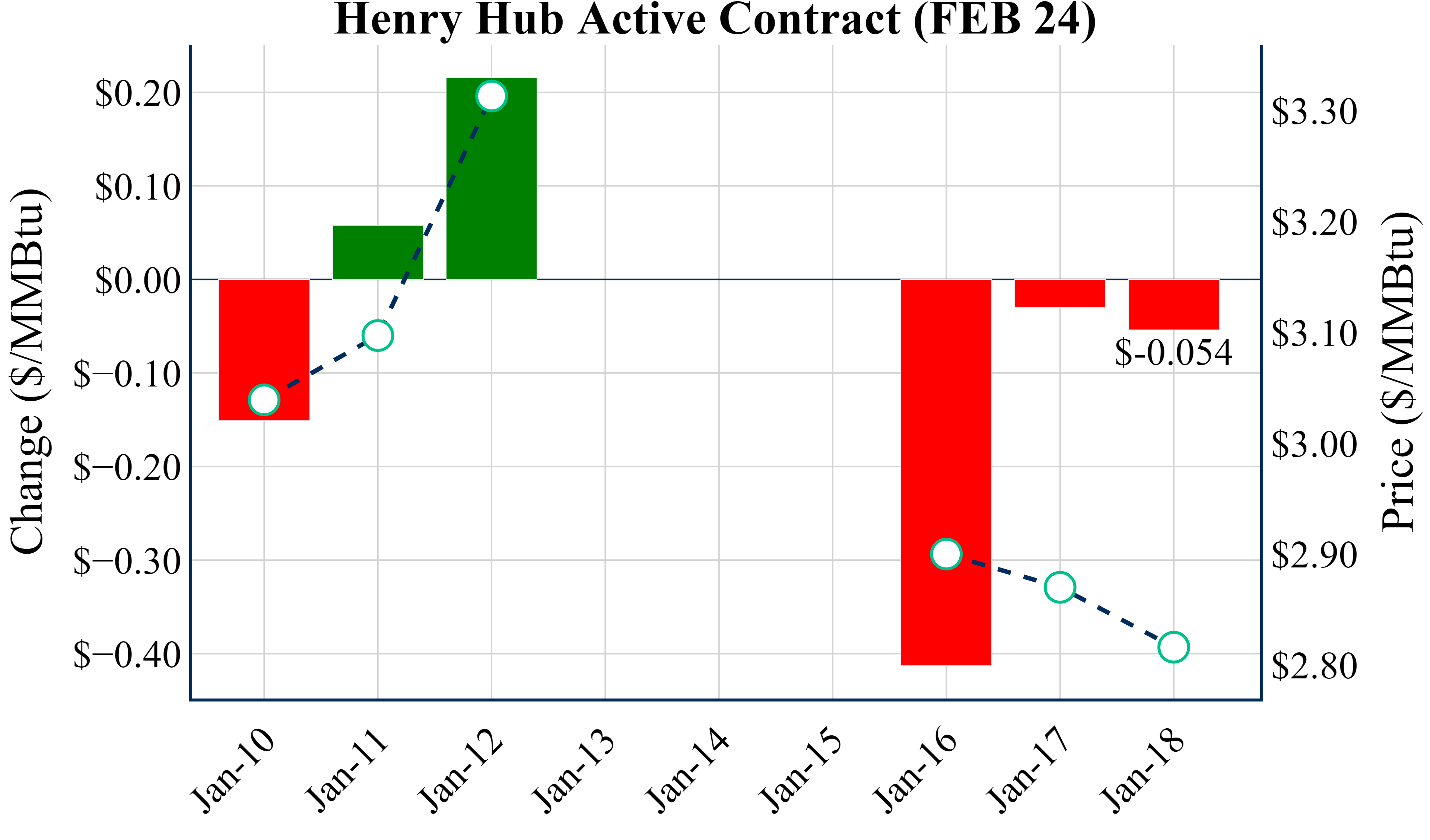 These issues resulted in a drop in Freeport LNG nominations to 0.85 Bcf/d, later increasing to 1.62 Bcf/d, with the reason for the January 15 decline to 0.79 Bcf/d still unclear