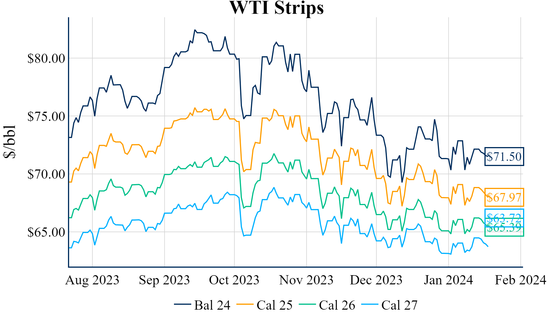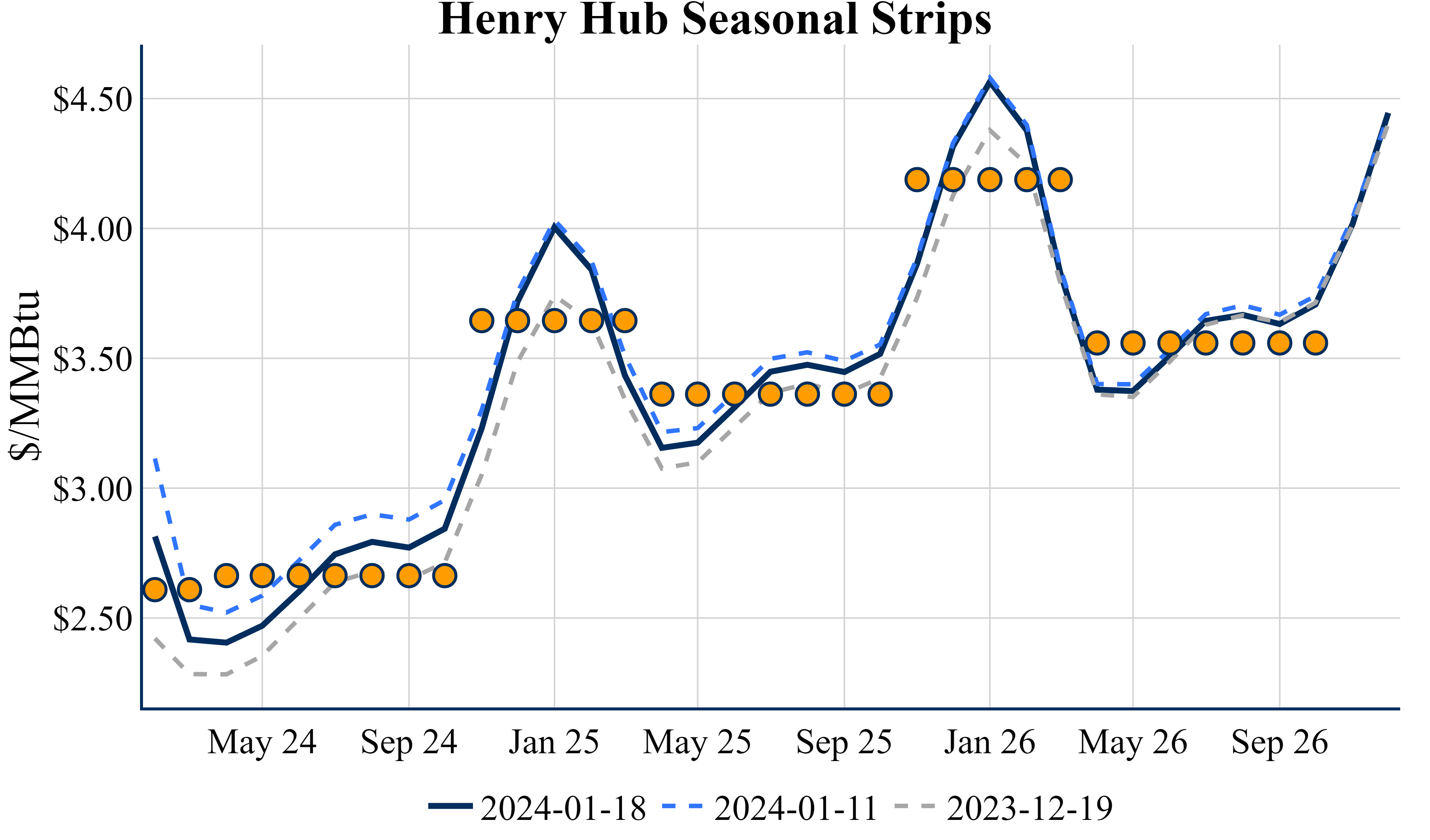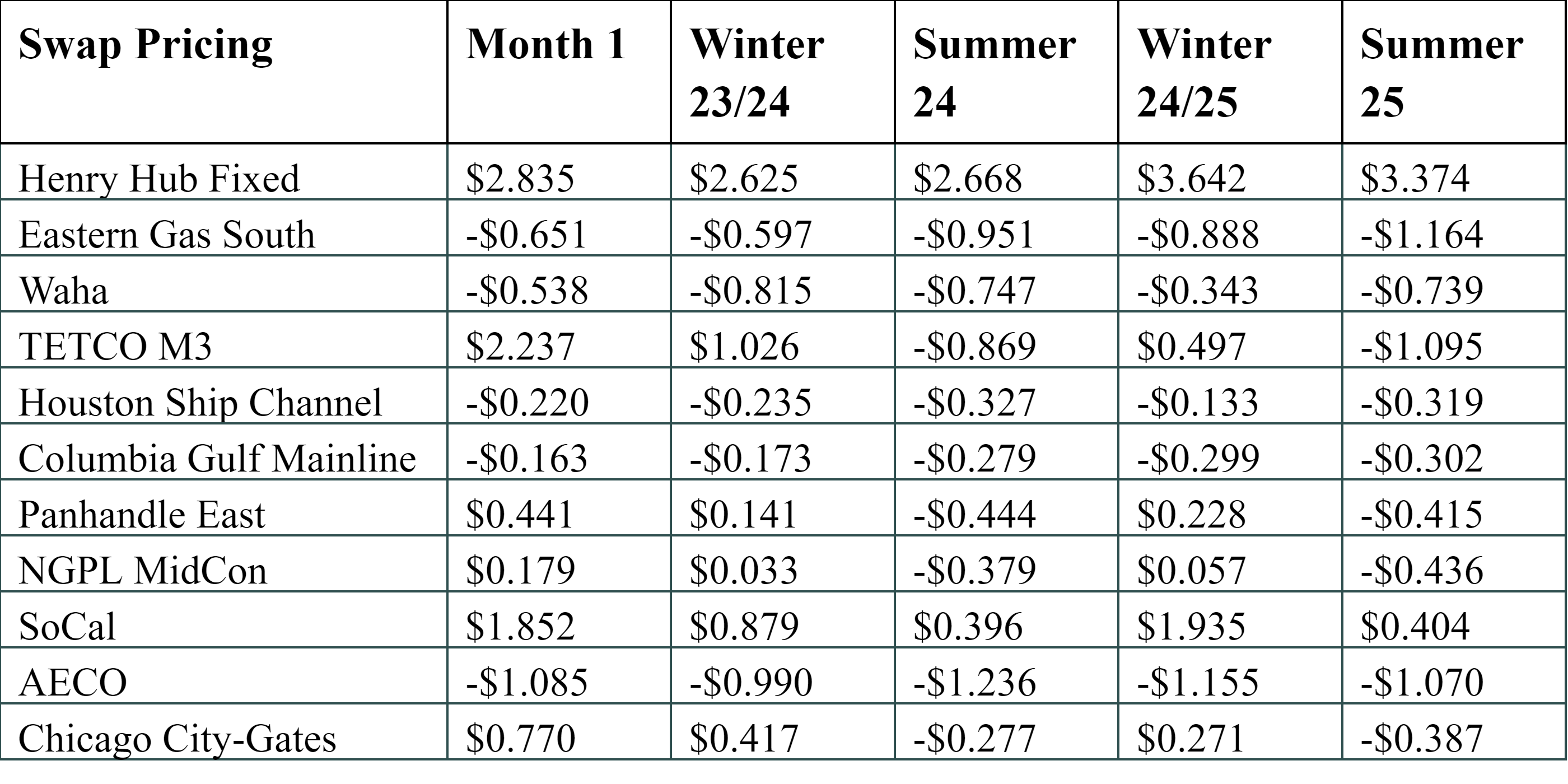 The Winter ‘23/’24 strip is down 4.8c to $2.602, and the Summer ’24 strip is down 4.1c to $2.659