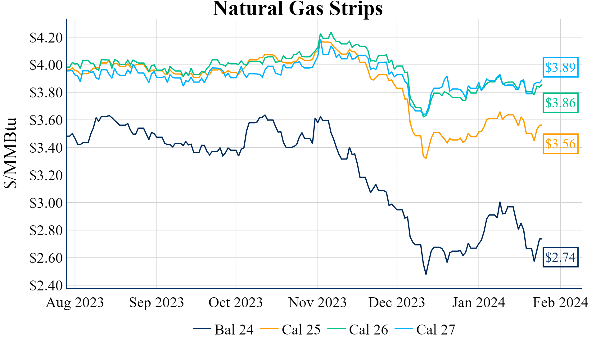 February ’24 Henry Hub is up 13.1c this morning to trade around $2.772/MMBtu
