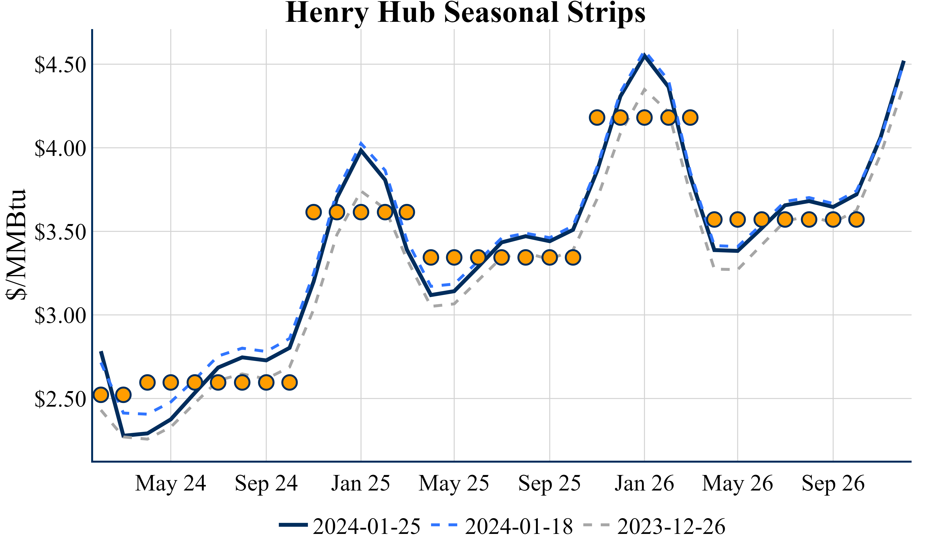 The Winter ‘23/’24 strip is up 4.6c to $2.522, and the Summer ’24 strip is down 0.7c to $2.595