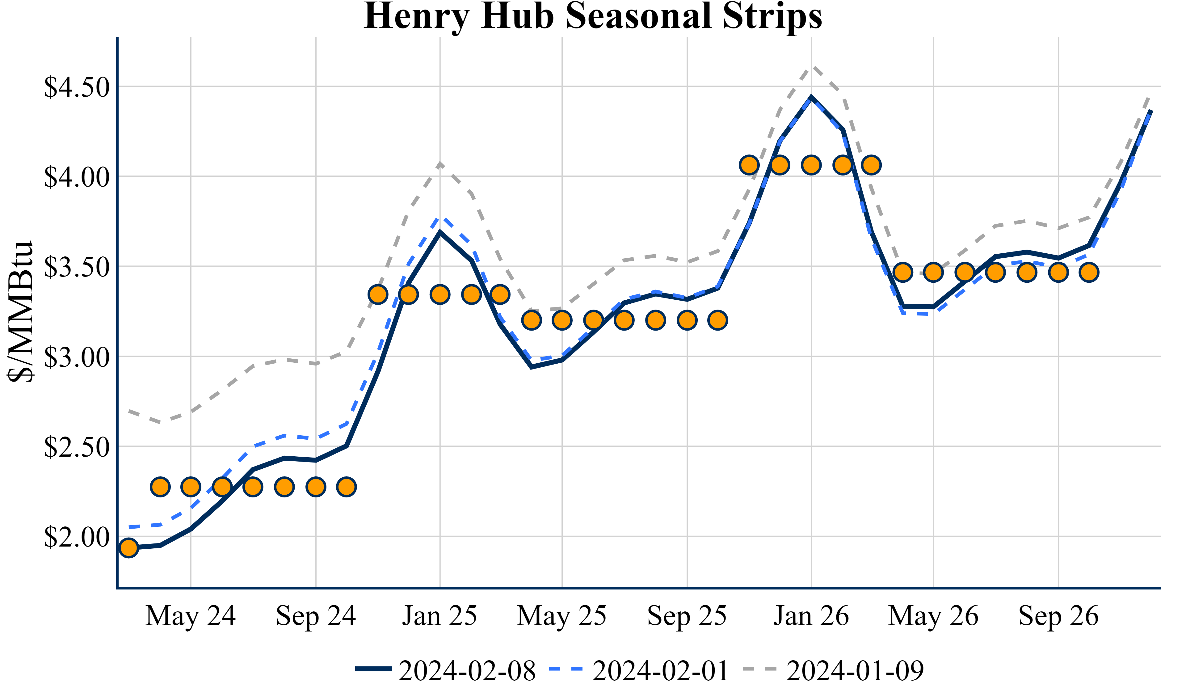 The Summer ’24 strip is down 1.9c to $2.281, and the Winter ‘24/’25 strip is down 0.9c to $3.345