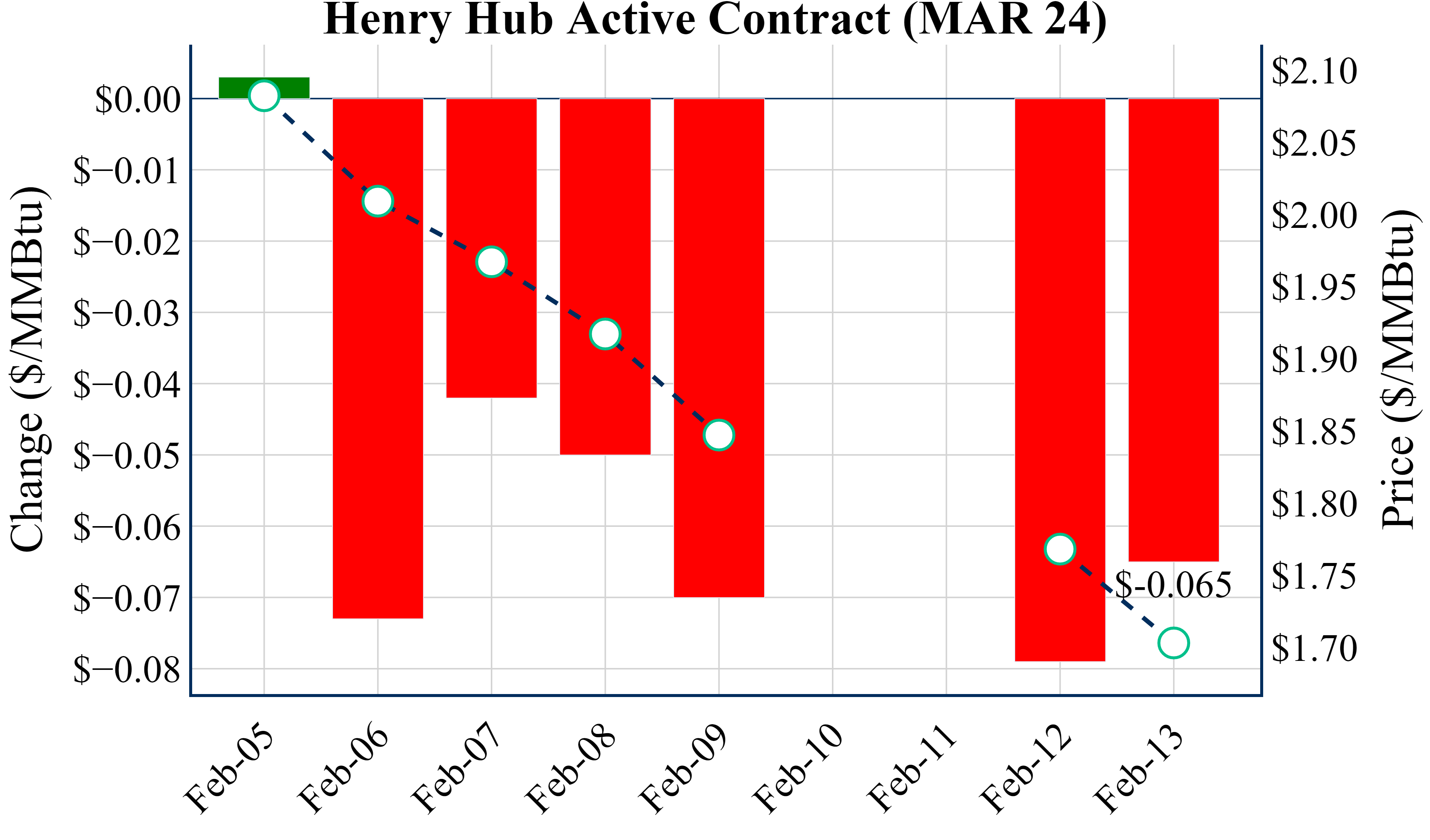The March contract was trading near $1.68/MMBtu around 8:25 AM CST