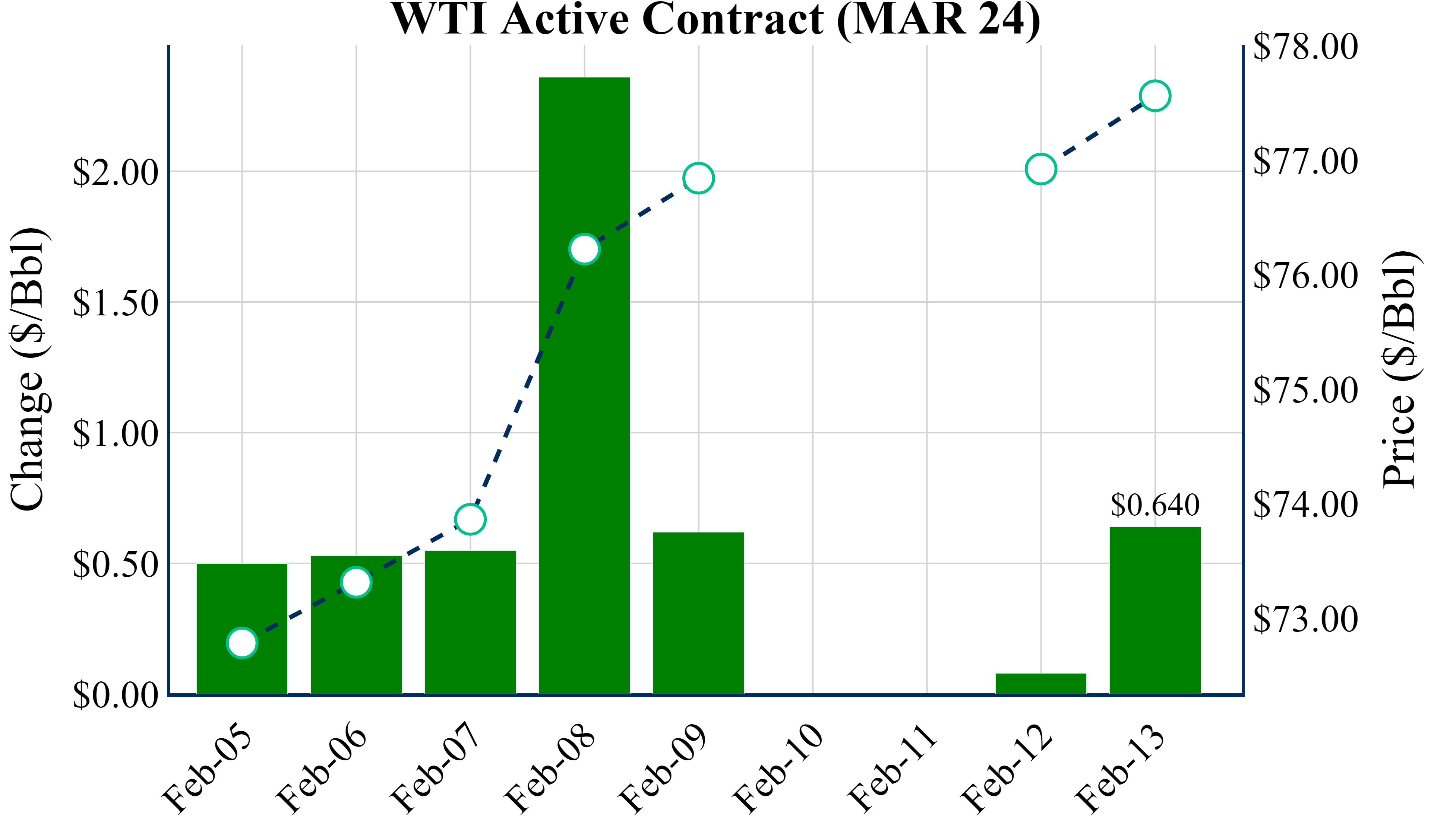 Oil prices are higher today, around $77.50, extending gains from yesterday