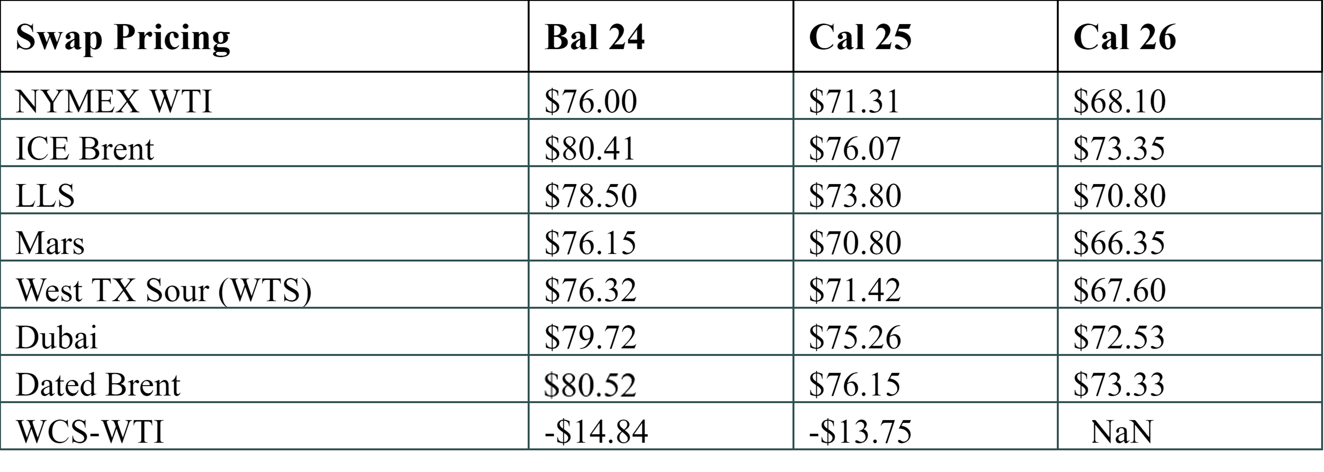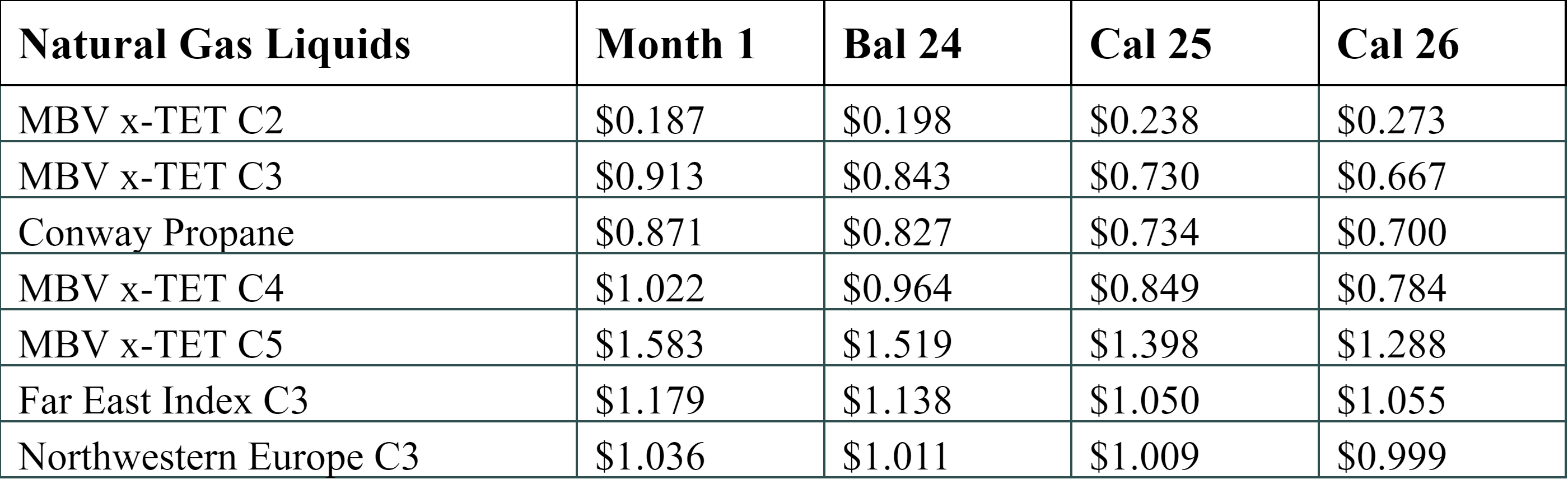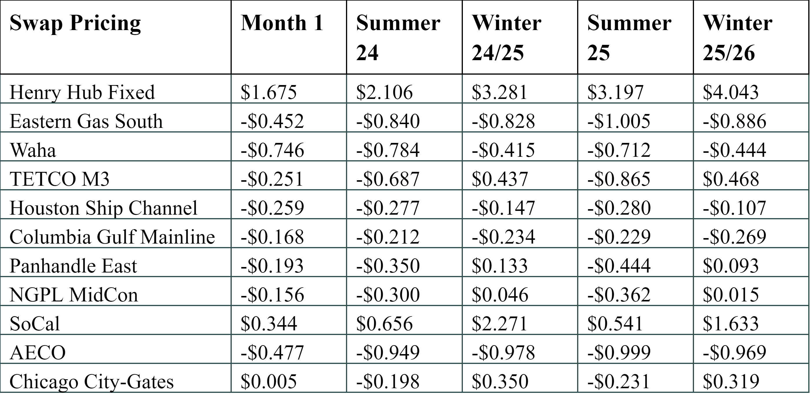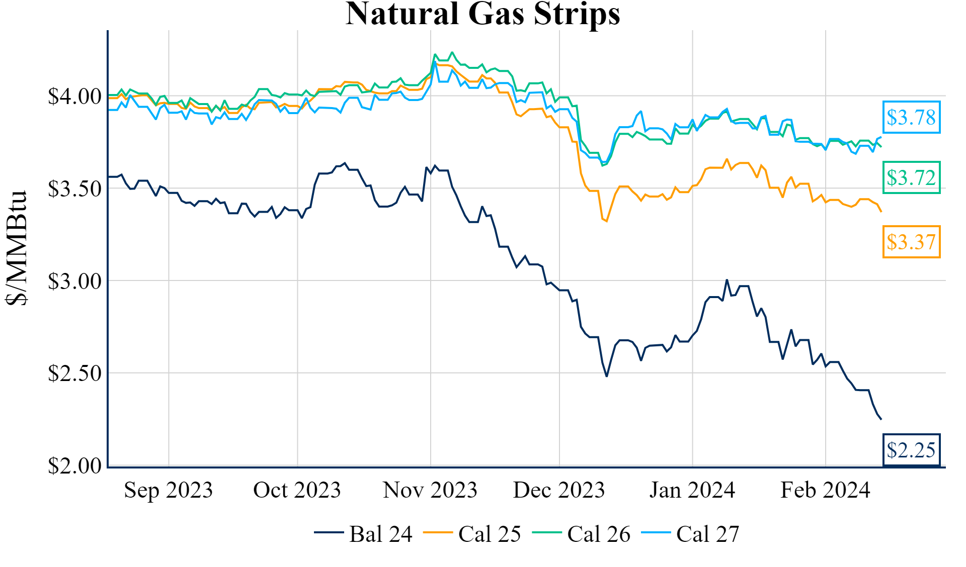 The Summer ’24 strip is down 3.2c to $2.092, and the Winter ‘24/’25 strip is down 5.3c to $3.274