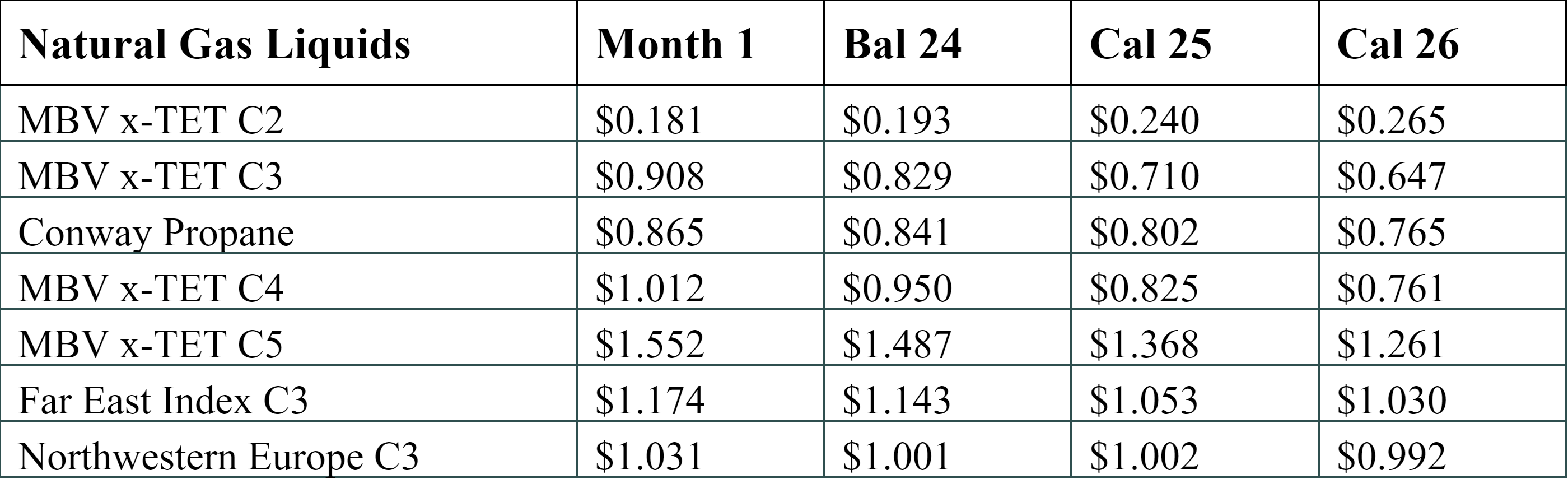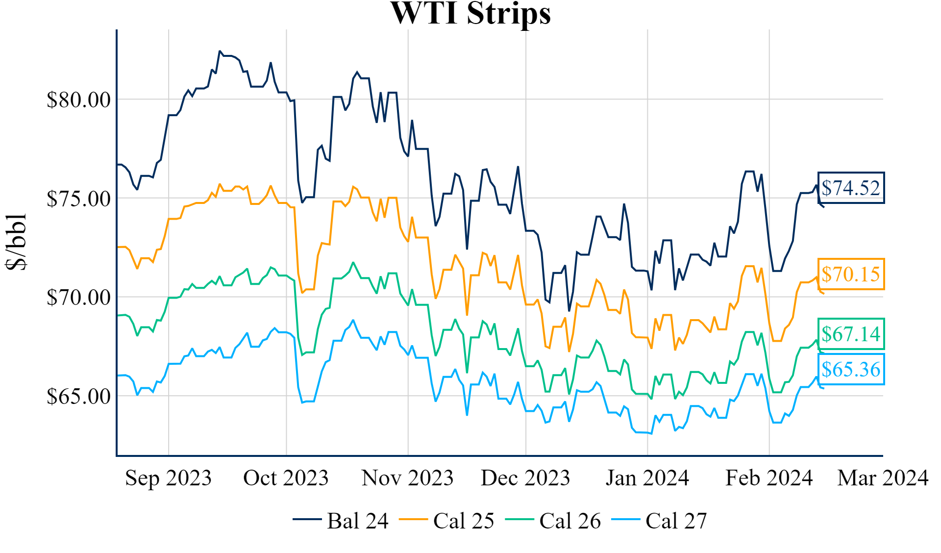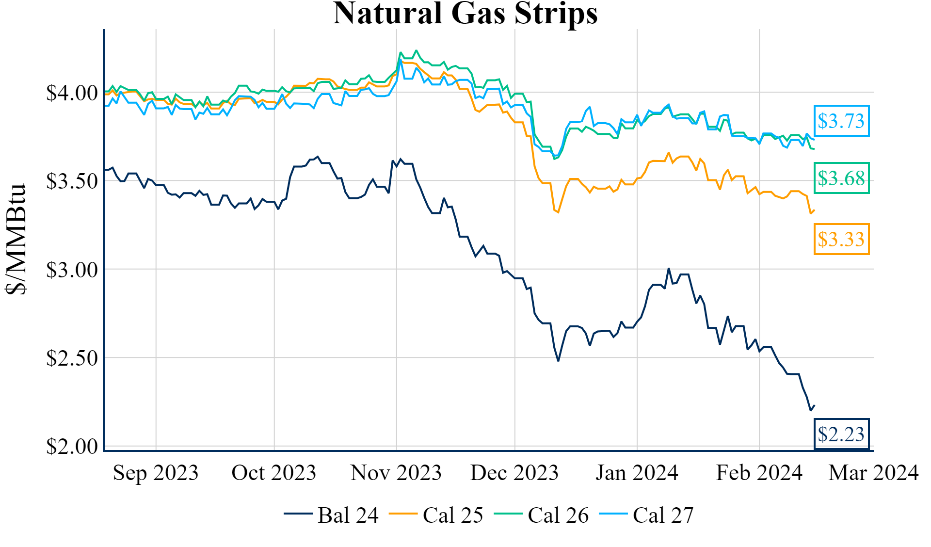 The Summer ’24 strip is up 2.7c to $2.077, and the Winter ‘24/’25 strip is up 2.5c to $3.247