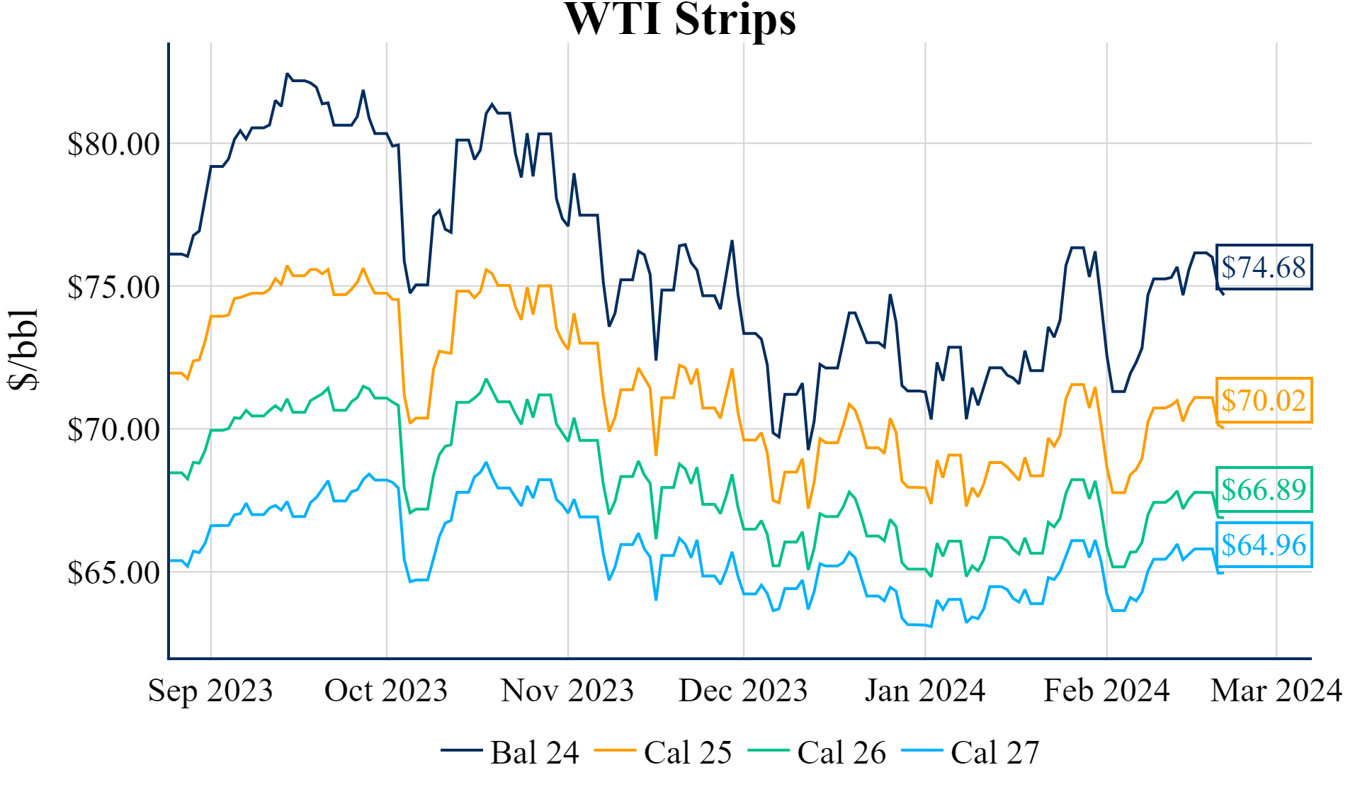 Prompt spreads in WTI Midland, WTI Cushing, and Mars have widened over the past week, along with stronger prices in several crude basis locations