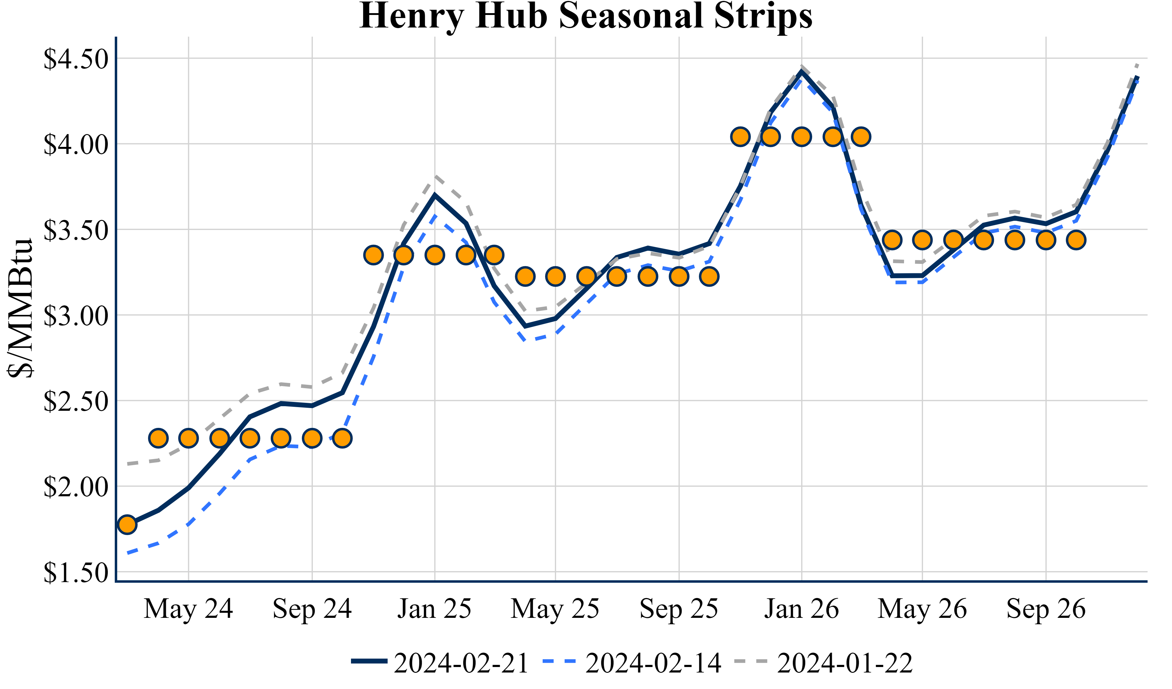 The Summer ’24 strip is up 12.7c to $2.290, and the Winter ‘24/’25 strip is up 6.3c to $3.358