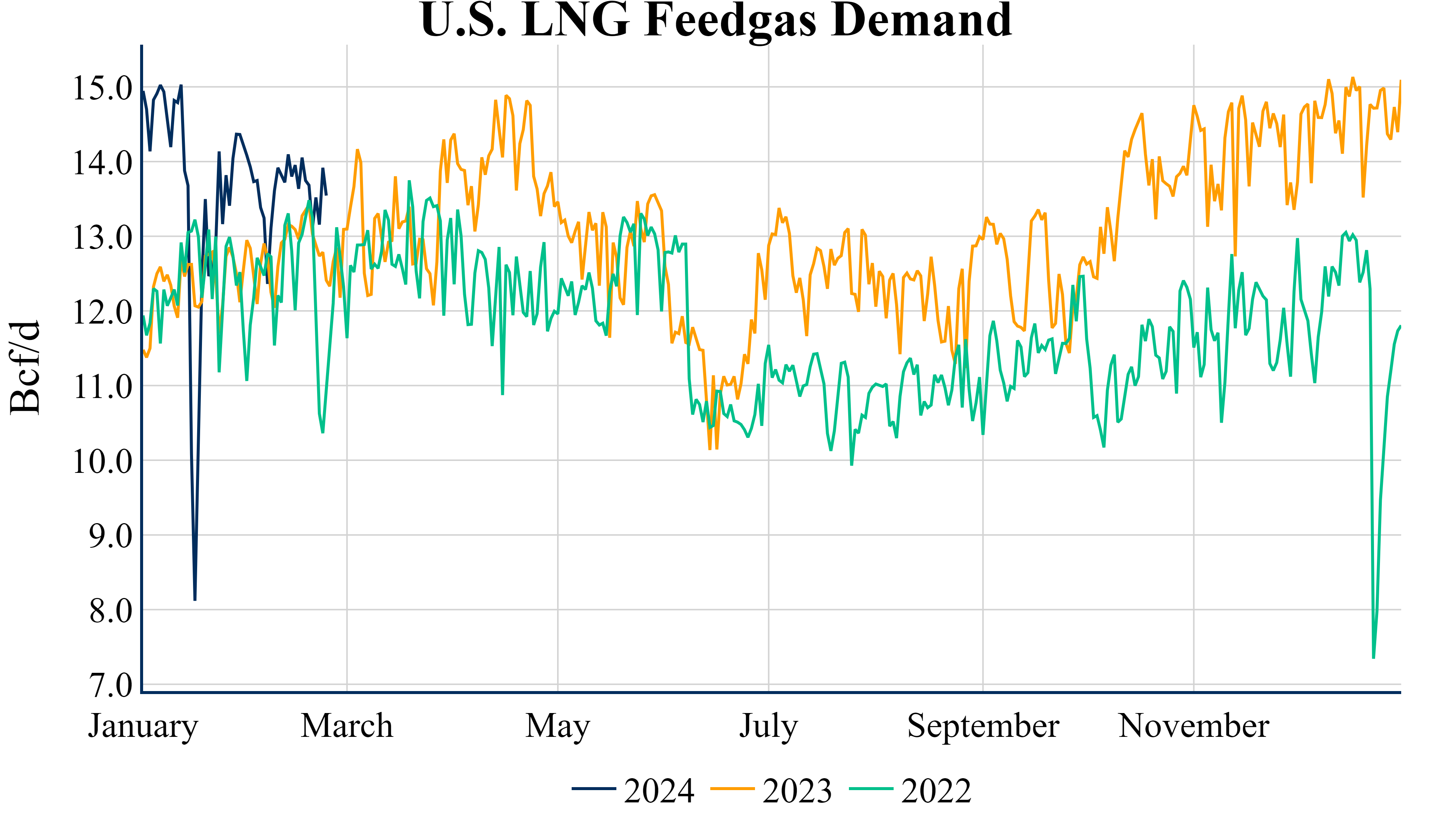 The period between December ‘23 through February ’24 for the Lower 48 now ranks the warmest in terms of gas-weighted HDDs in the 2000’s