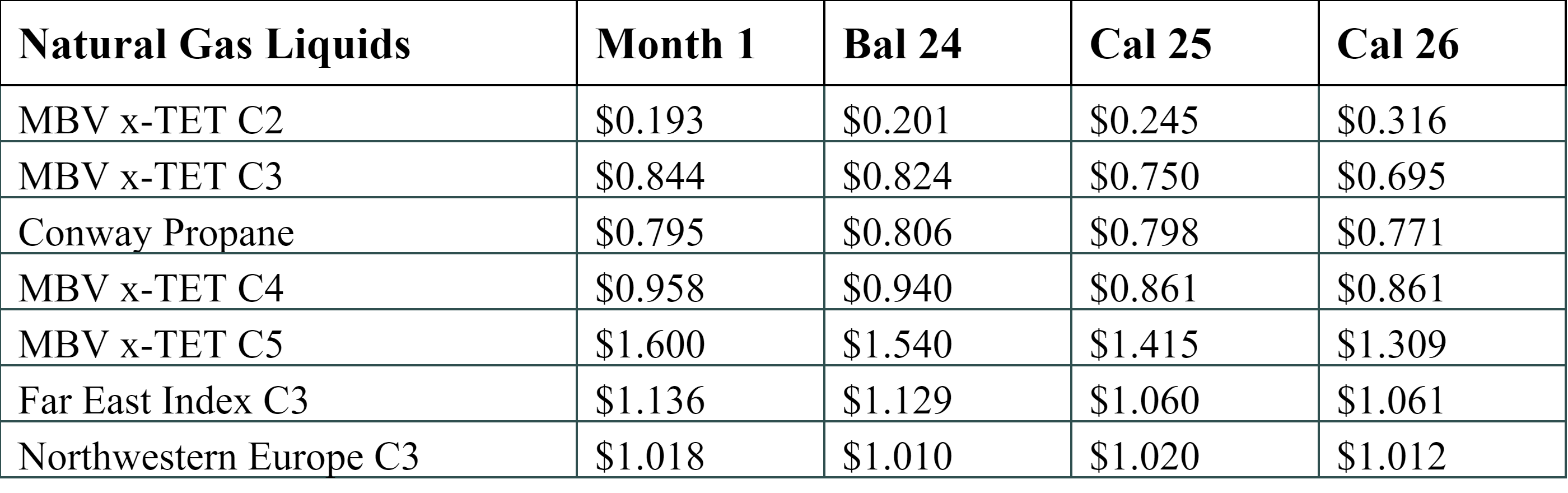 The Summer ’24 strip is up 10.8c to $2.423, and the Winter ‘24/’25 strip is up 7.5c to $3.480