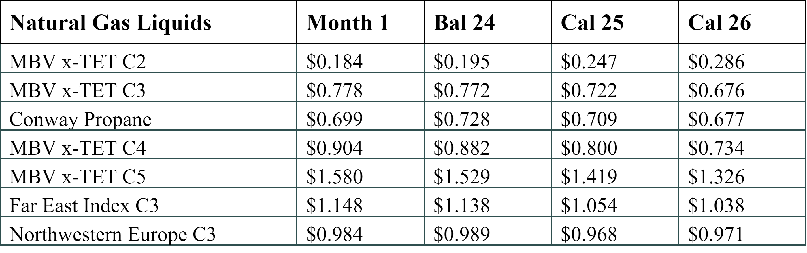 The Summer ’24 strip is down 2.9c to $2.195, and the Winter ‘24/’25 strip is down 1.9c to $3.342