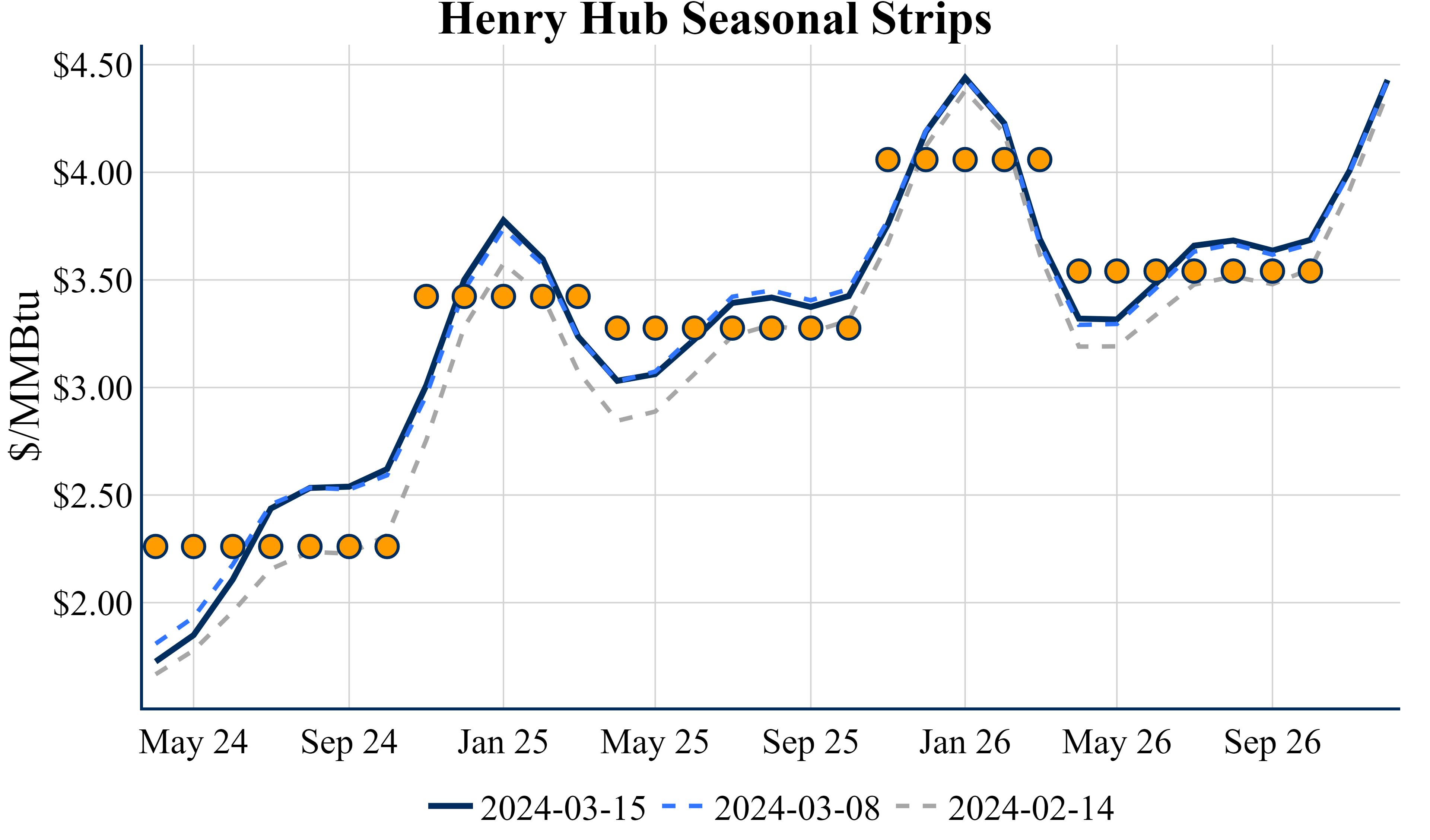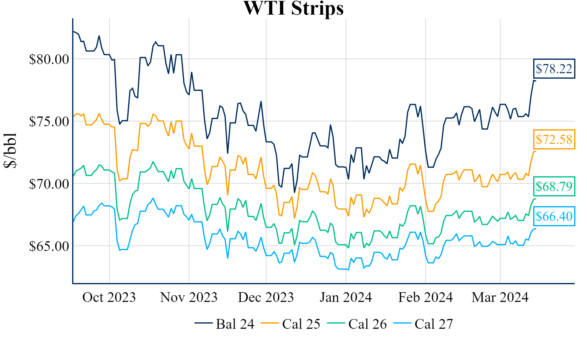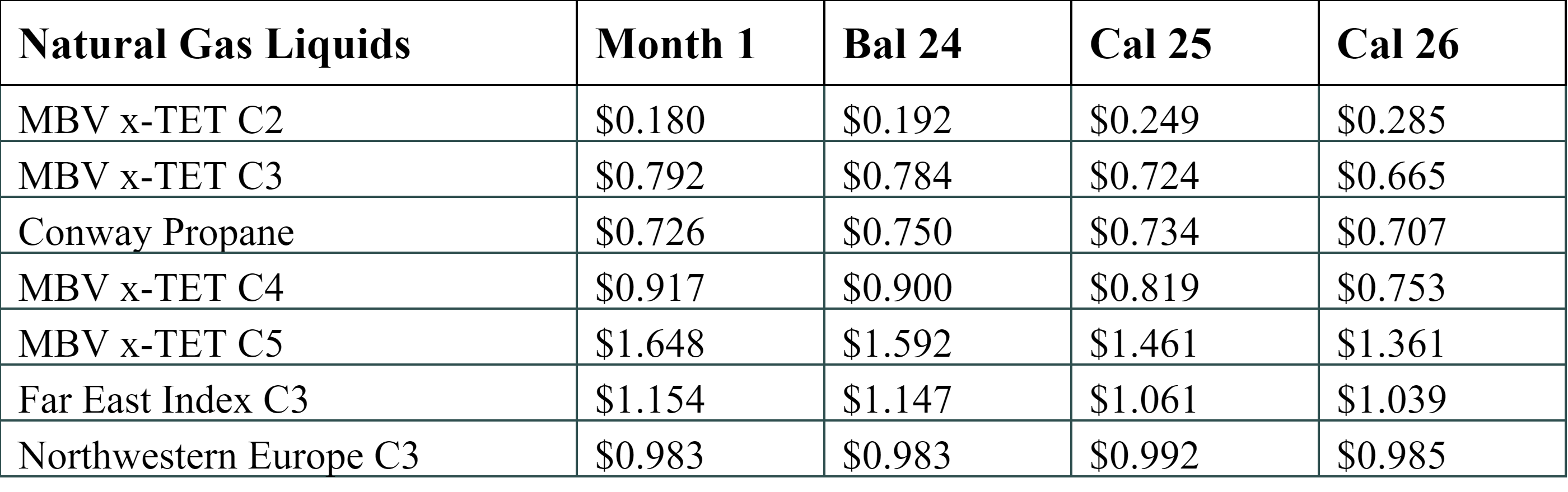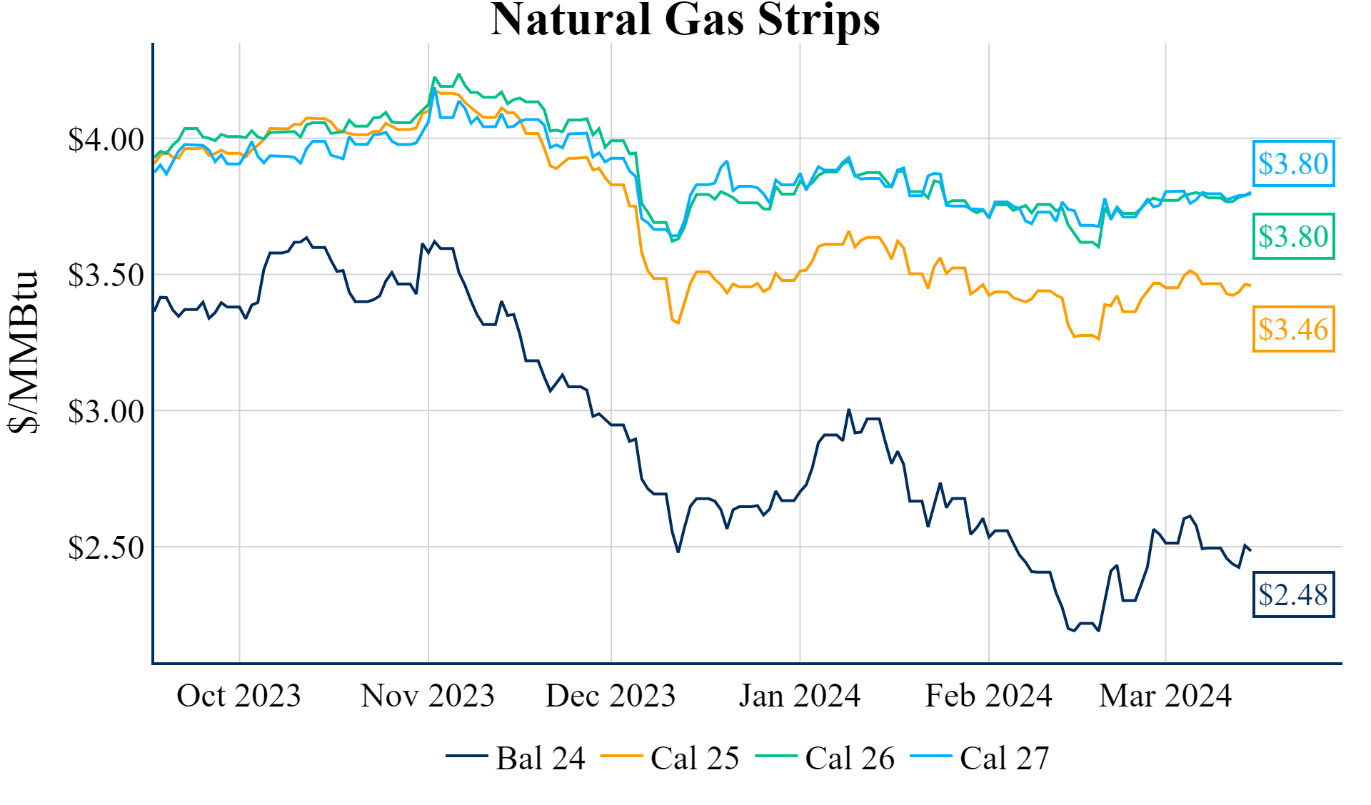 The Summer ’24 strip is down 2c to $2.265, and the Winter ‘24/’25 strip is down 1c to $3.430