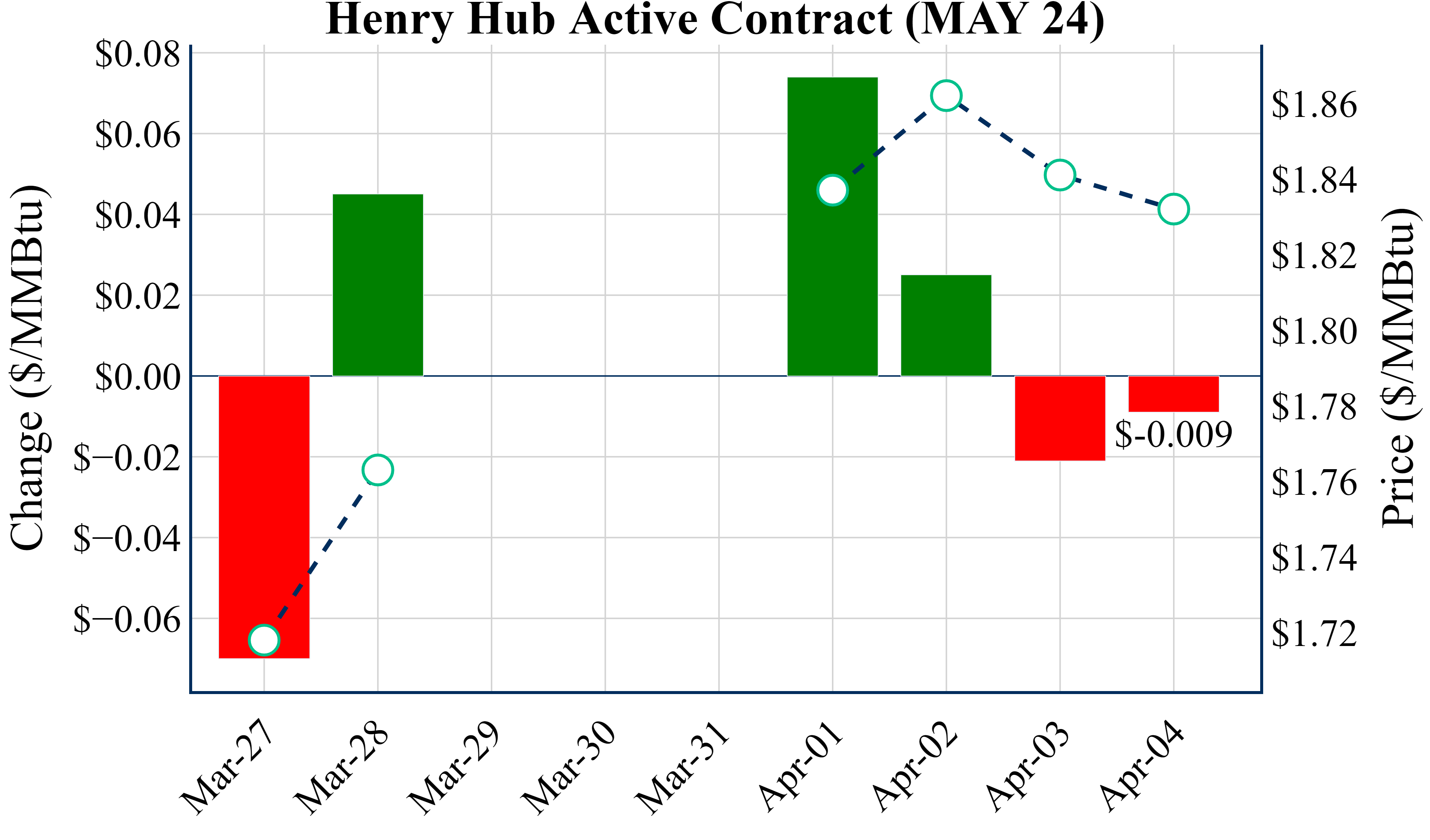 May ’24 Henry Hub is down 0.8c this morning to trade around $1.833/MMBtu