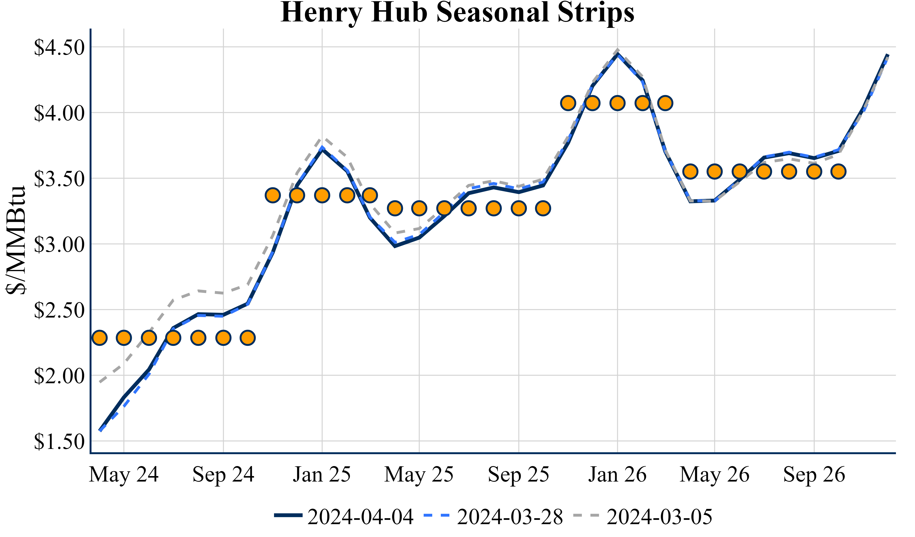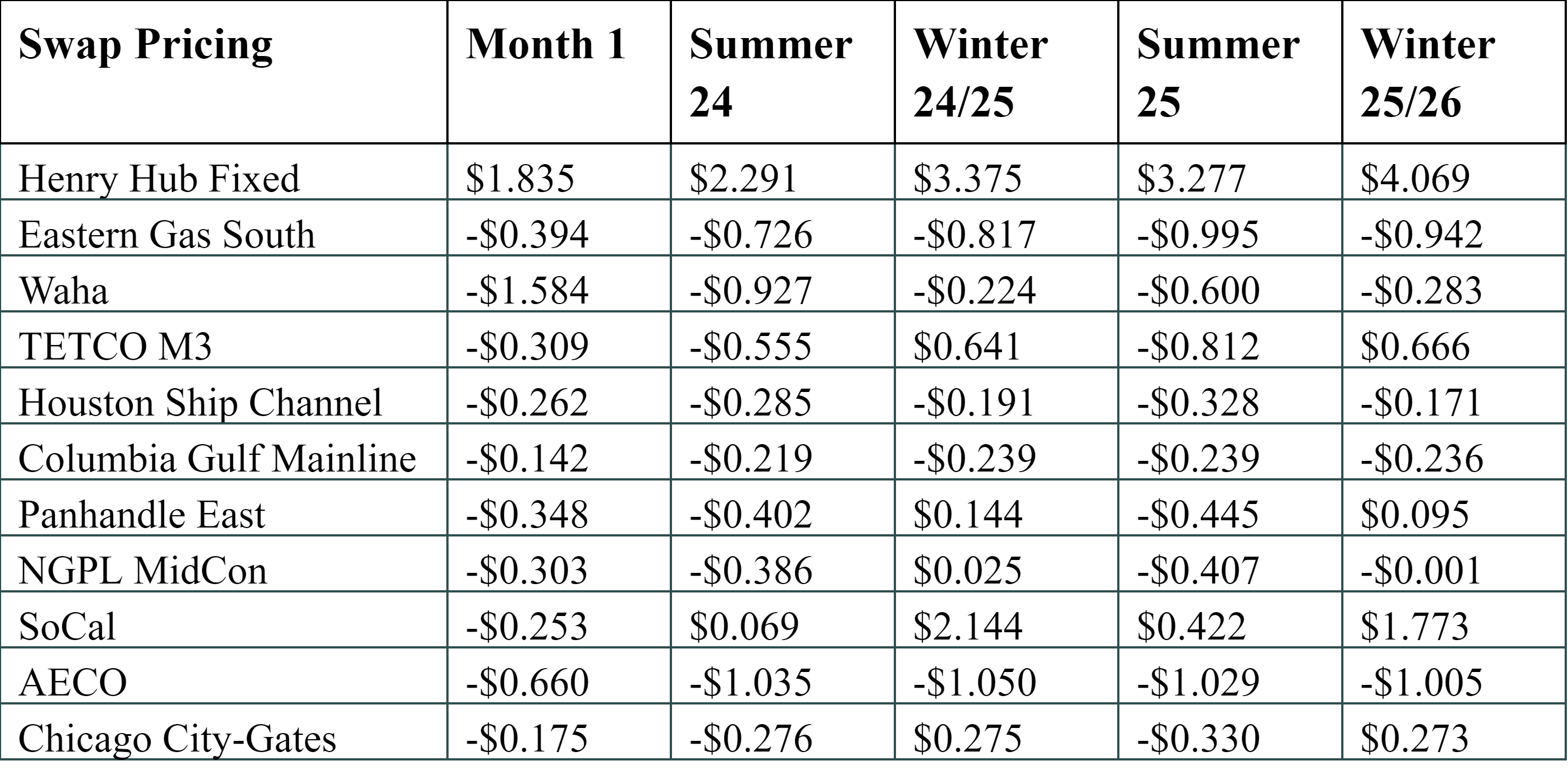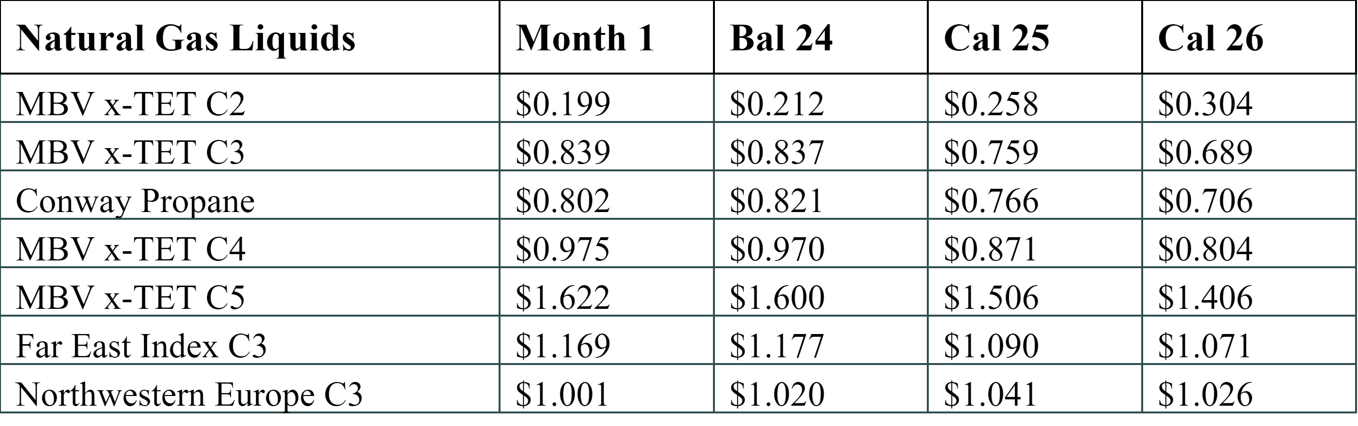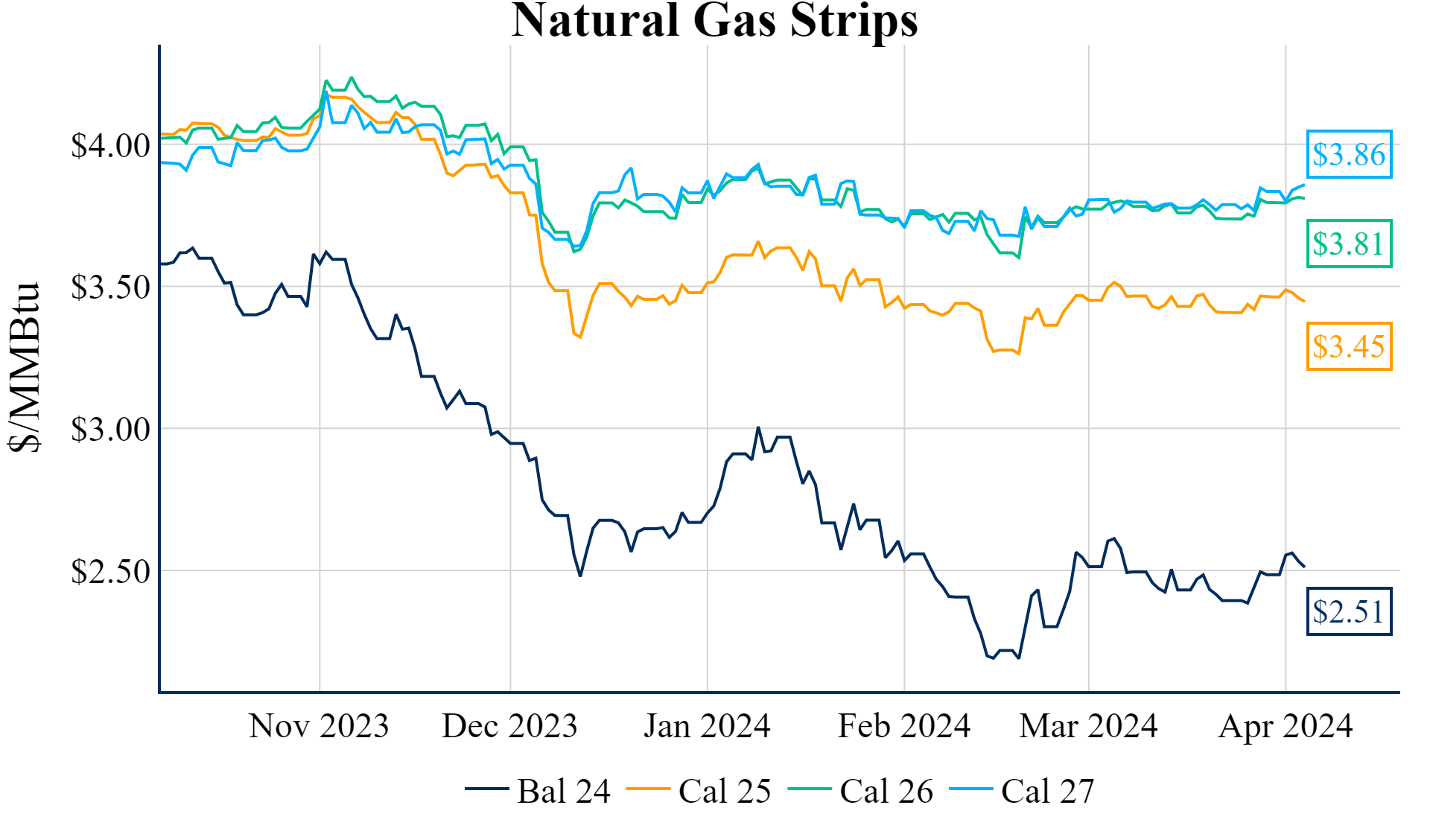 The Summer ’24 strip is down 2.6c to $2.280 and Winter ‘24/’25 strip is down 2.5c to $3.364