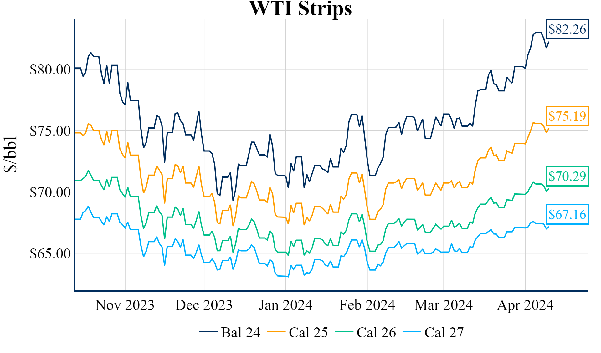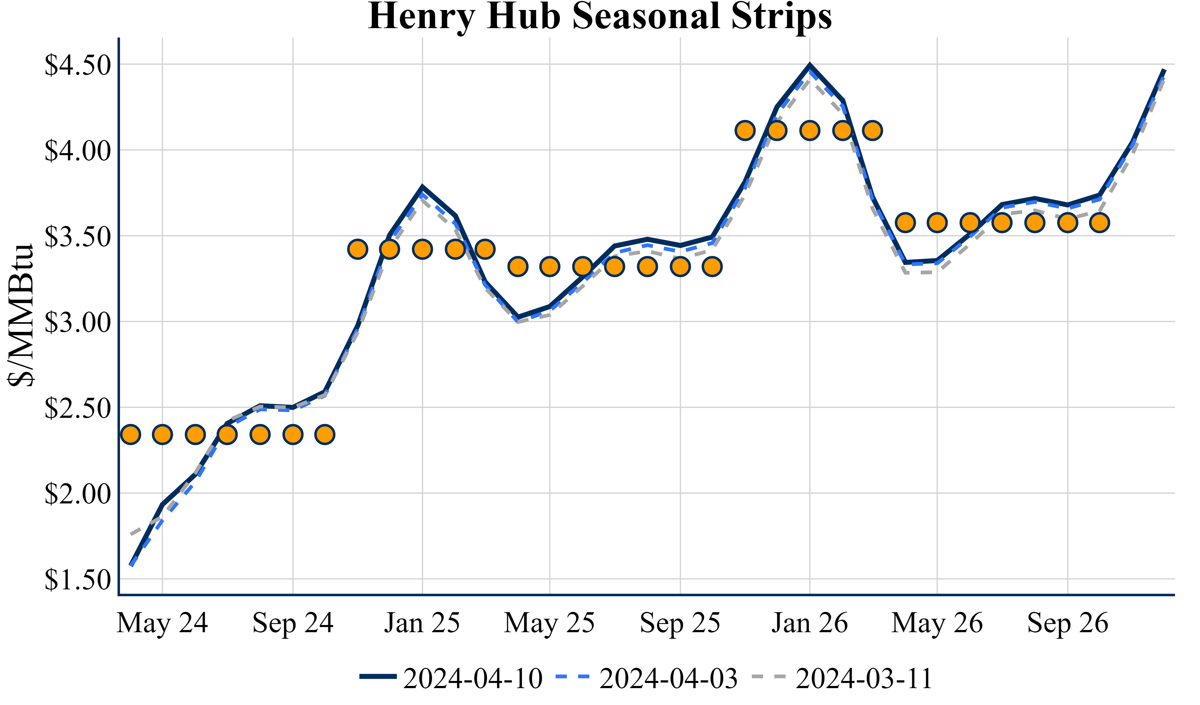 The Summer ’24 strip is up 0.7c to $2.333 and Winter ‘24/’25 strip is up 2c to $3.427