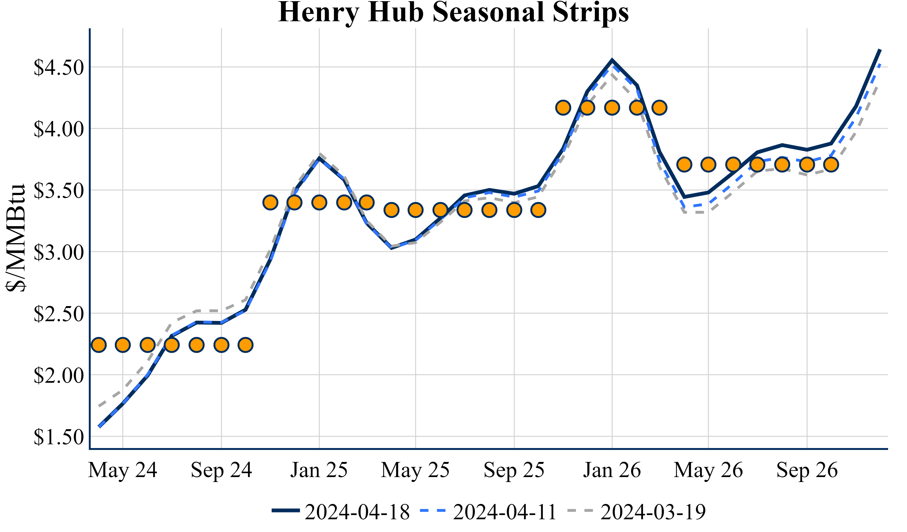 The Summer ’24 strip is up 2.5c to $2.243 and Winter ‘24/’25 strip is up 1.5c to $3.399