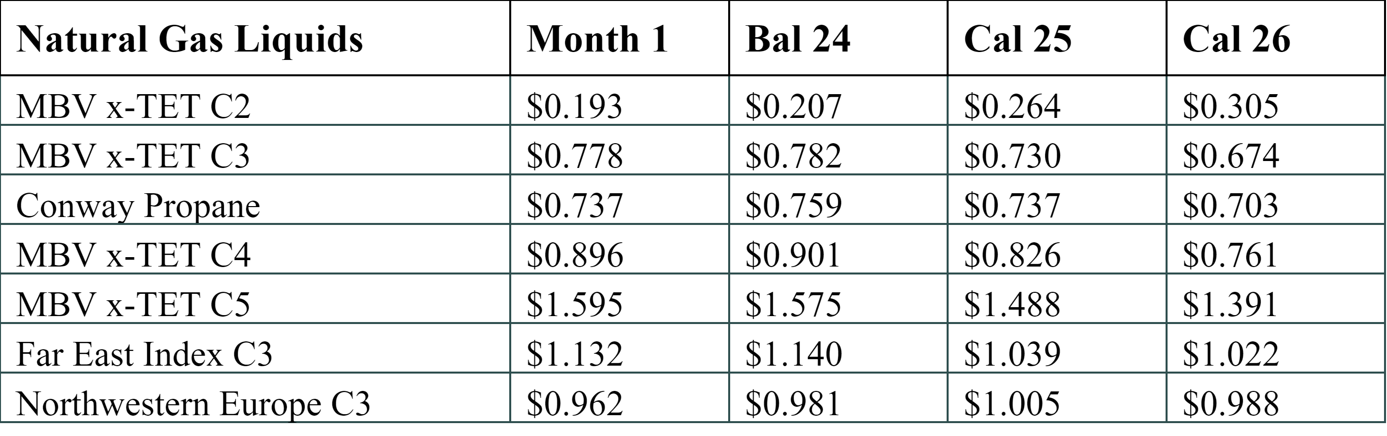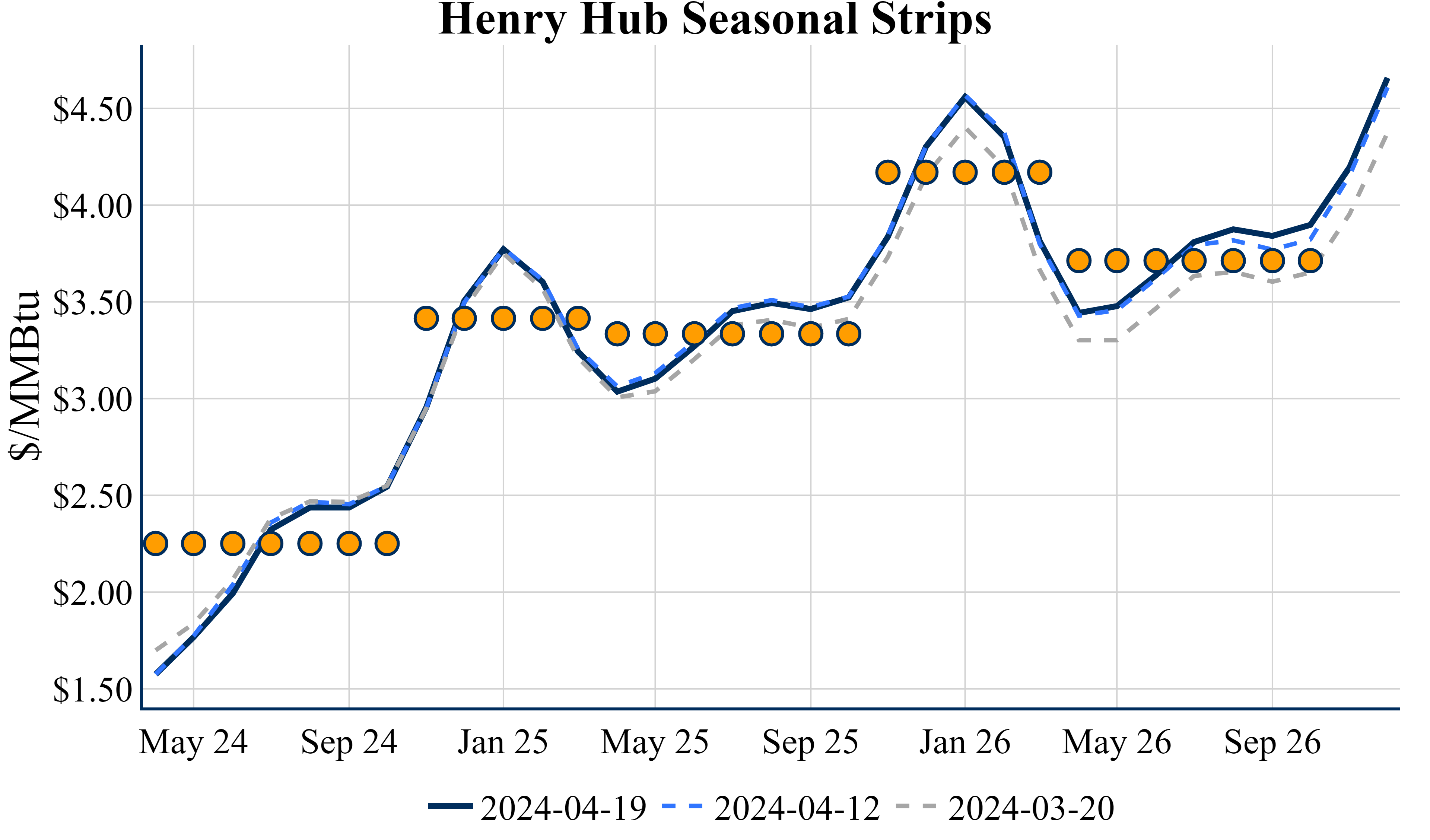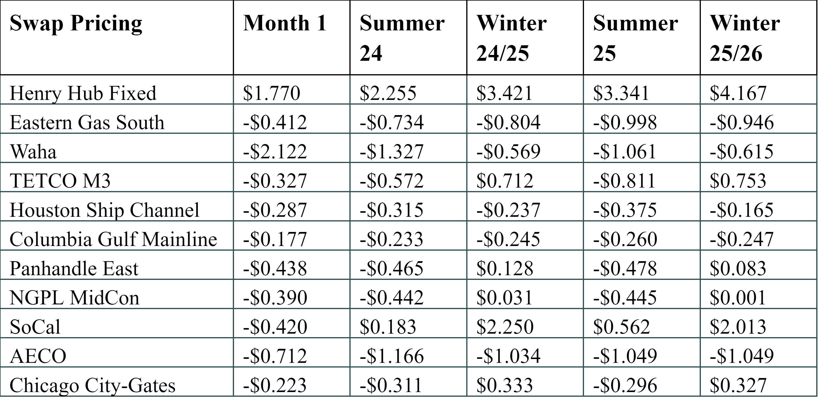 The Summer ’24 strip is up 1.9c to $2.249 and Winter ‘24/’25 strip is up 1.1c to $3.414