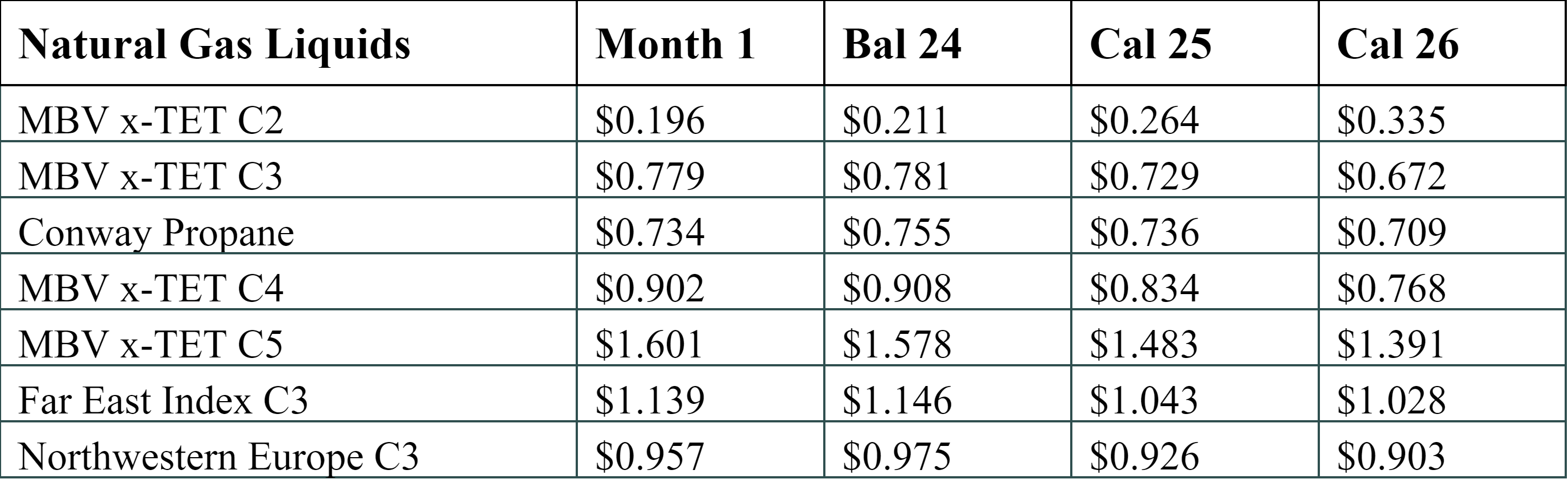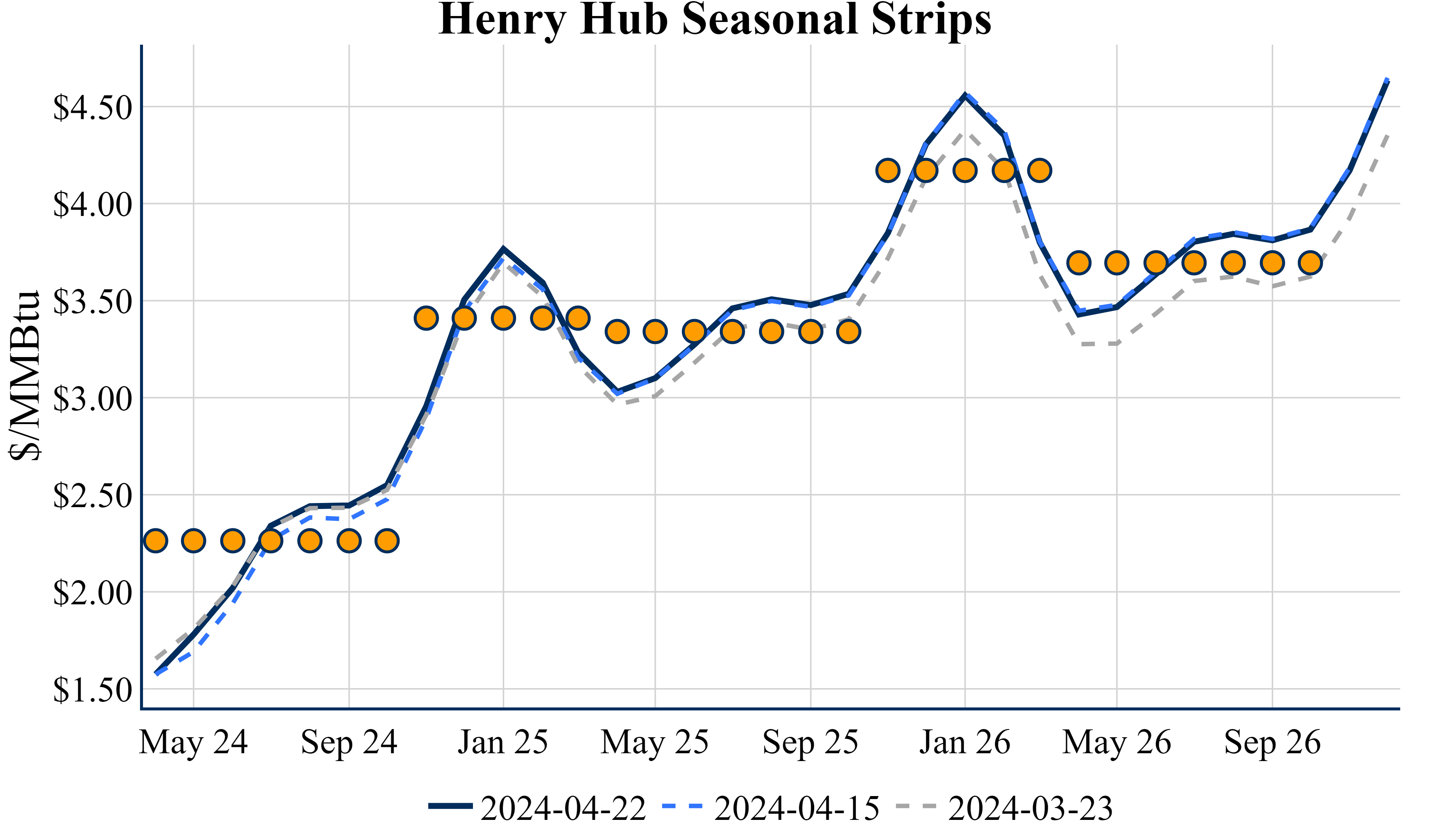 The Summer ’24 strip is up 2.2c to $2.261 and Winter ‘24/’25 strip is up 0.8c to $3.409