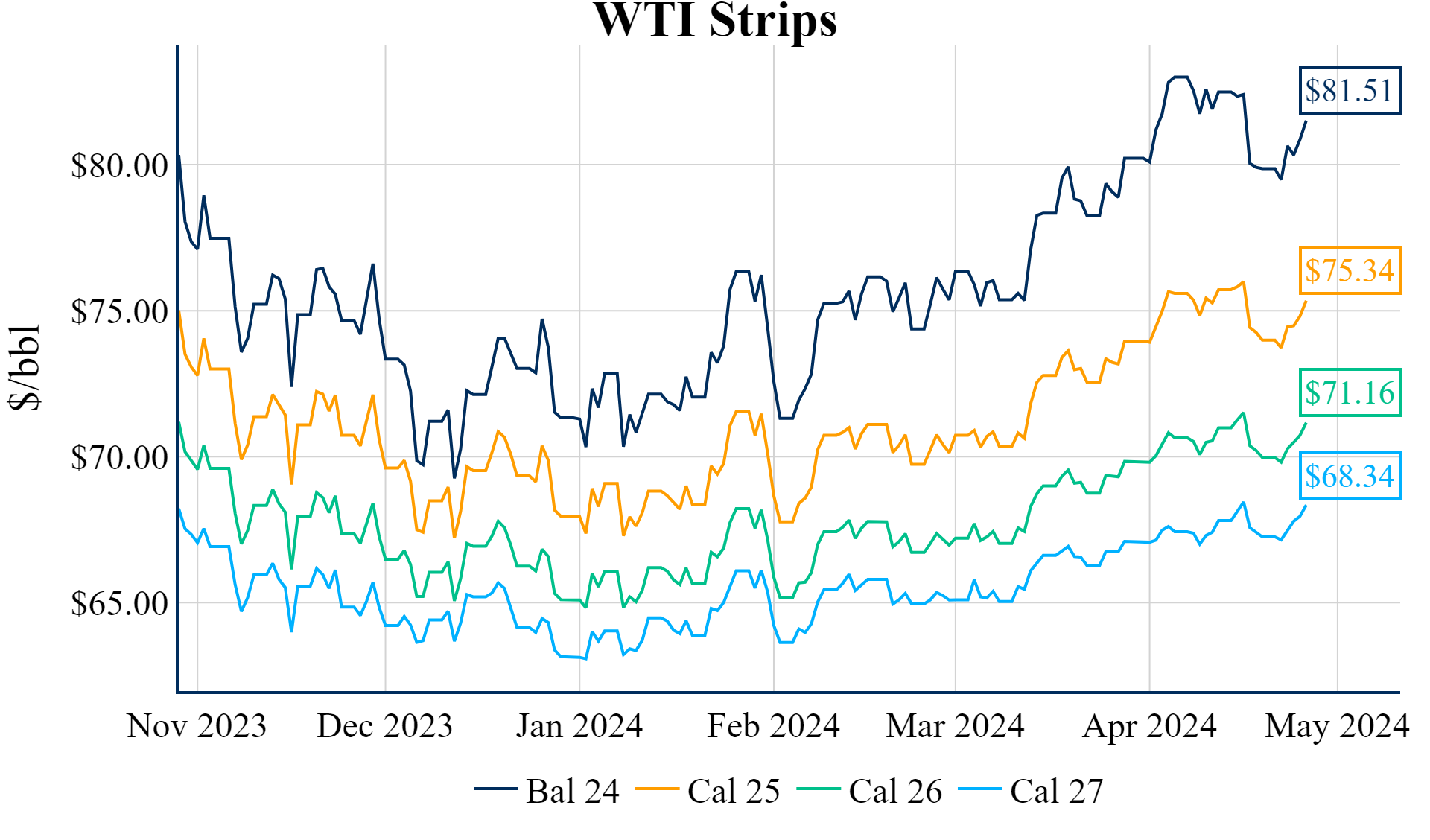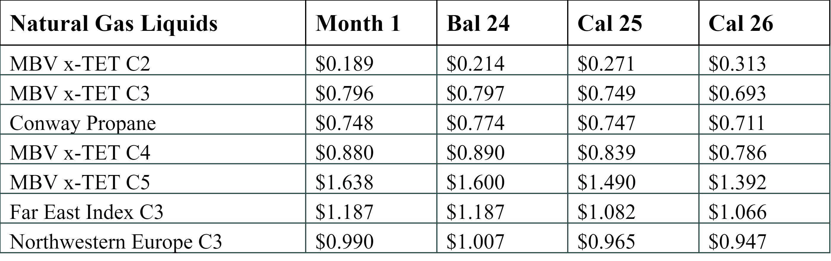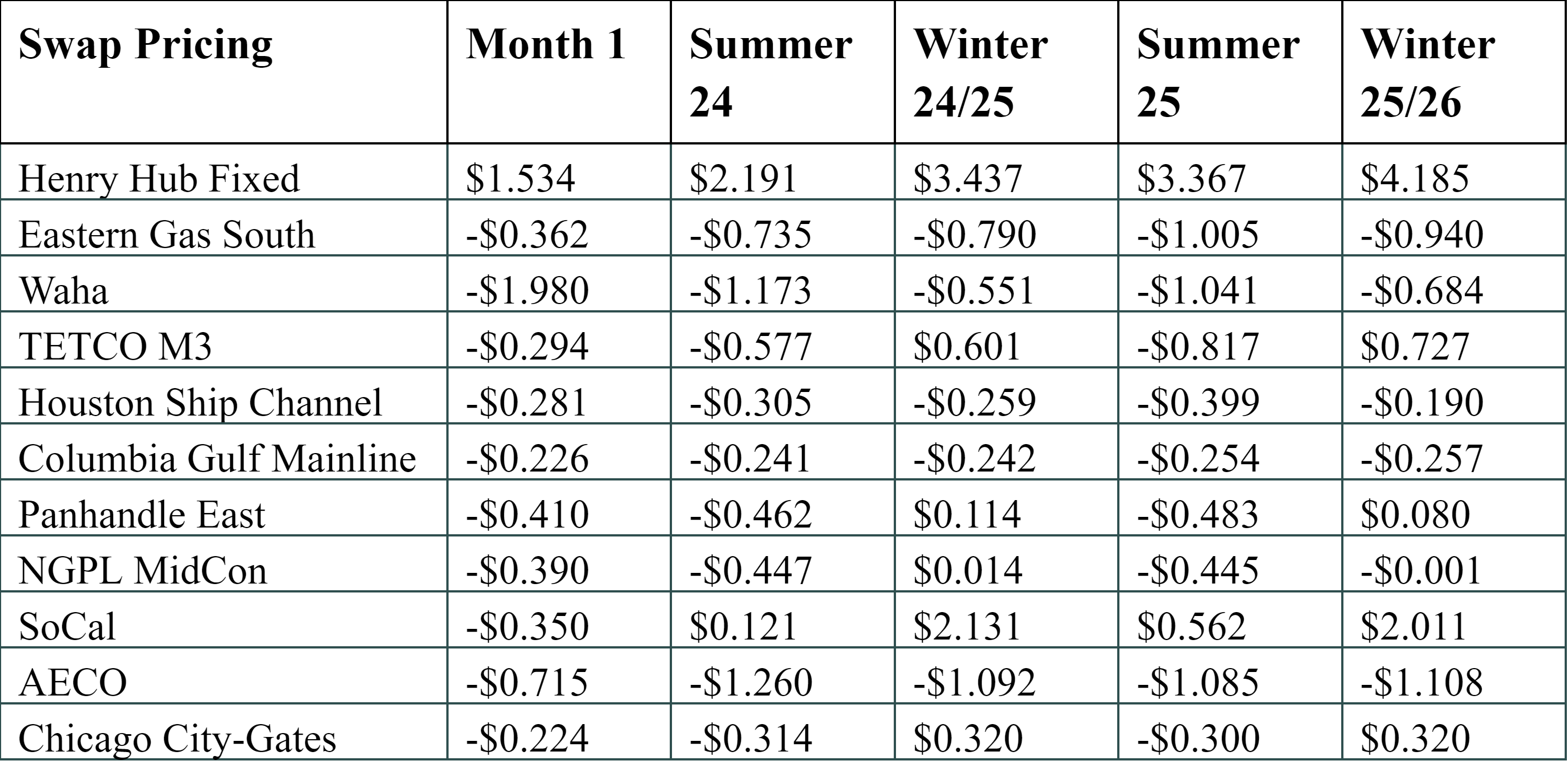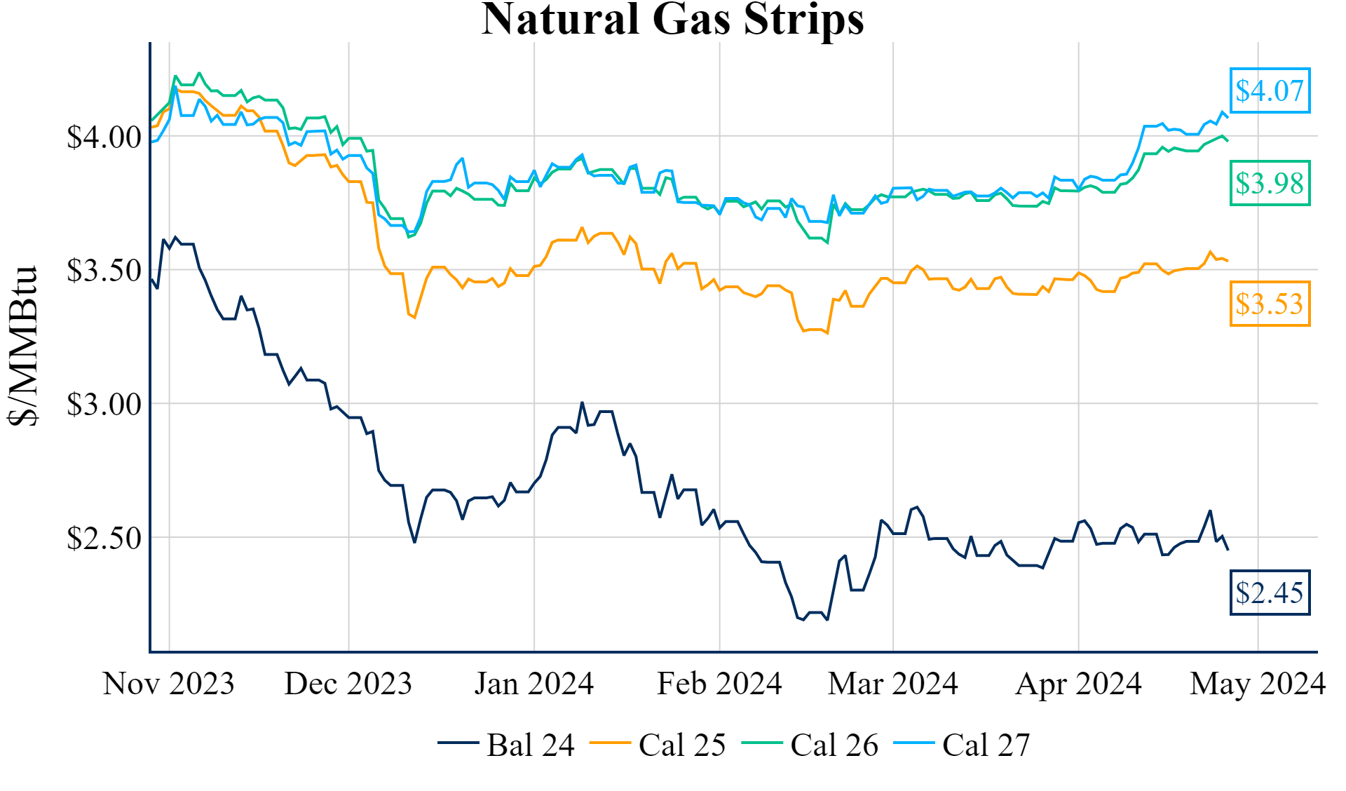 The Summer ’24 strip is down 5.5c to $2.192 and Winter ‘24/’25 strip is down 1.9c to $3.429
