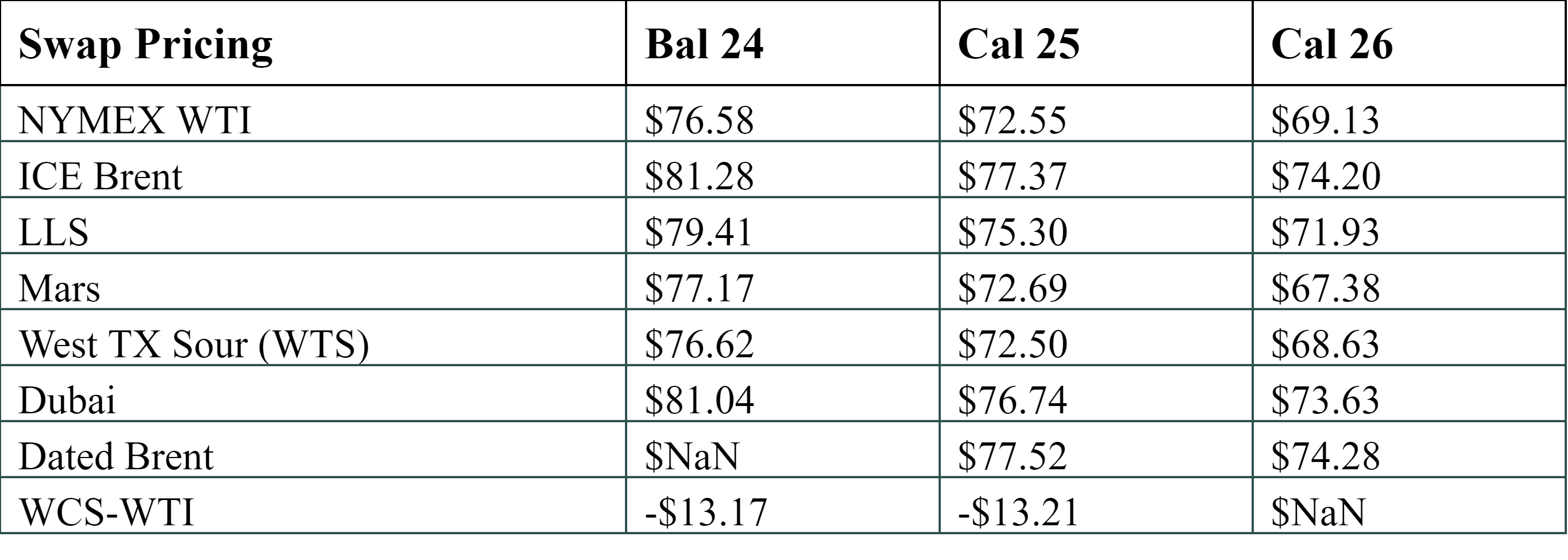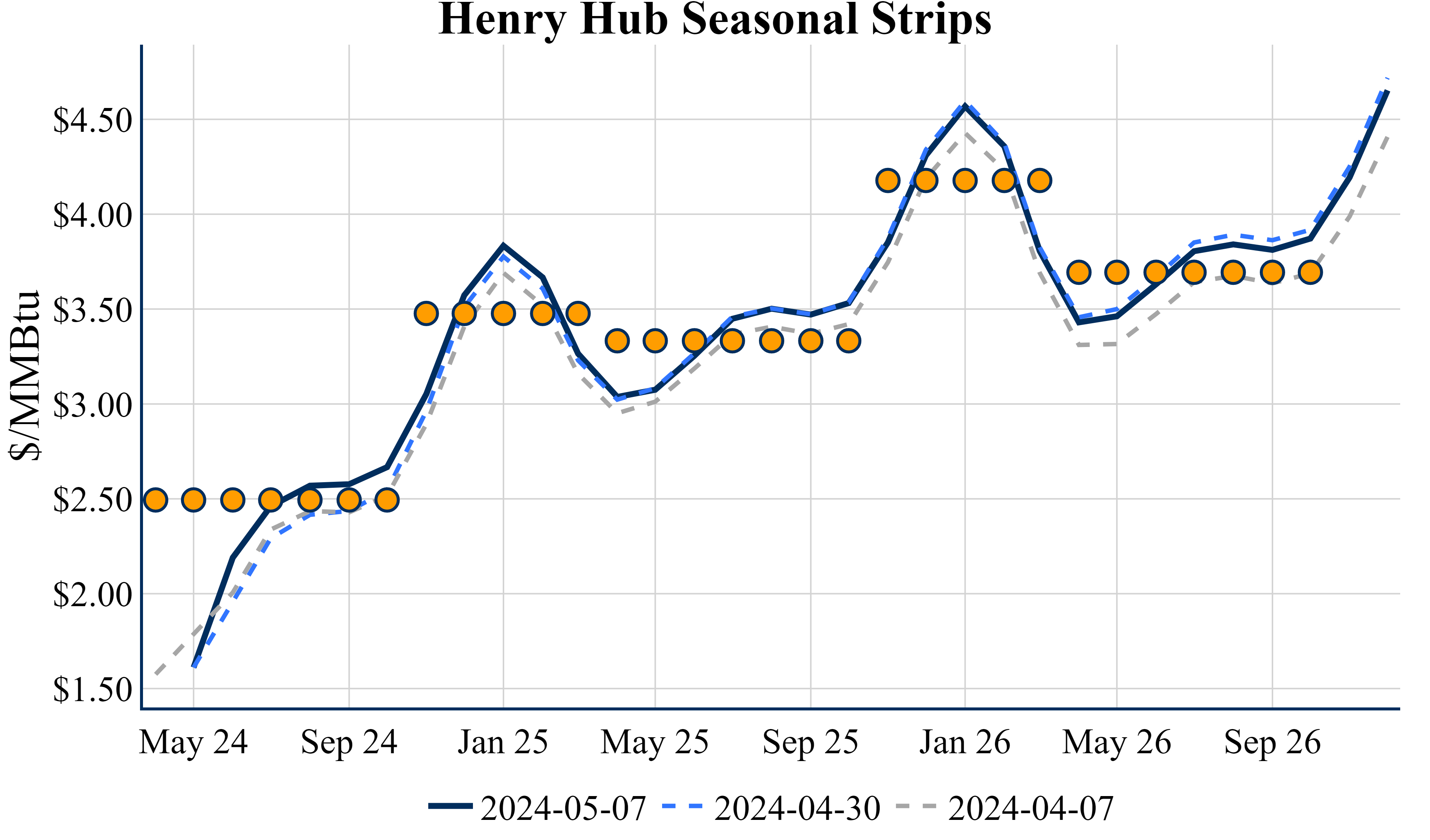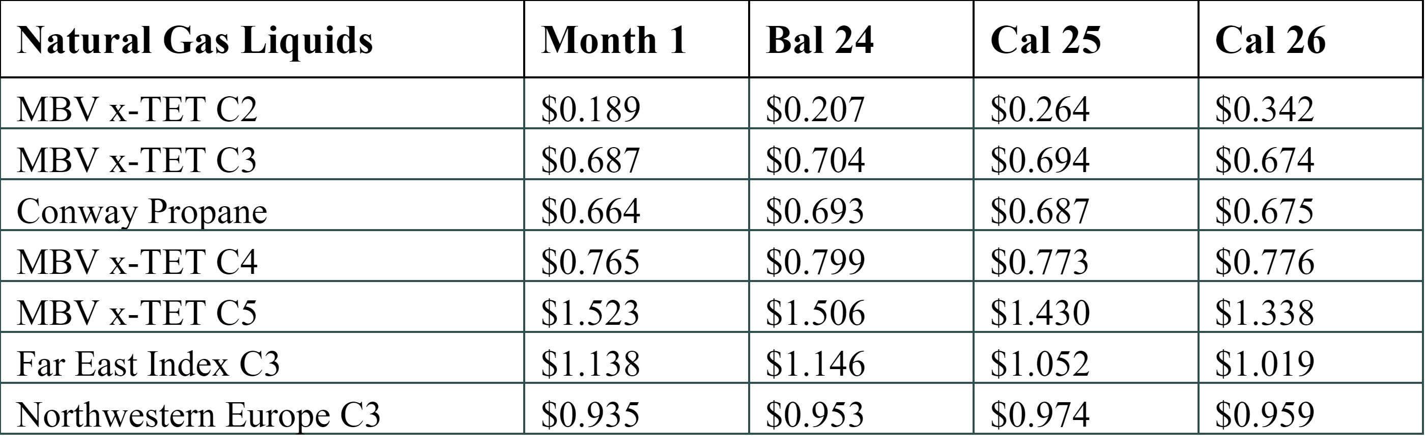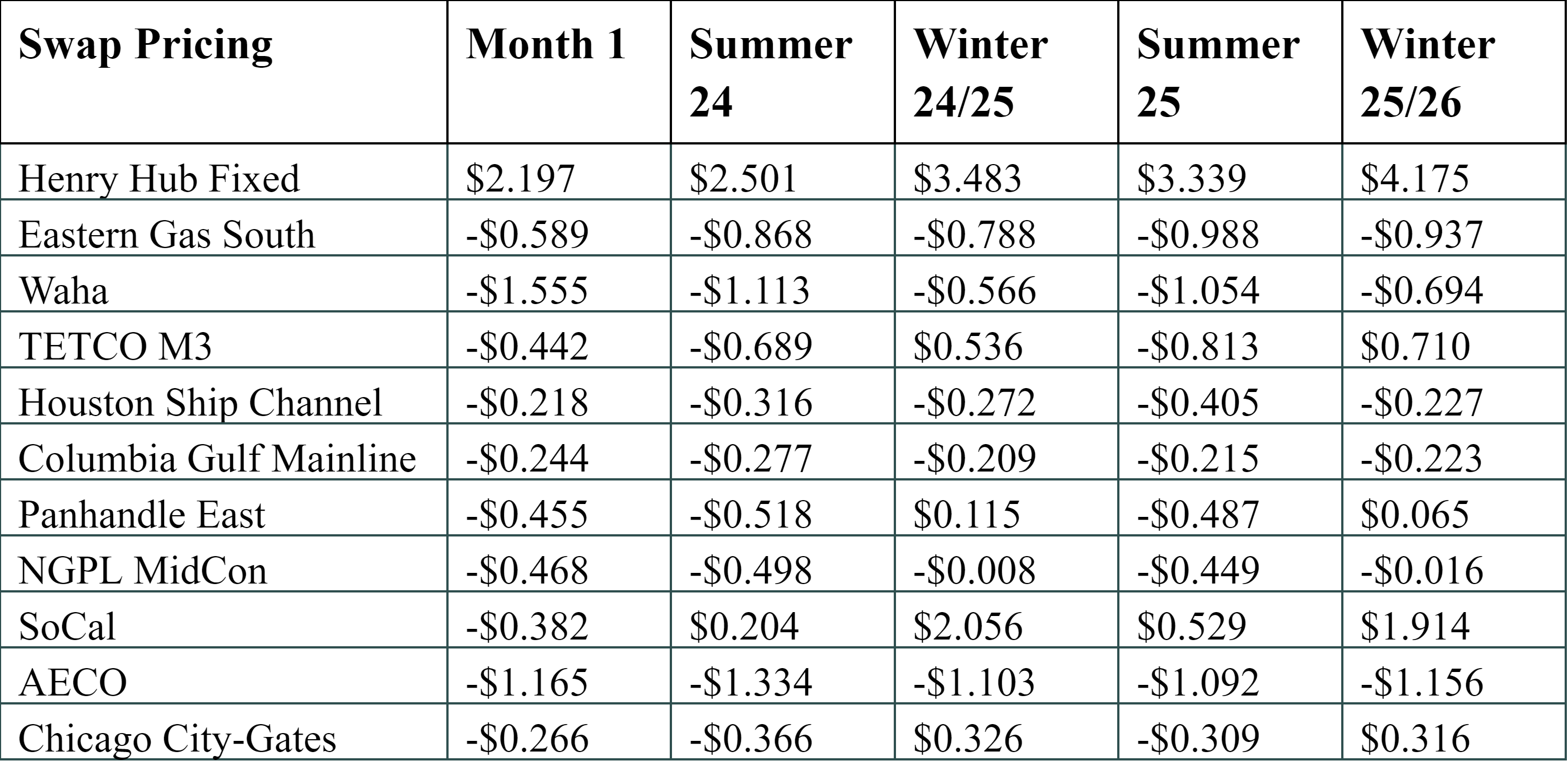 The Summer ’24 strip is down 1.2c to $2.483 and Winter ‘24/’25 strip is down 0.4c to $3.470