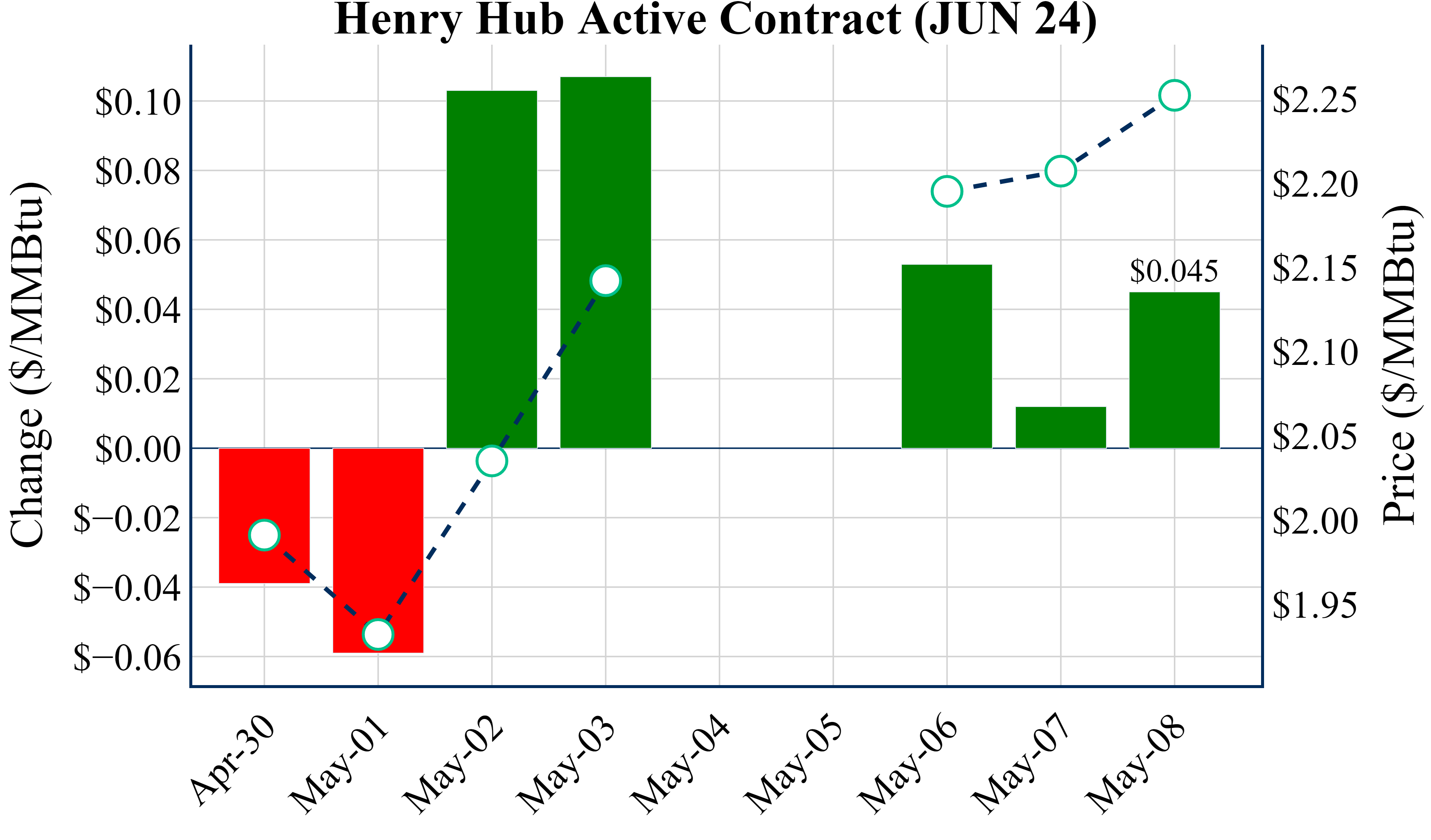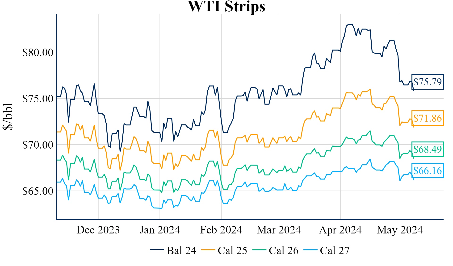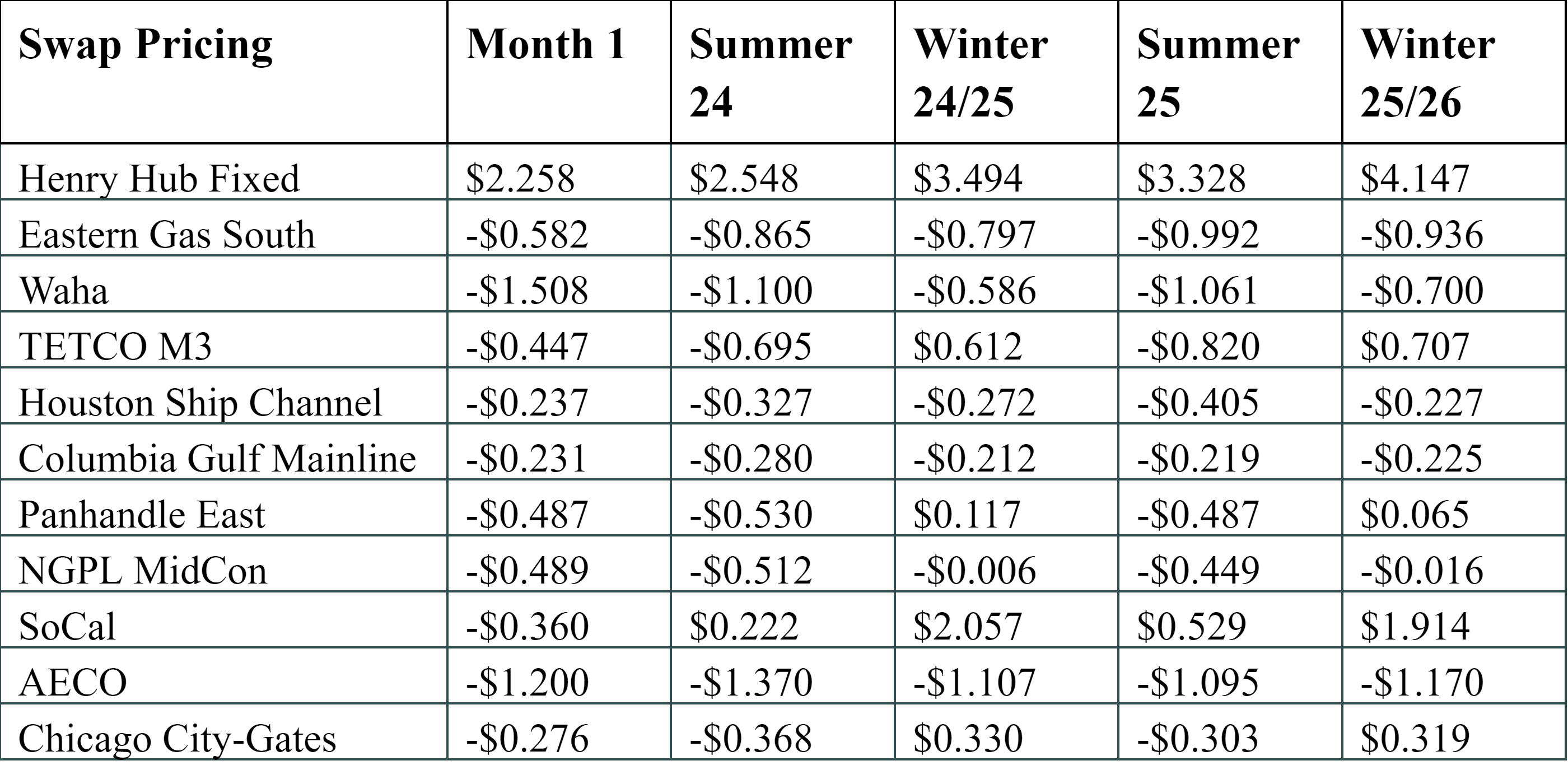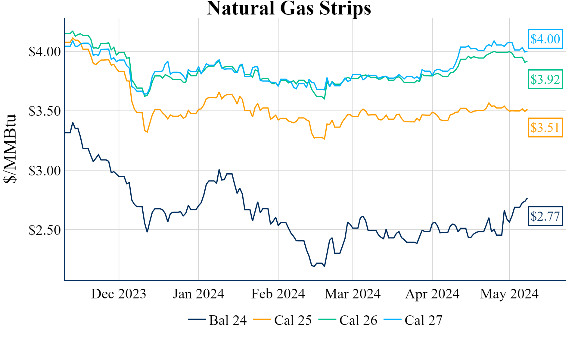 The Summer ’24 strip is up 3.1c to $2.555 and Winter ‘24/’25 strip is up 2.4c to $3.496