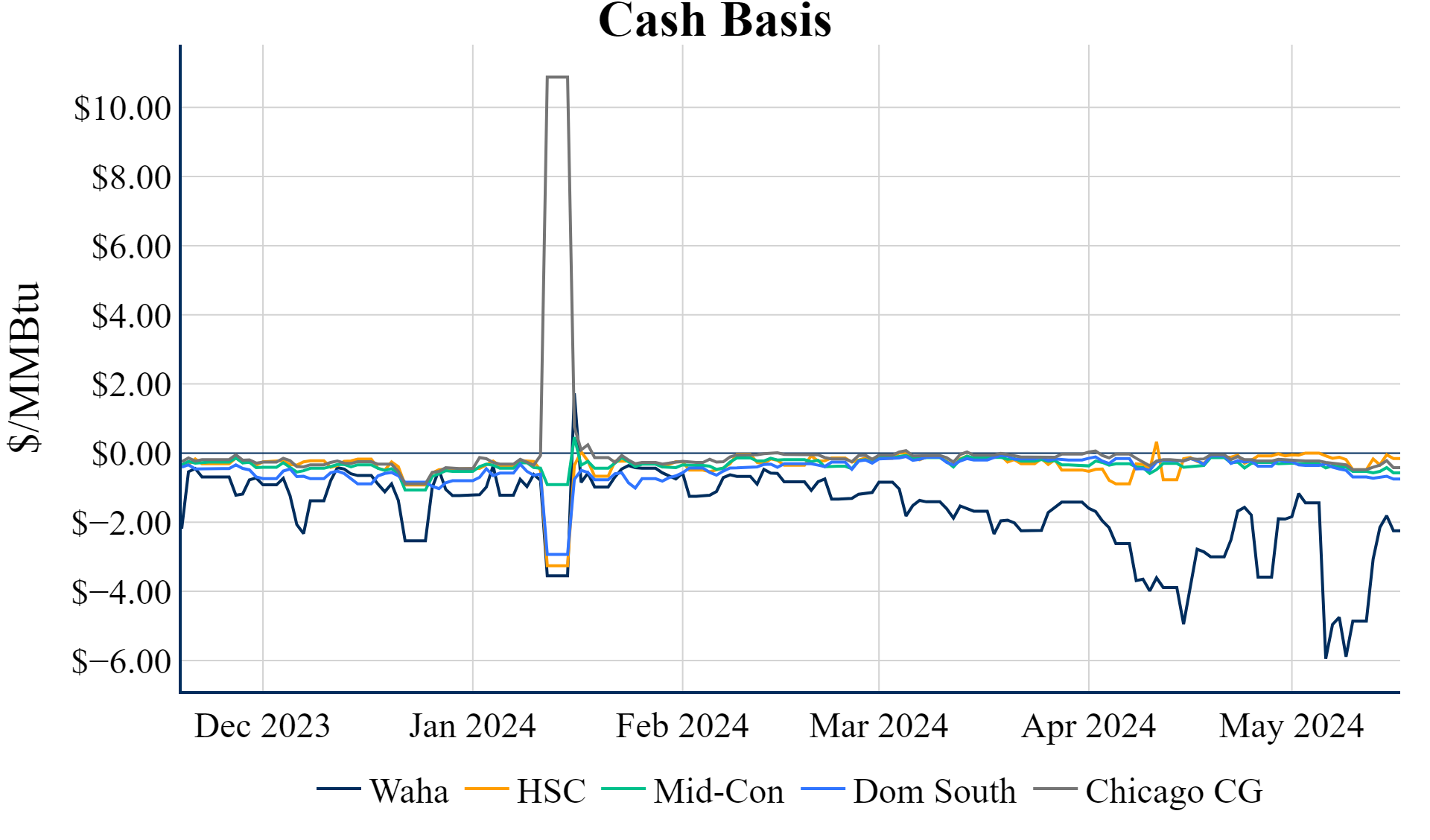 Over the past week, Permian gas producers paid end-users up to $6/MMBtu to offload excess supply due to limited transport capacity, with cash prices averaging minus-$2.57/MMBtu from May 7-14
