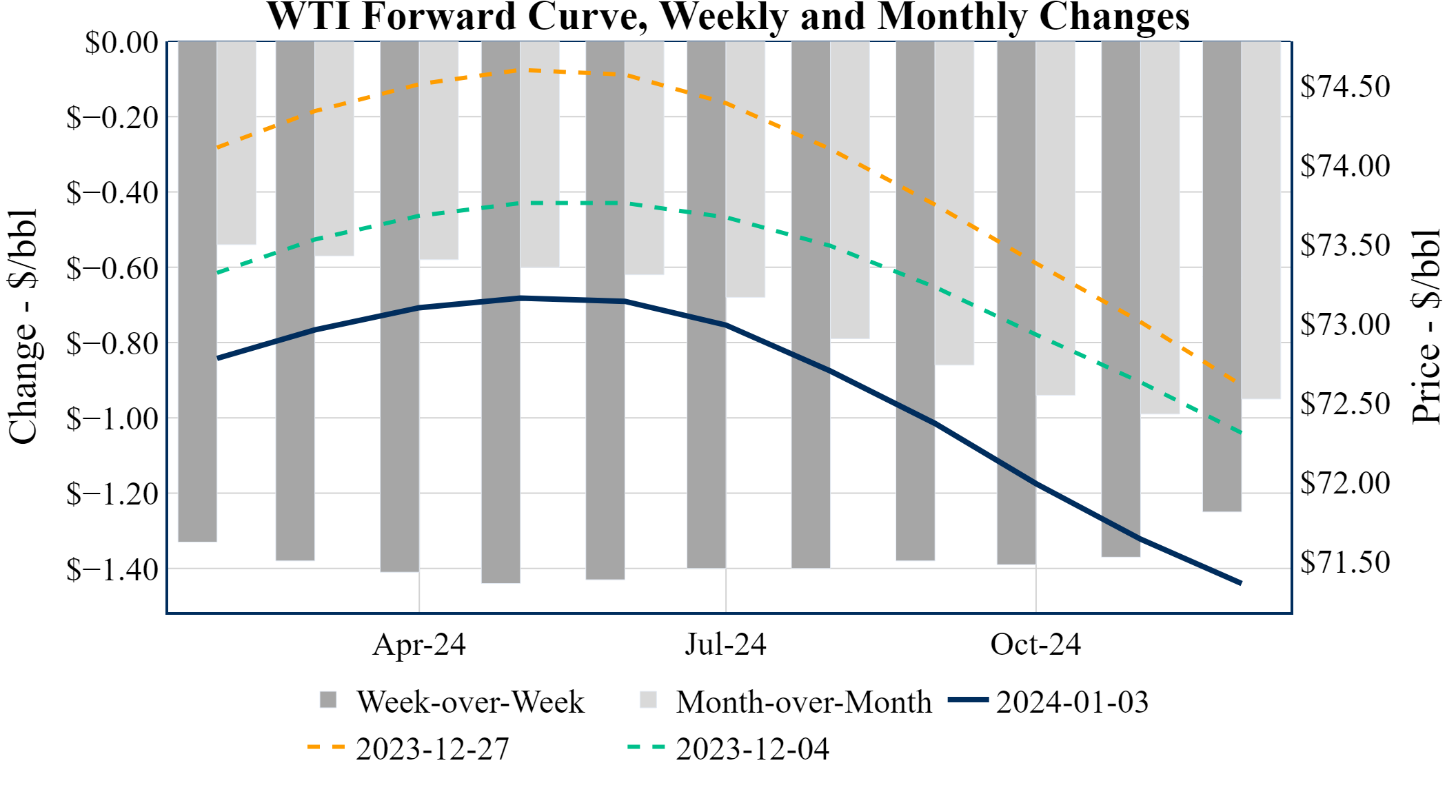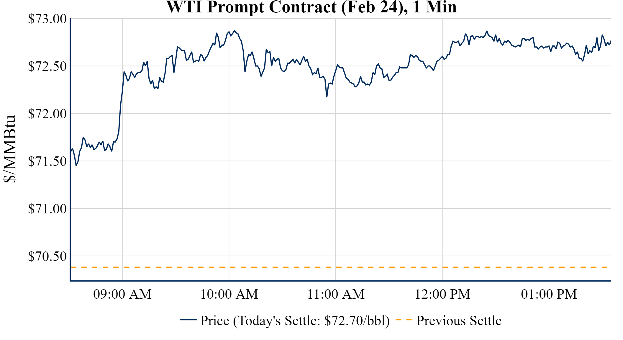 Prompt-Month WTI (Feb 24) was up $2.32 on the day, to settle at $72.70