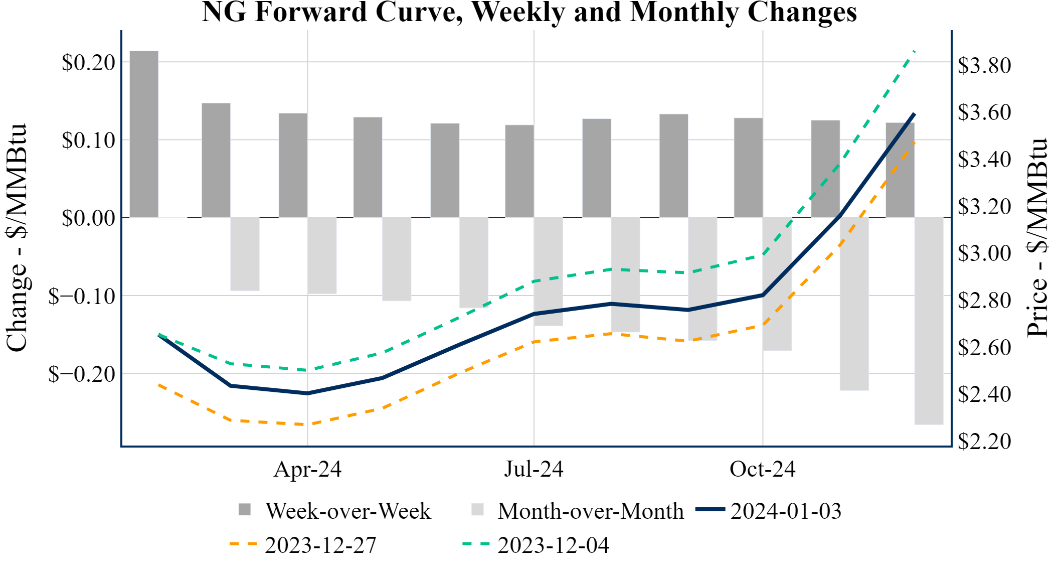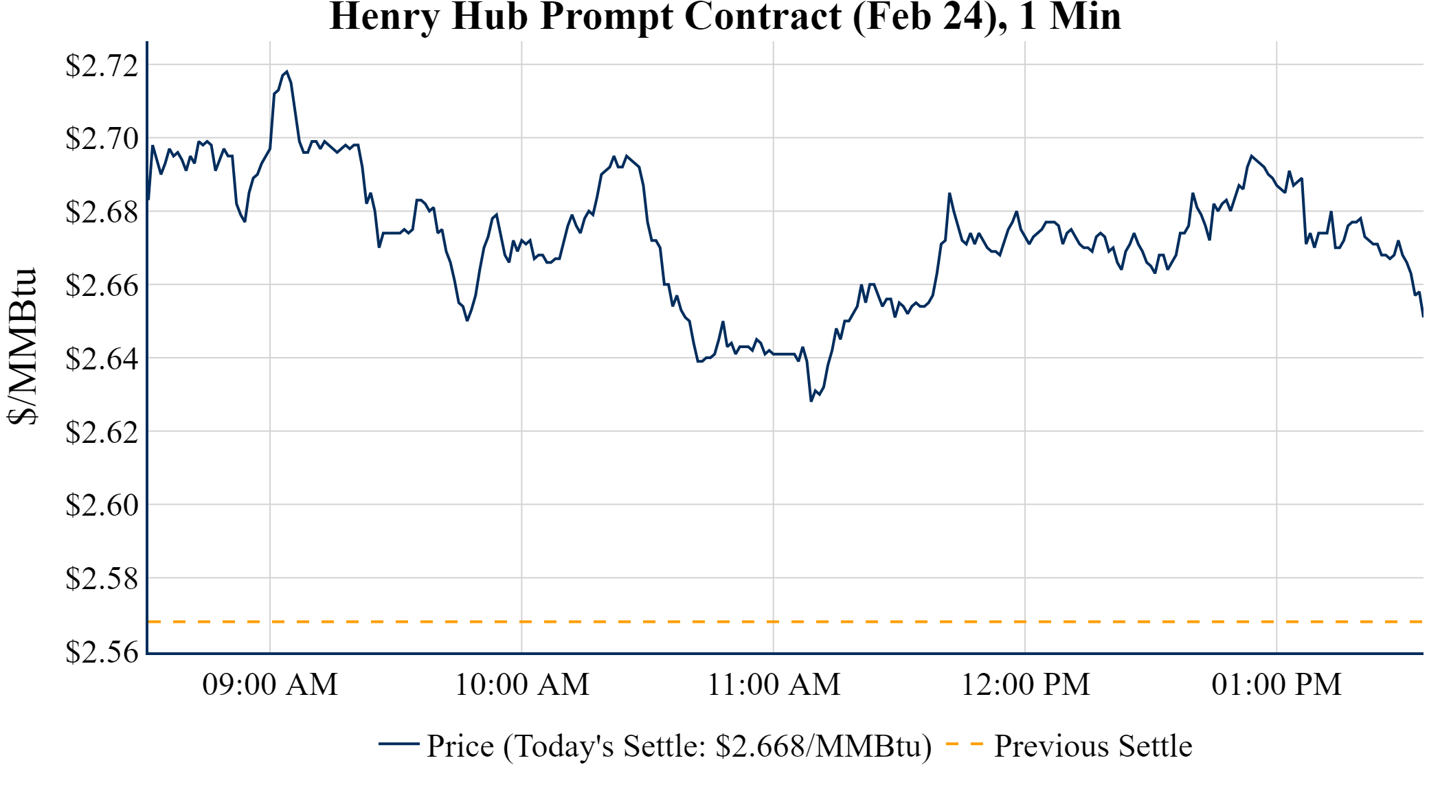 Prompt-Month Henry Hub (Feb 24) was up $0.100 on the day, to settle at $2.668