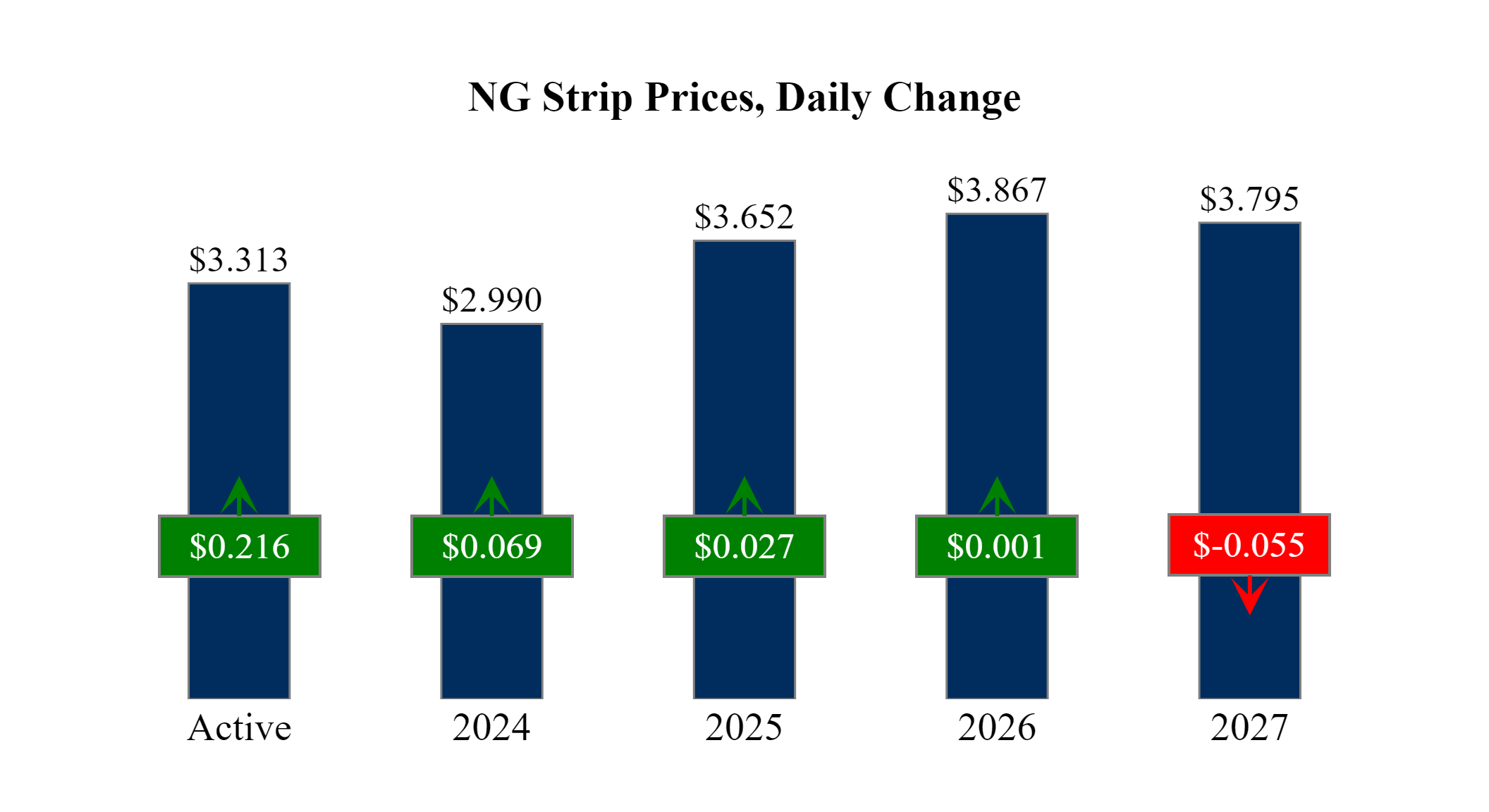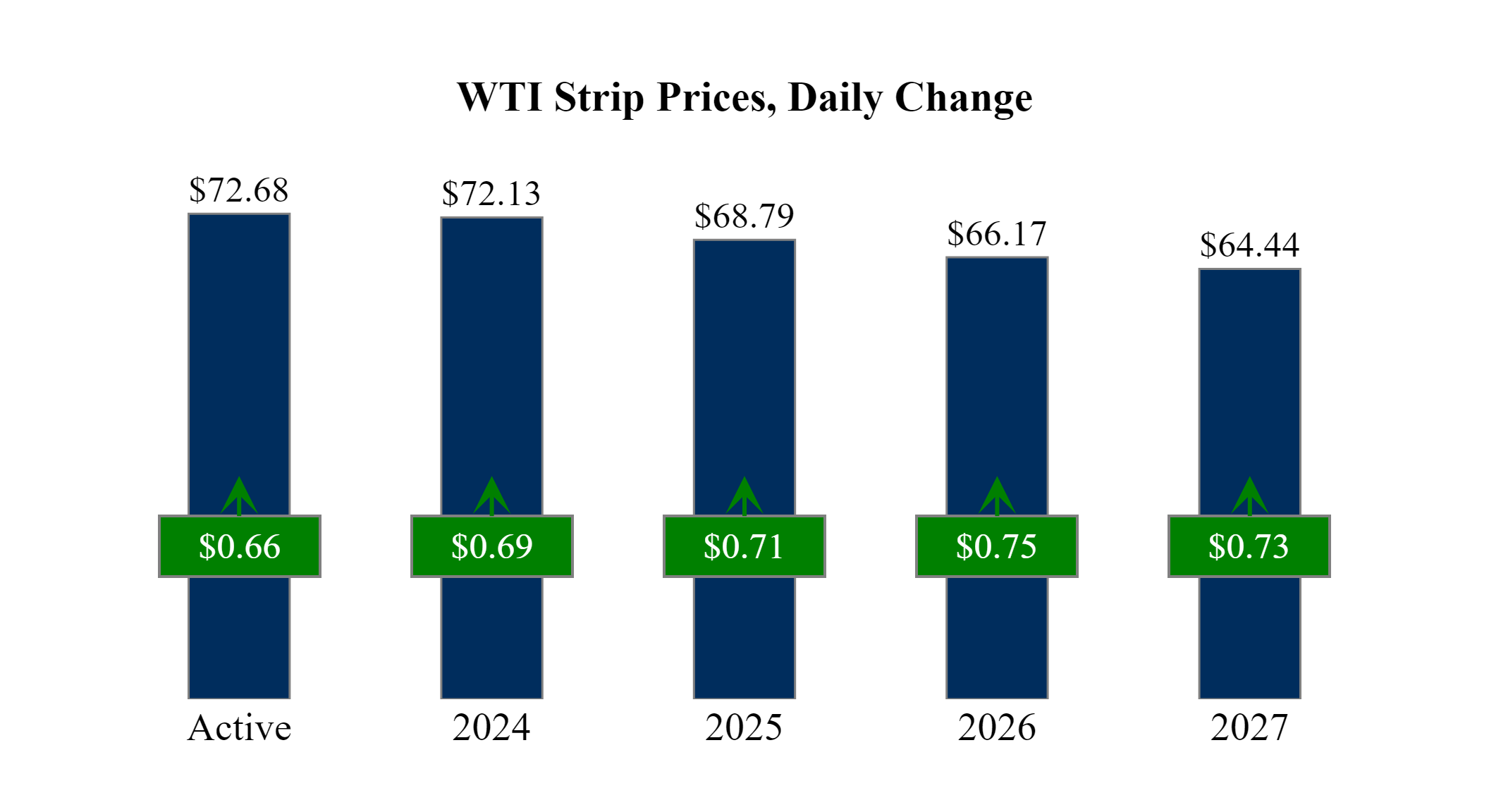 Prompt-Month Henry Hub (Feb 24) was up $0.216 on the day, to settle at $3.313Prompt-Month WTI (Feb 24) was up $0.66 on the day, to settle at $72.68