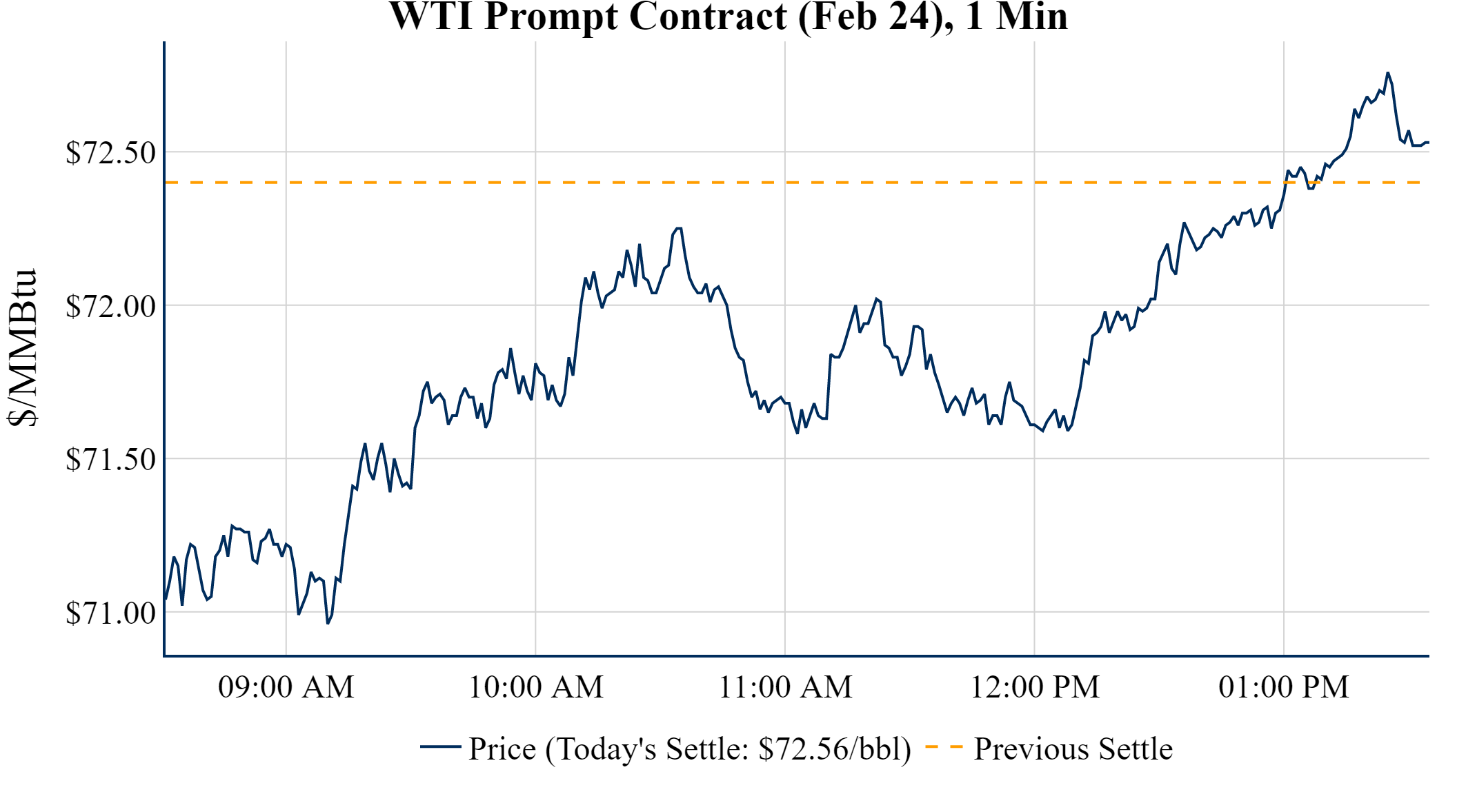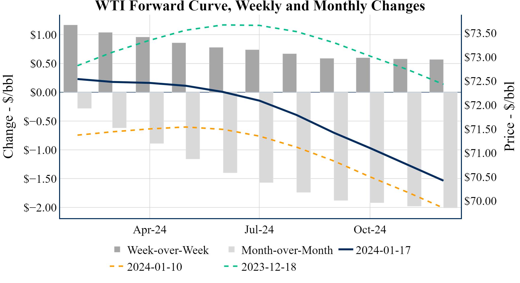 Prompt-Month WTI (Feb 24) was up $0.16 on the day, to settle at $72.56