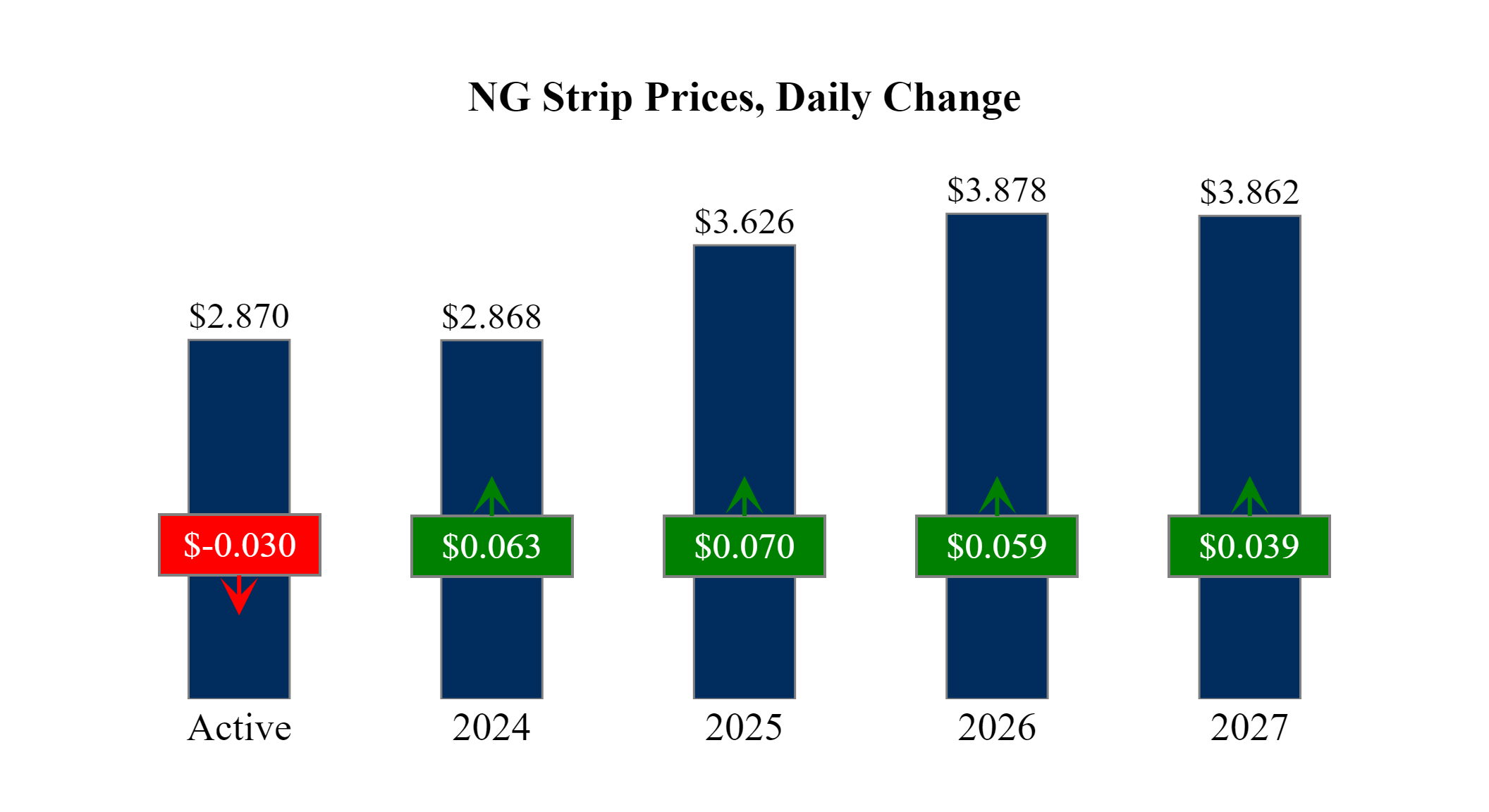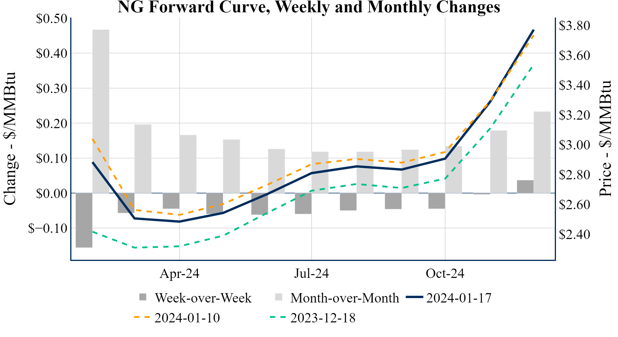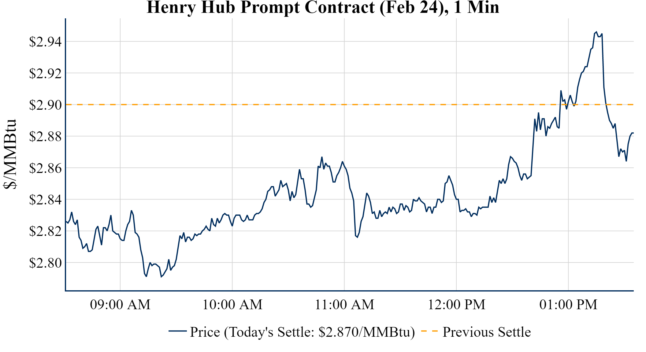 Prompt-Month Henry Hub (Feb 24) was down $-0.030 on the day, to settle at $2.870