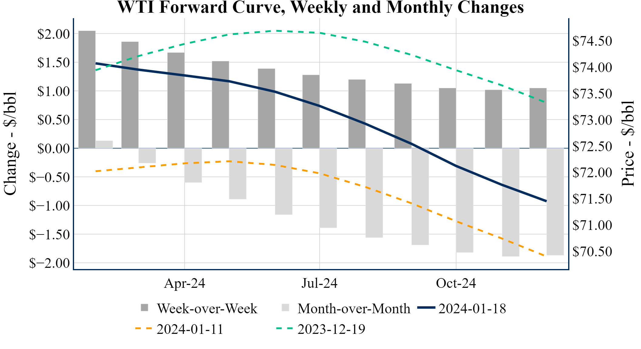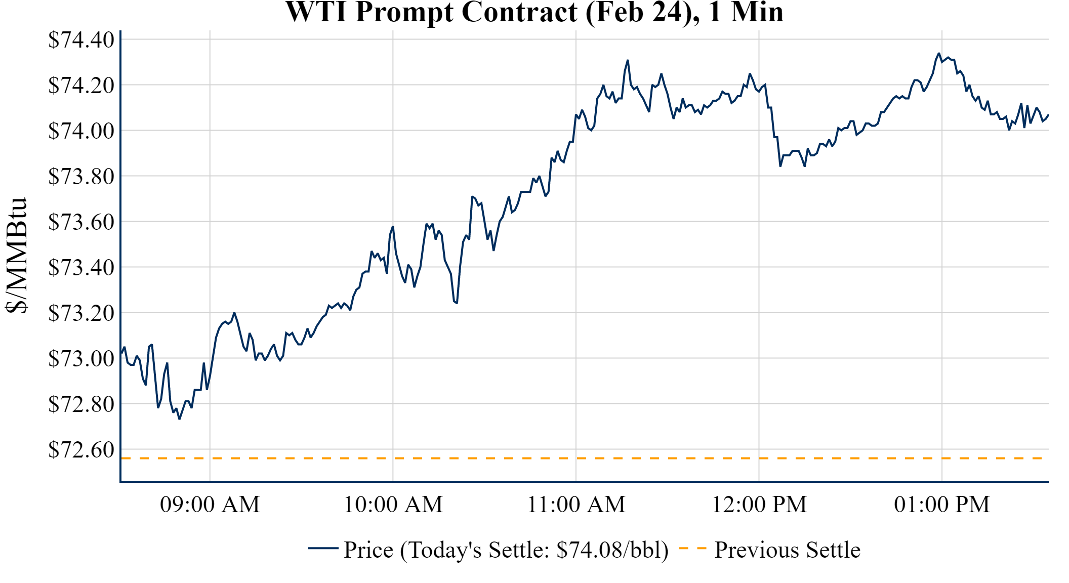 Prompt-Month WTI (Feb 24) was up $1.52 on the day, to settle at $74.08