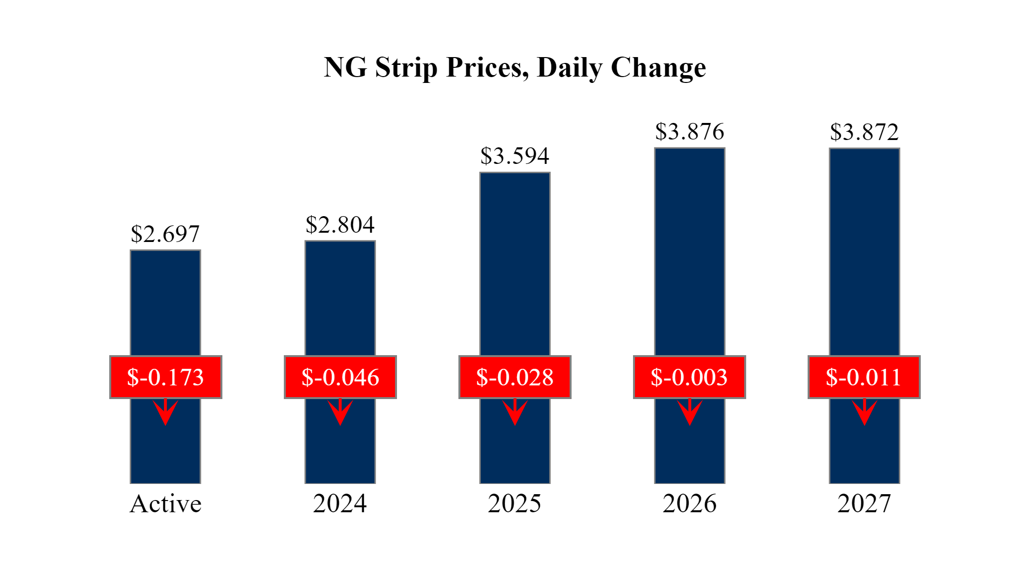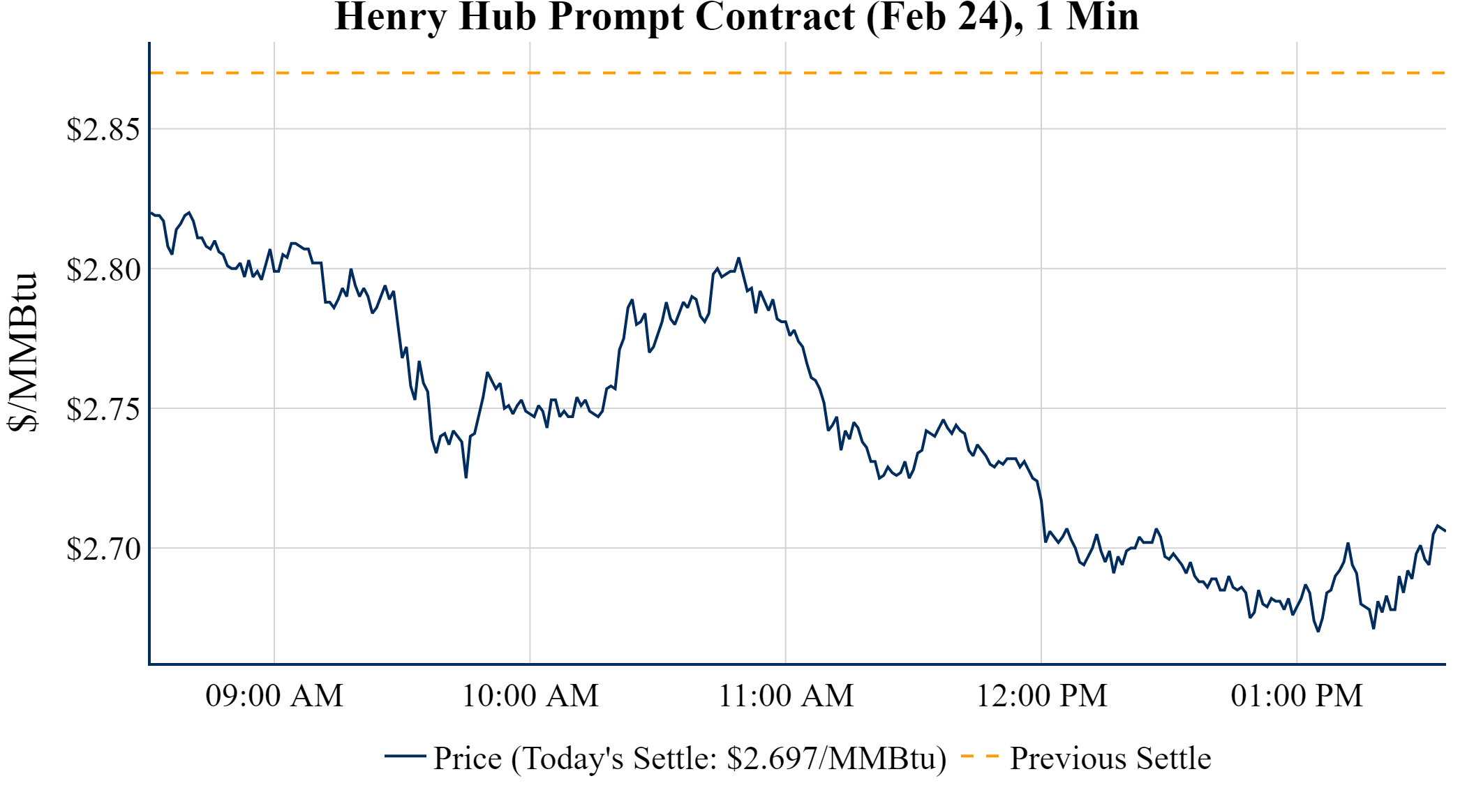 Prompt-Month Henry Hub (Feb 24) was down $-0.173 on the day, to settle at $2.697