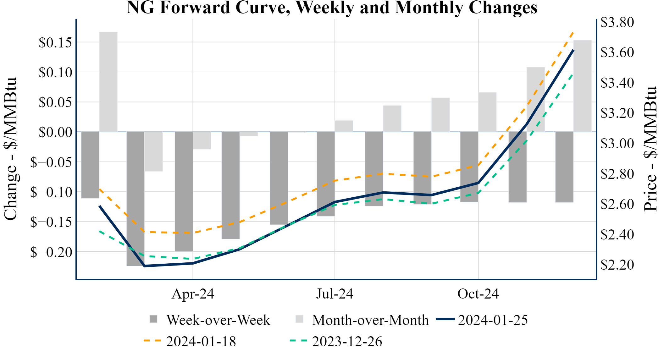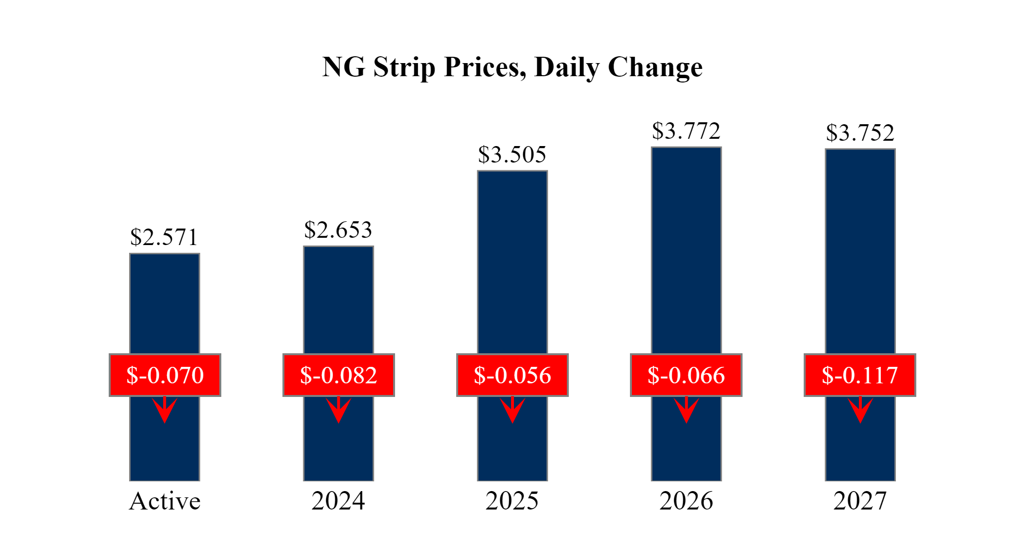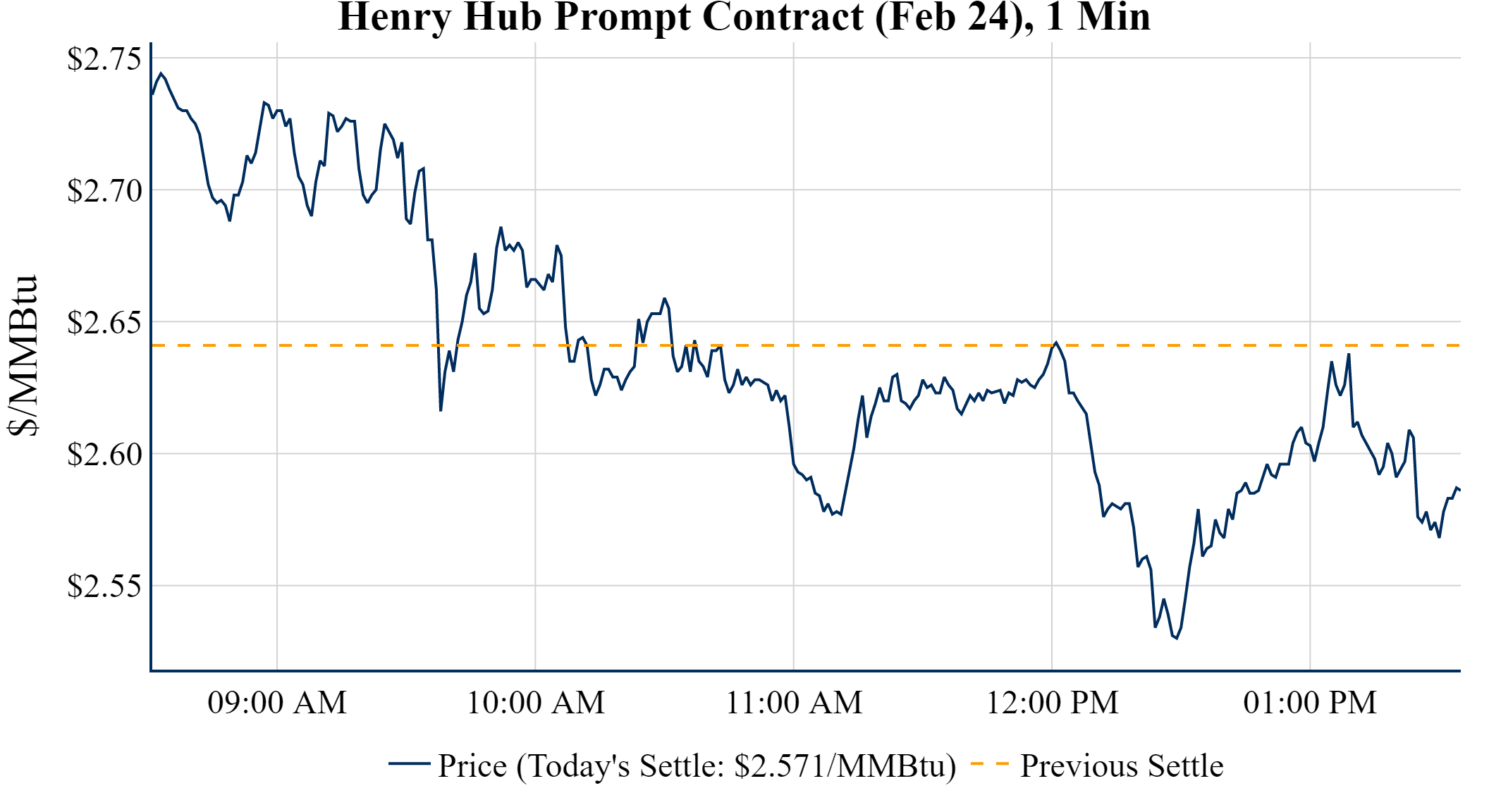 Prompt-Month Henry Hub (Feb 24) was down $-0.070 on the day, to settle at $2.571
