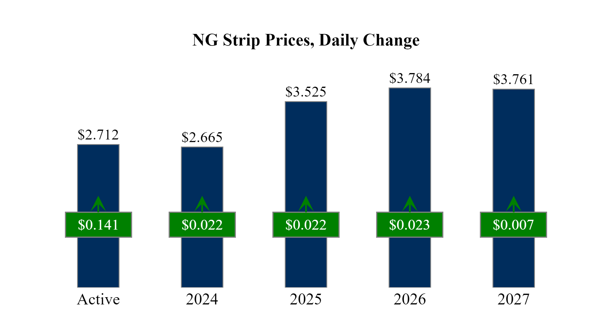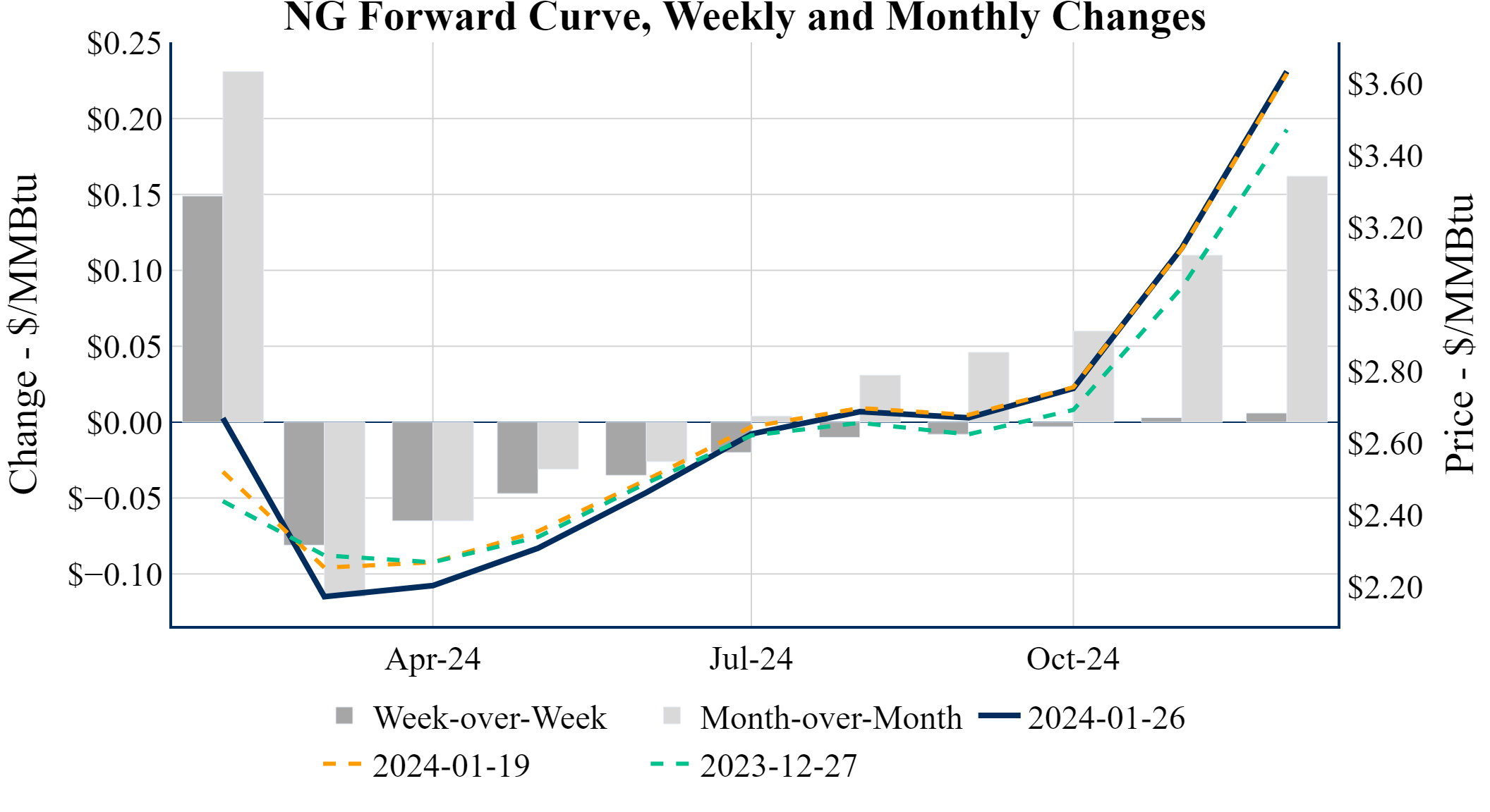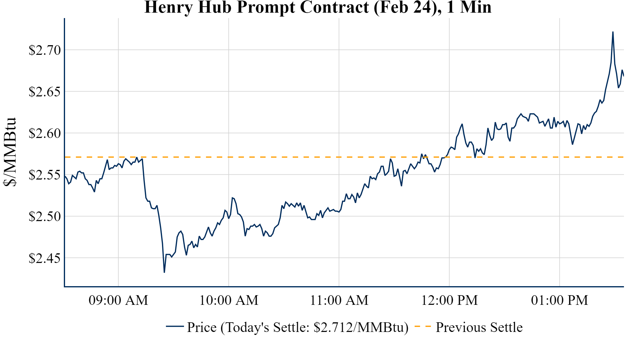Prompt-Month Henry Hub (Feb 24) was up $0.141 on the day, to settle at $2.712
