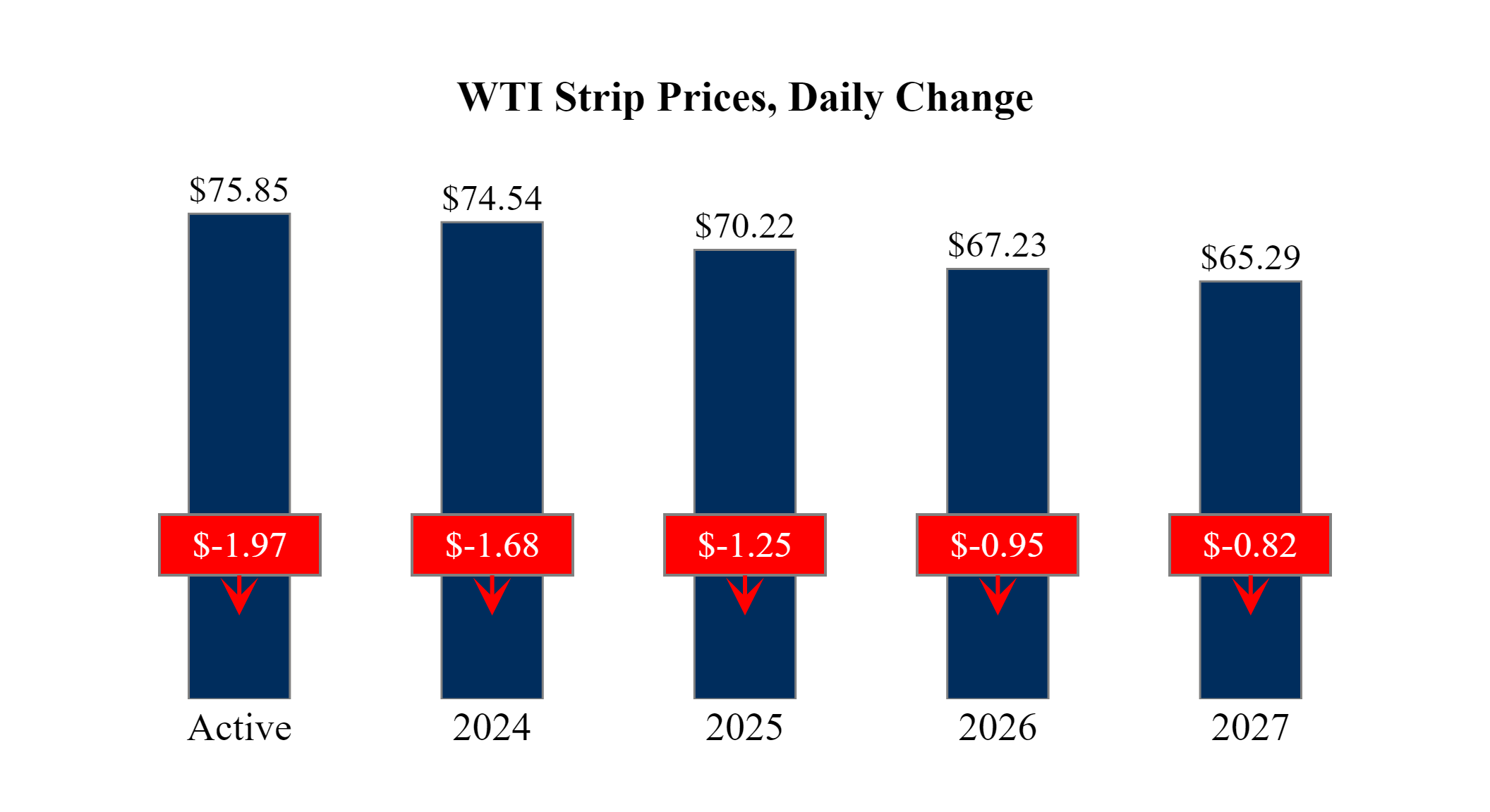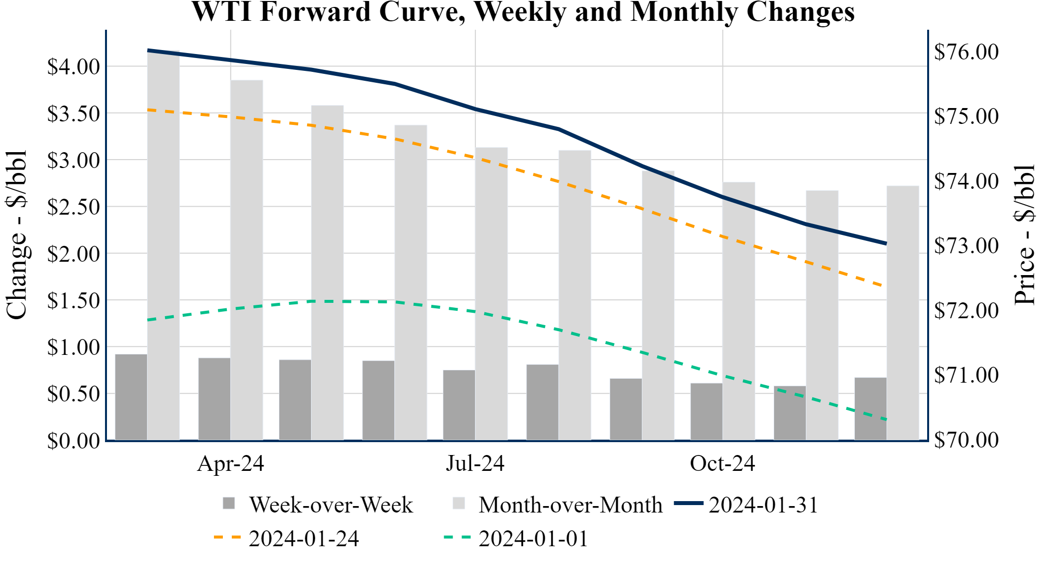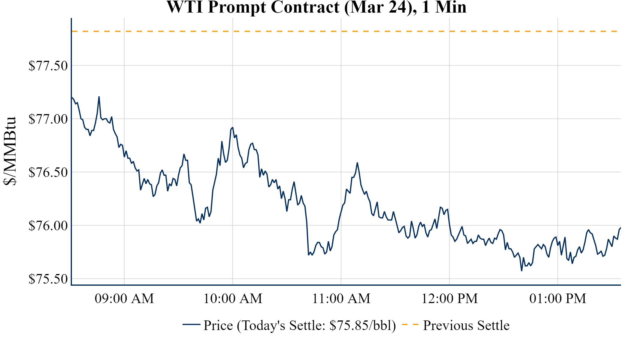 Prompt-Month WTI (Mar 24) was down $-1.97 on the day, to settle at $75.85