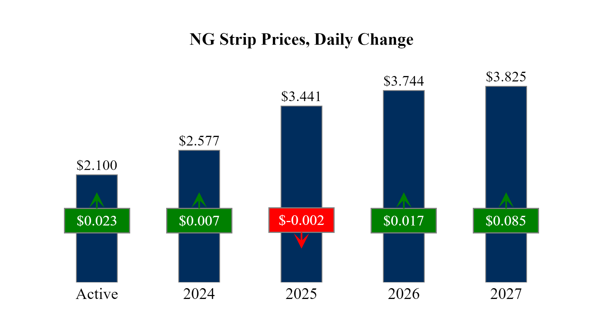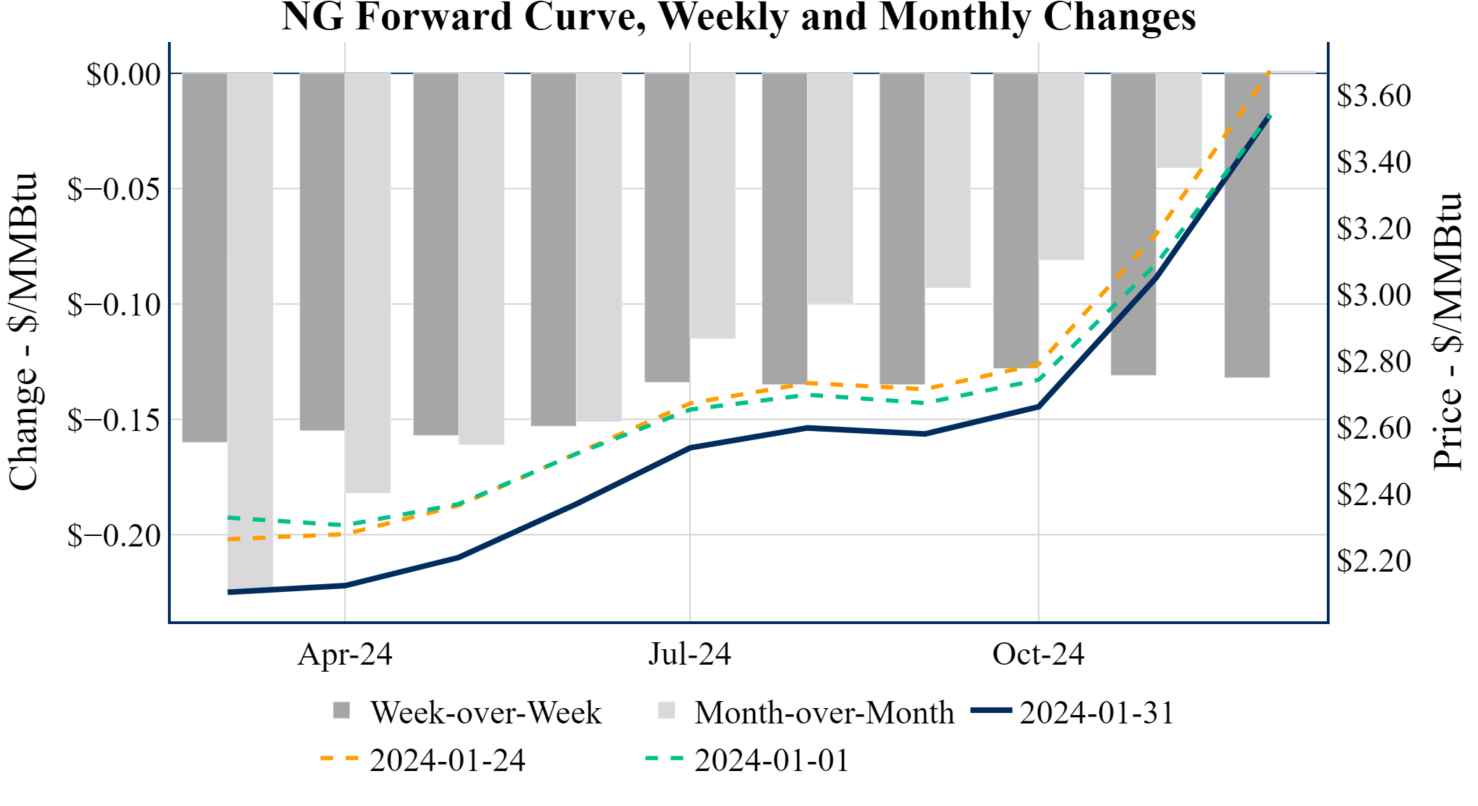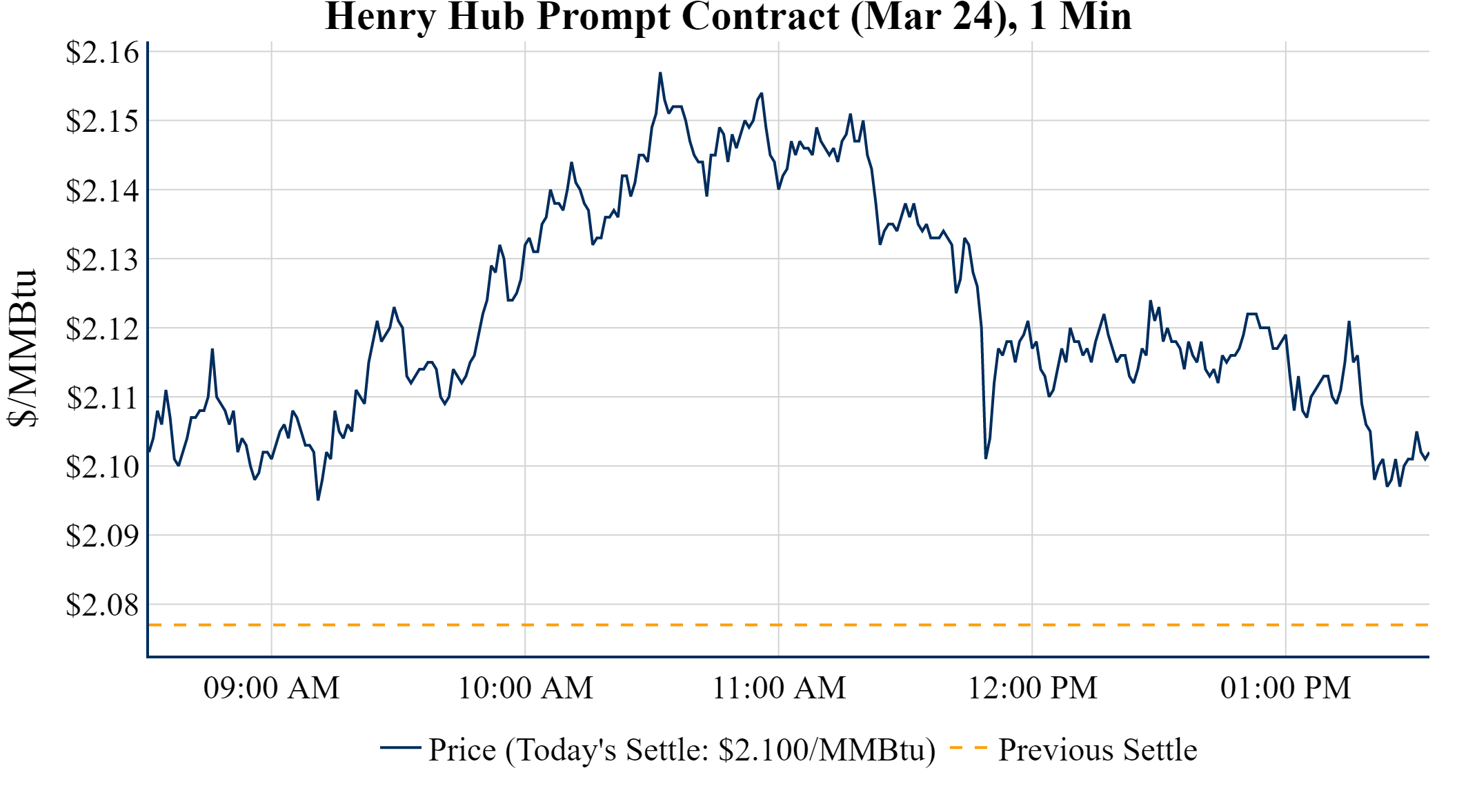 Prompt-Month Henry Hub (Mar 24) was up $0.023 on the day, to settle at $2.100