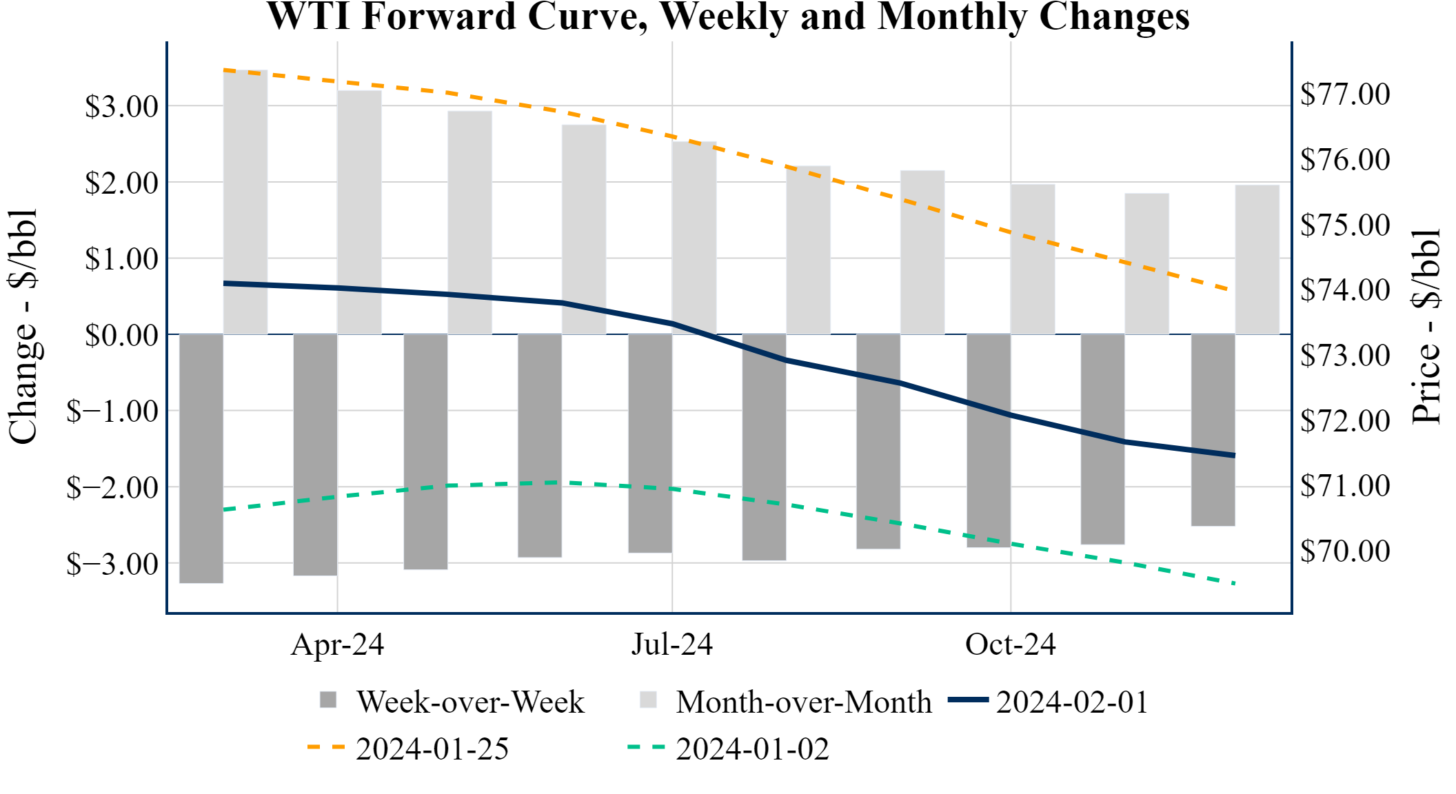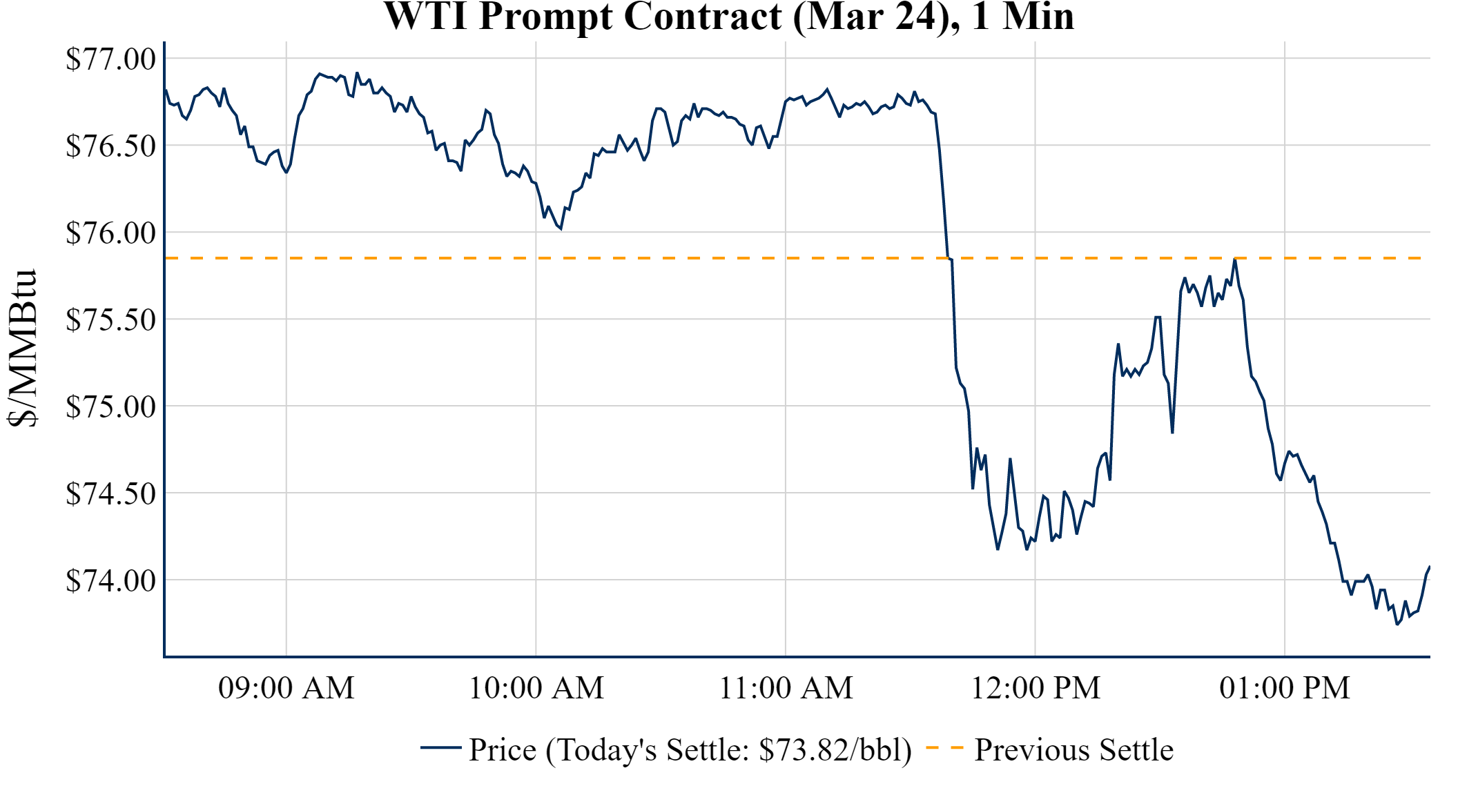 Prompt-Month WTI (Mar 24) was down $-2.03 on the day, to settle at $73.82