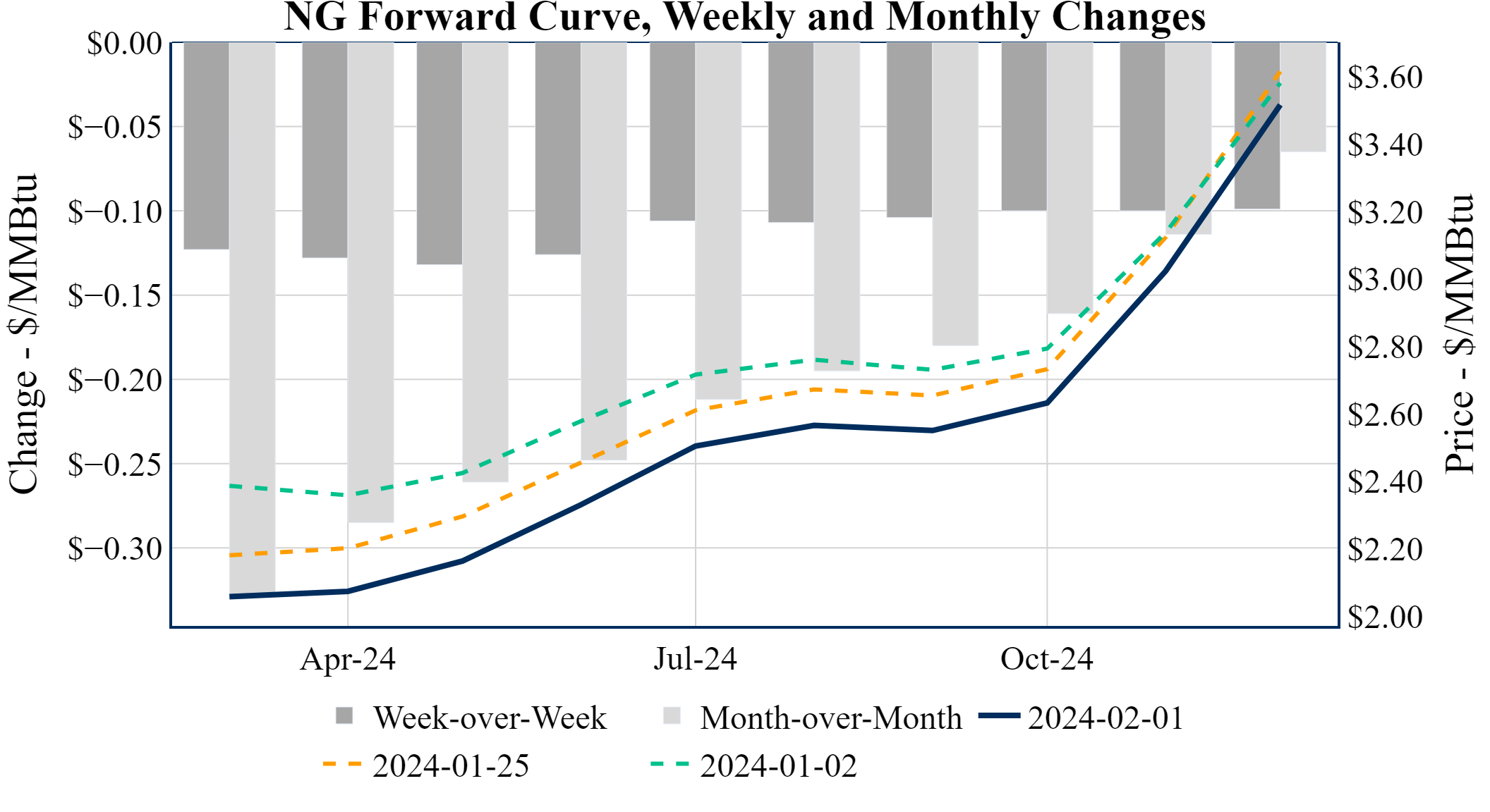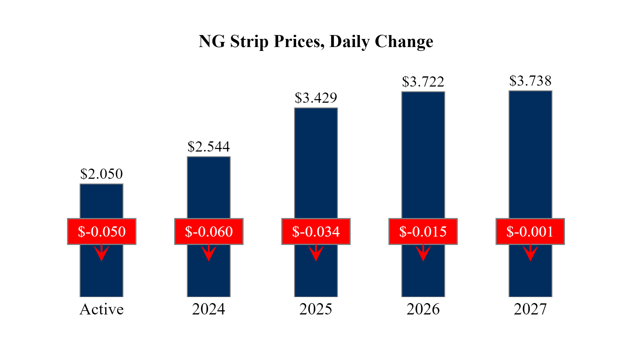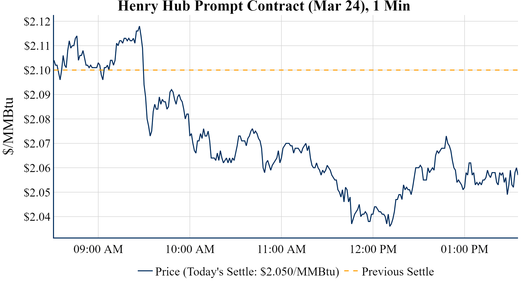 Prompt-Month Henry Hub (Mar 24) was down $-0.050 on the day, to settle at $2.050