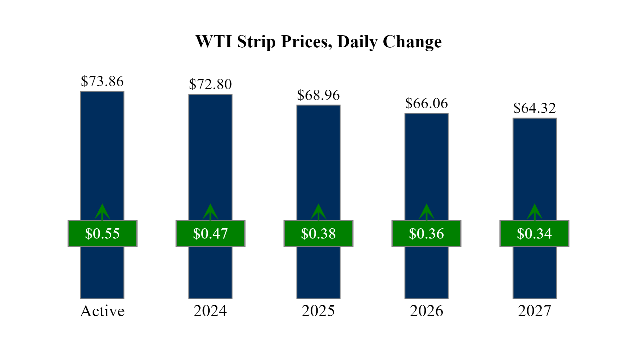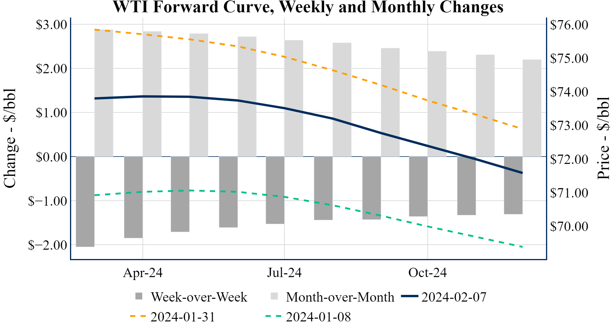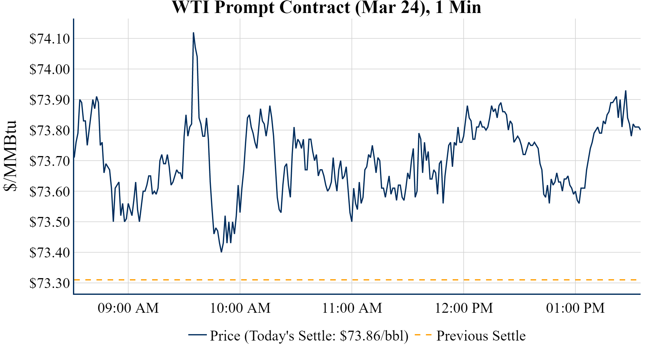 Prompt-Month WTI (Mar 24) was up $0.55 on the day, to settle at $73.86