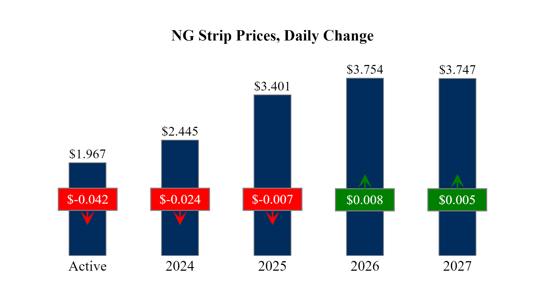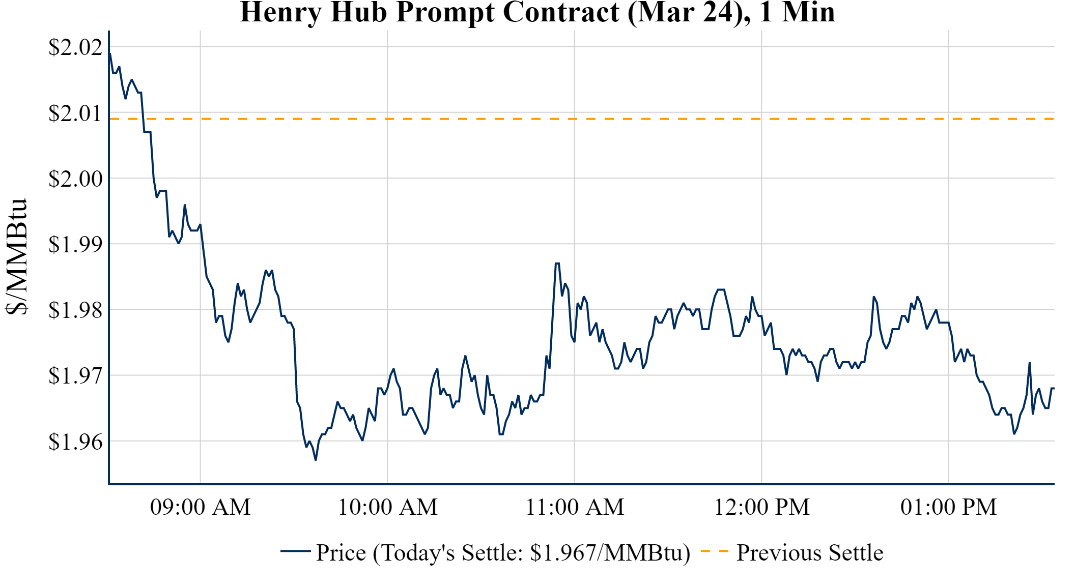 Prompt-Month Henry Hub (Mar 24) was down $-0.042 on the day, to settle at $1.967