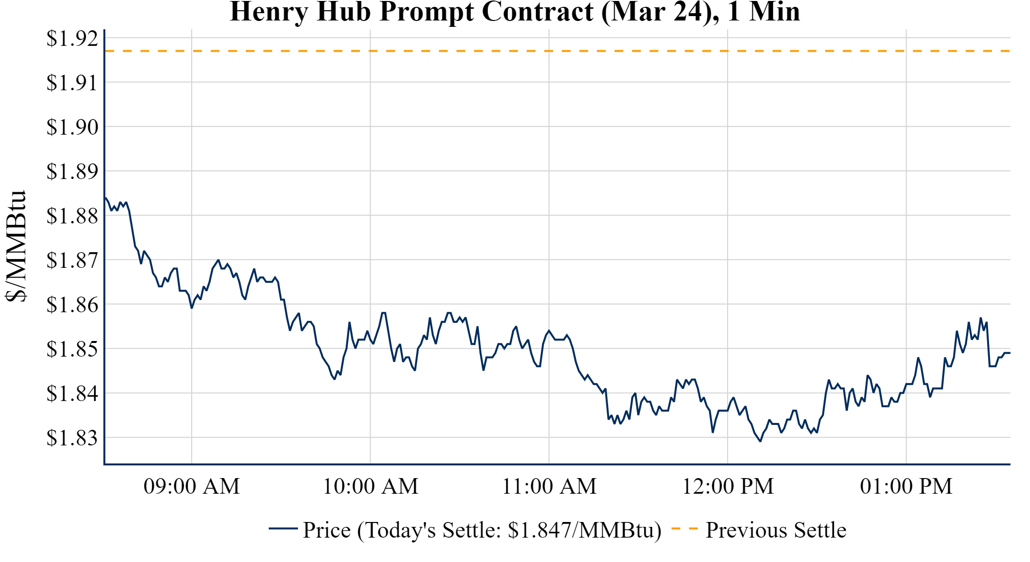 Prompt-Month Henry Hub (Mar 24) was down $-0.070 on the day, to settle at $1.847