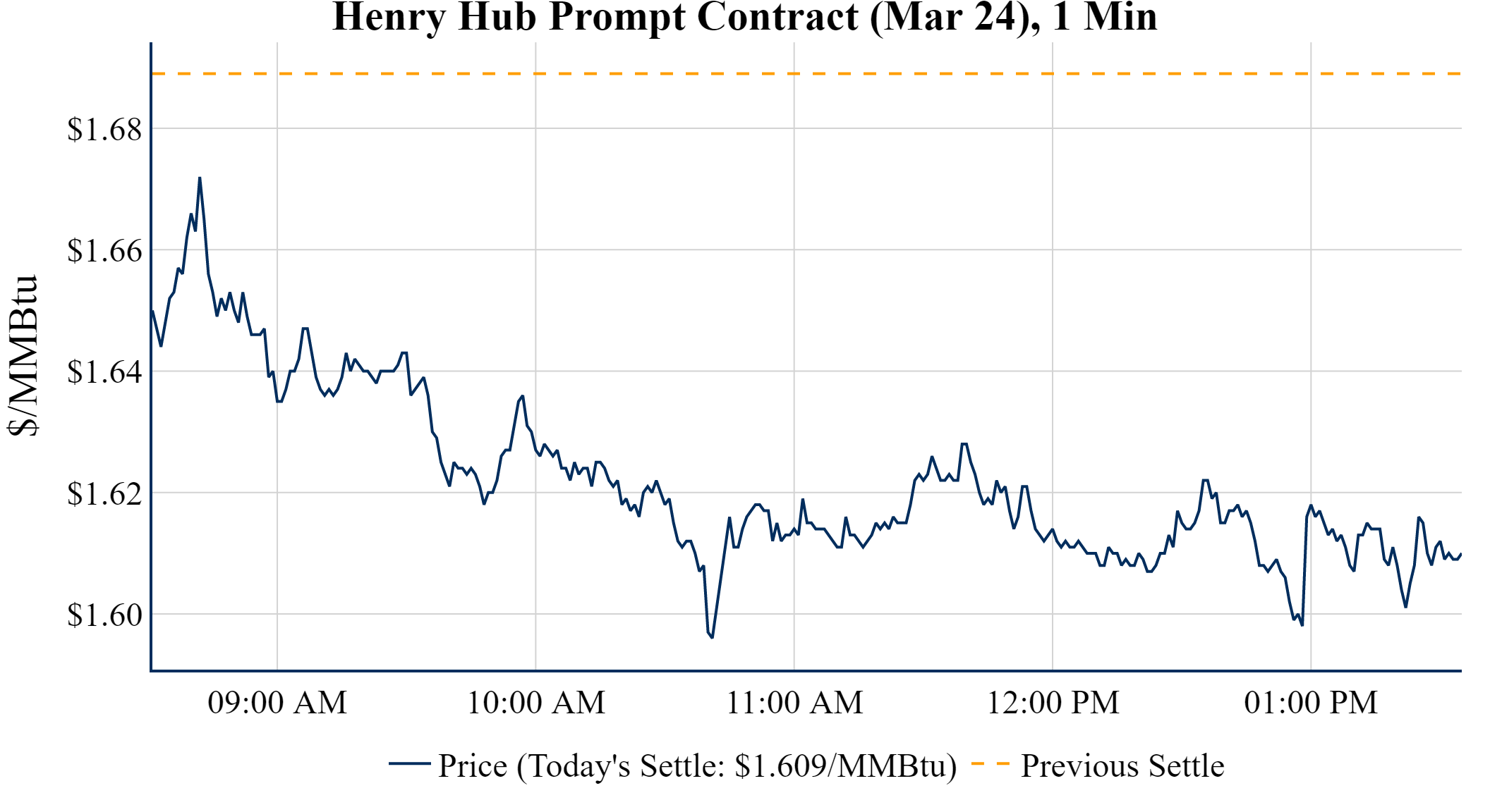Prompt-Month Henry Hub (Mar 24) was down $-0.080 on the day, to settle at $1.609