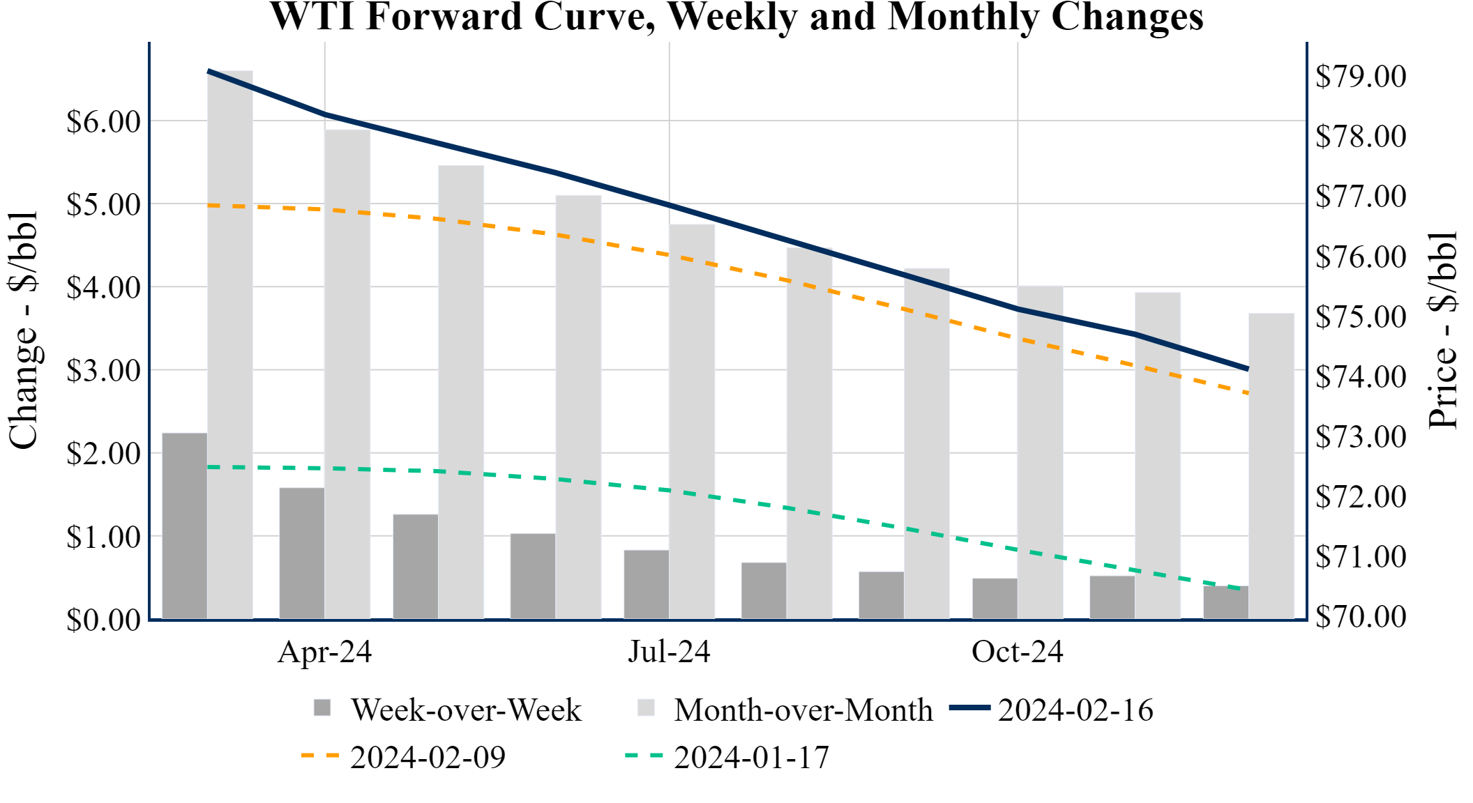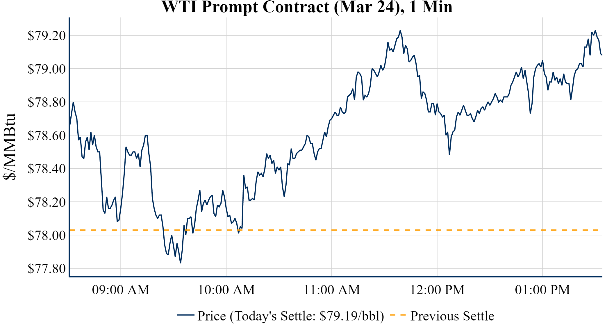 Prompt-Month WTI (Mar 24) was up $1.16 on the day, to settle at $79.19