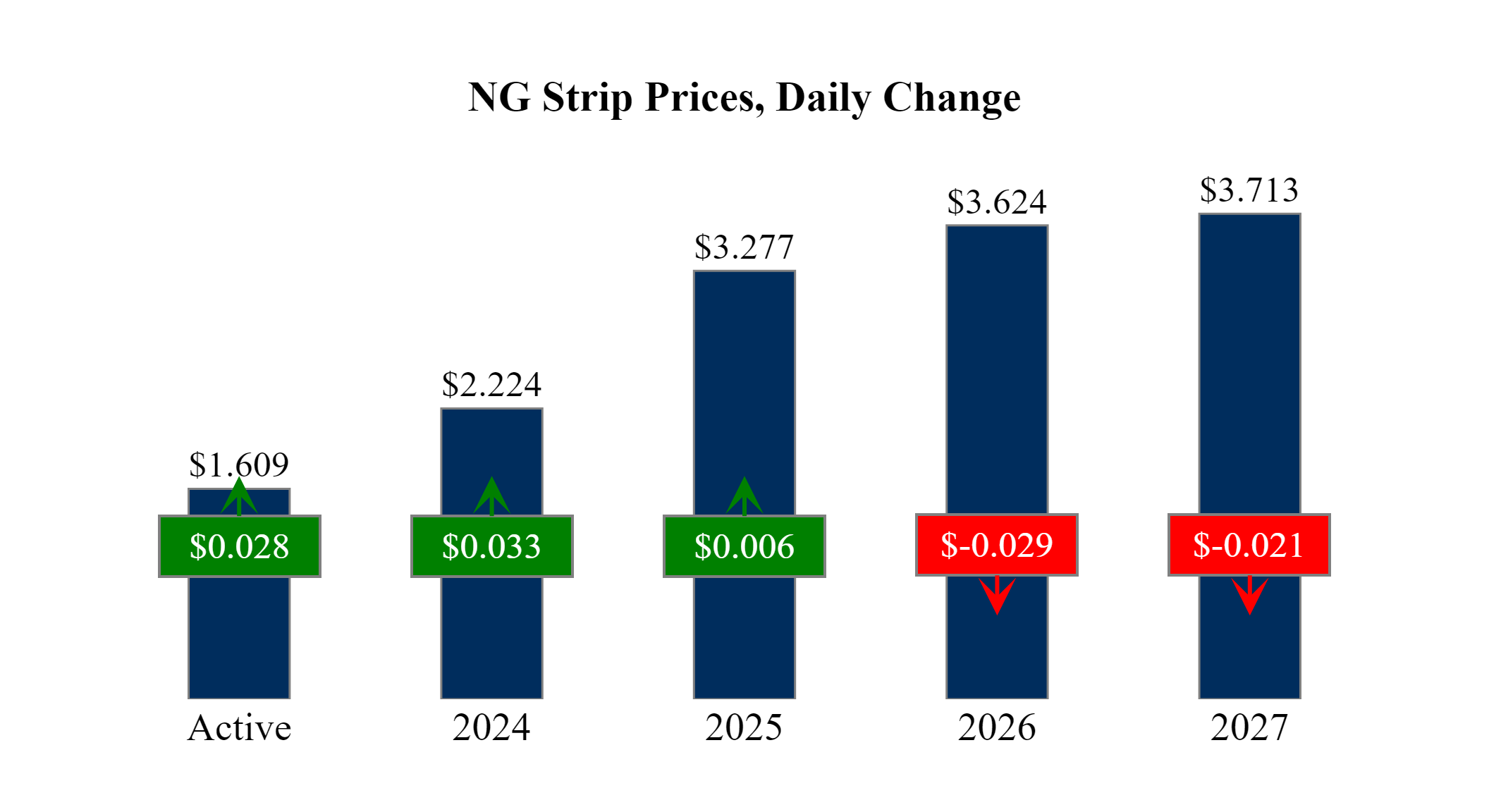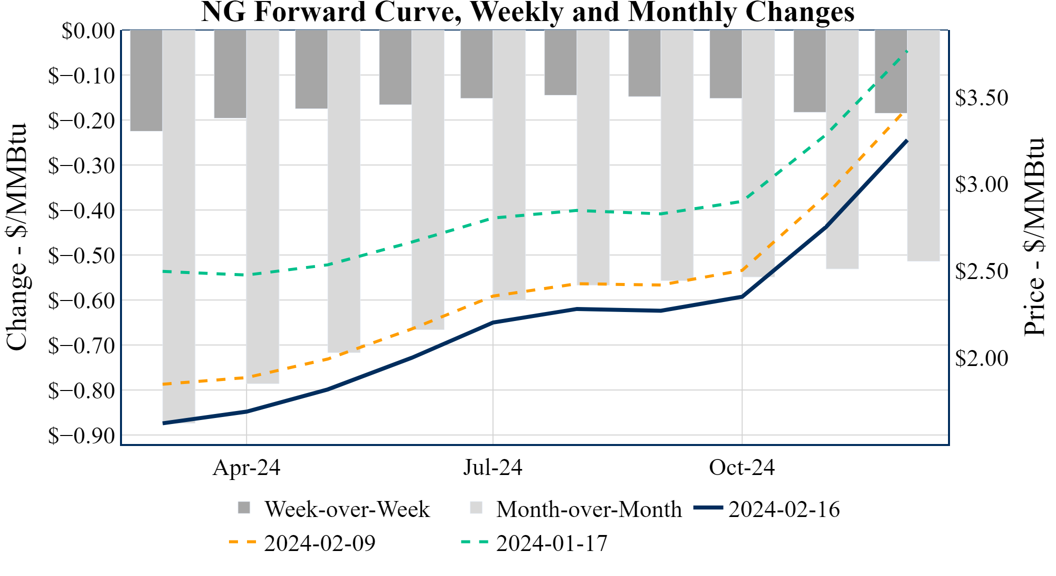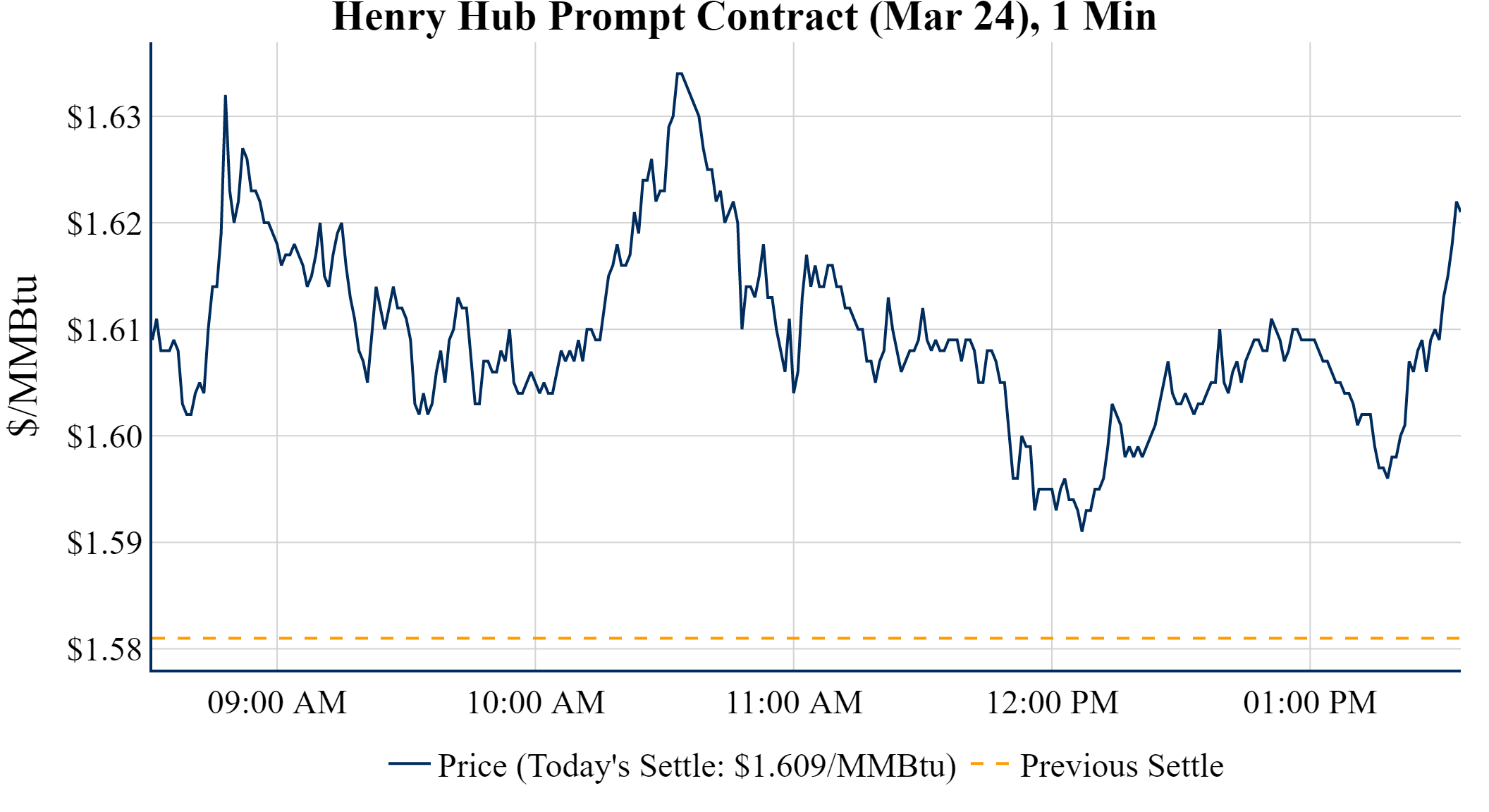 Prompt-Month Henry Hub (Mar 24) was up $0.028 on the day, to settle at $1.609