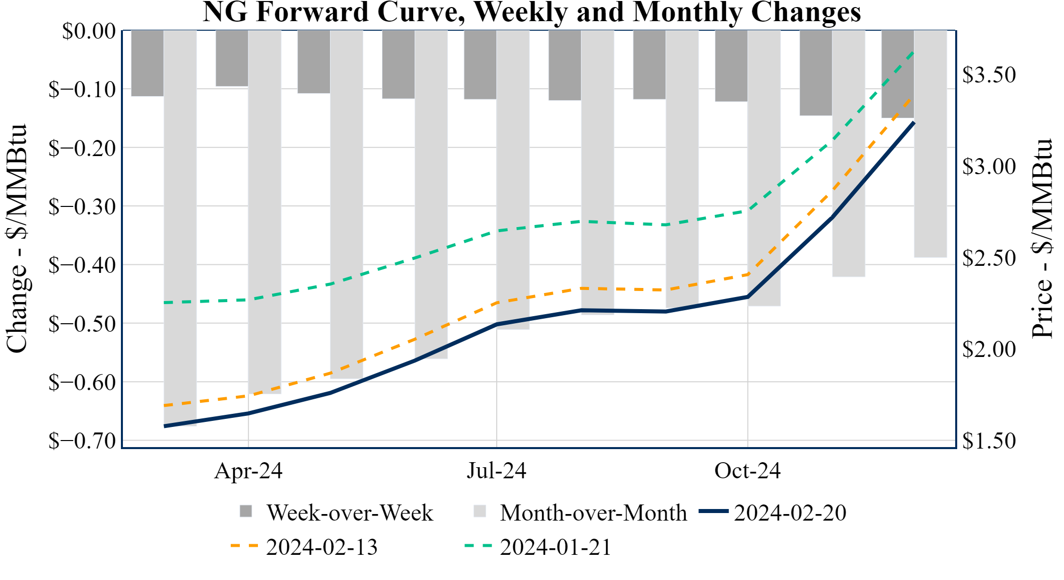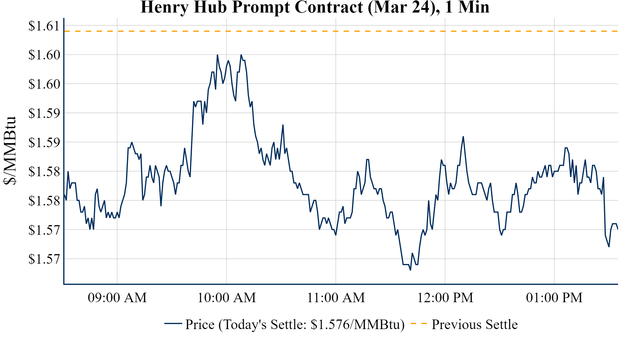 Prompt-Month Henry Hub (Mar 24) was down $-0.033 on the day, to settle at $1.576