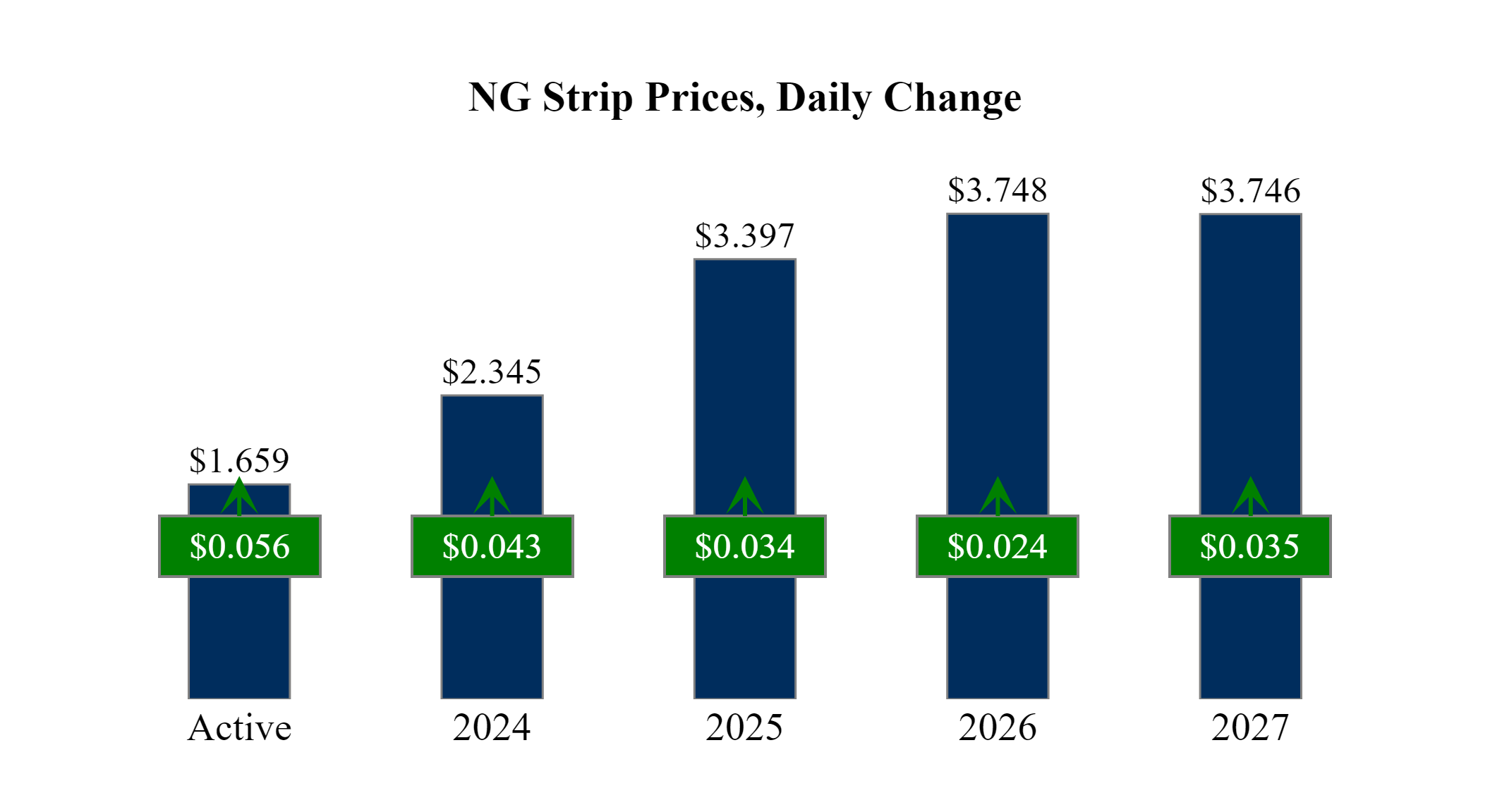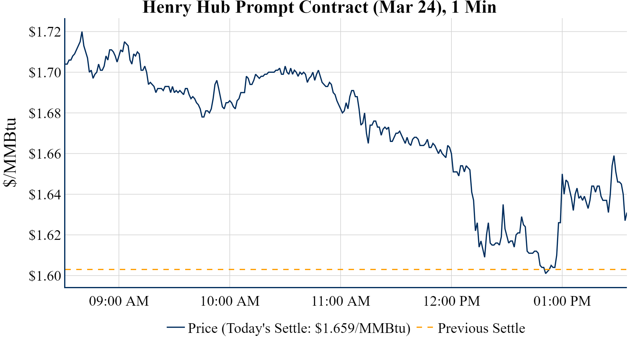 Prompt-Month Henry Hub (Mar 24) was up $0.056 on the day, to settle at $1.659