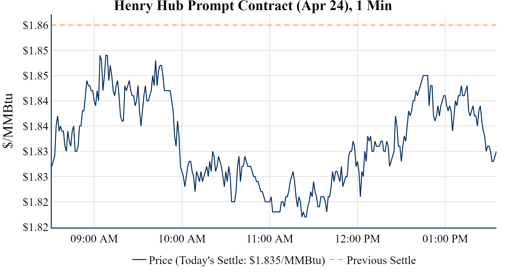 Prompt-Month Henry Hub (Apr 24) was down $-0.025 on the day, to settle at $1.835