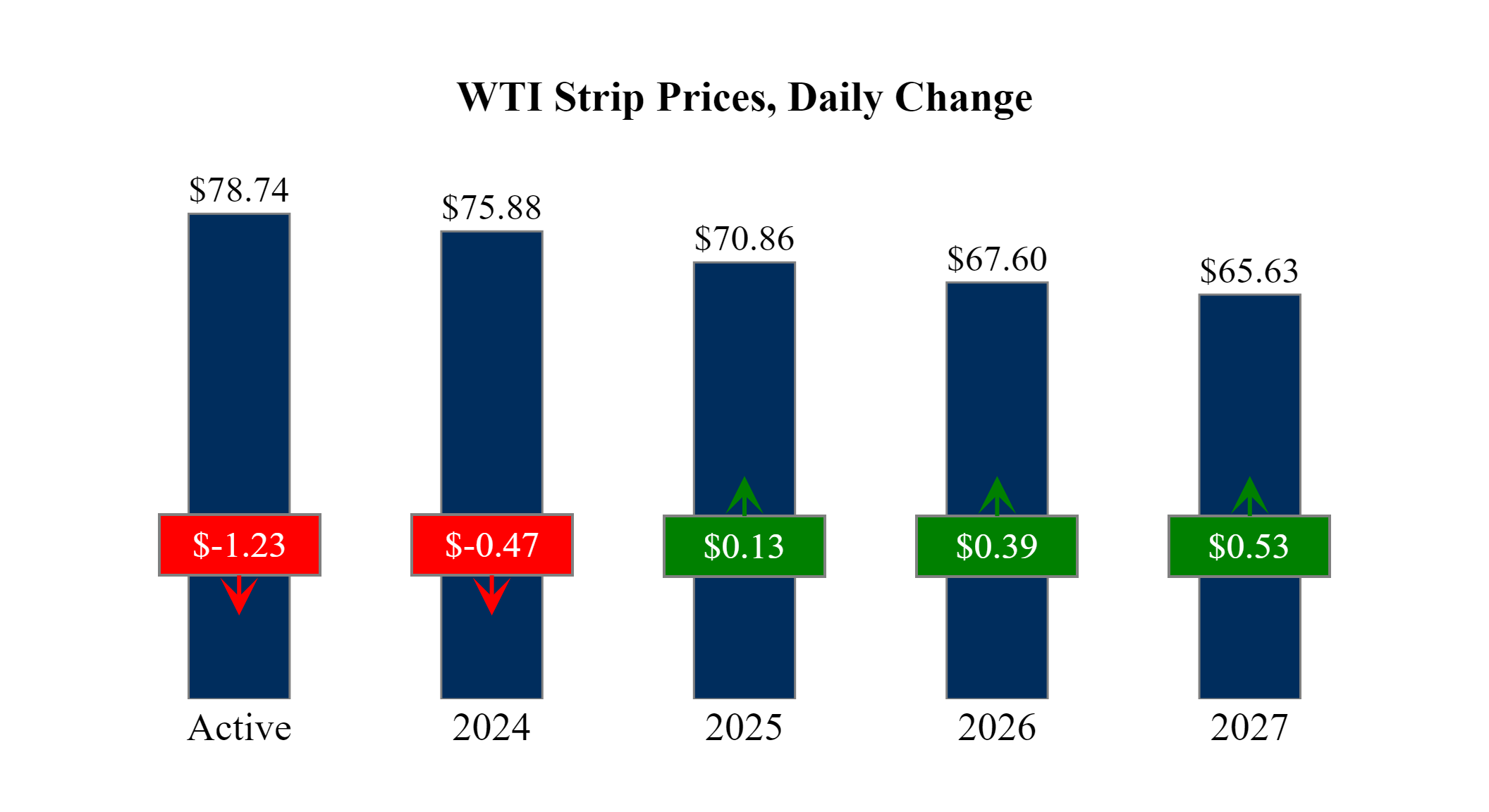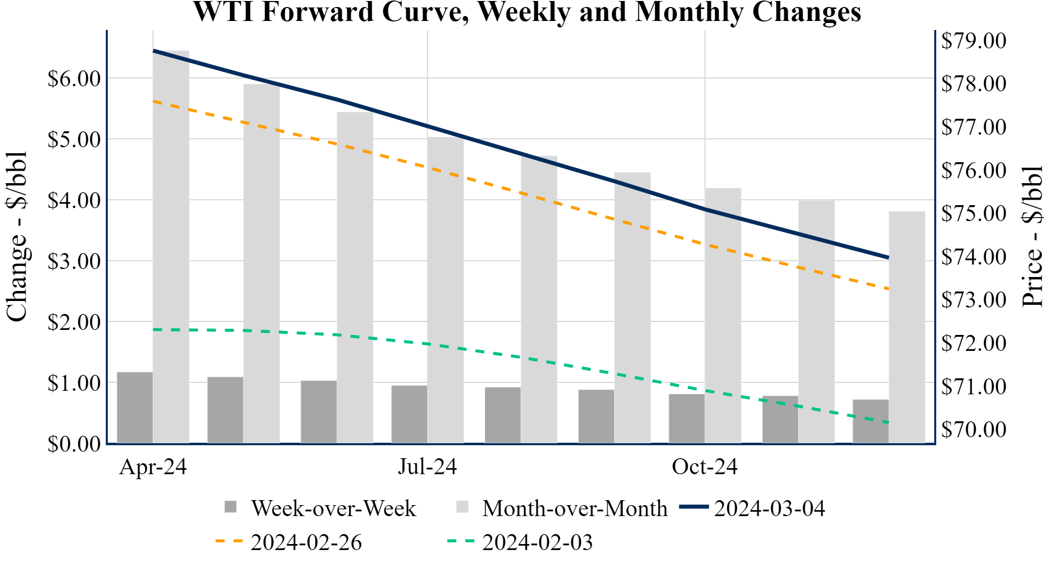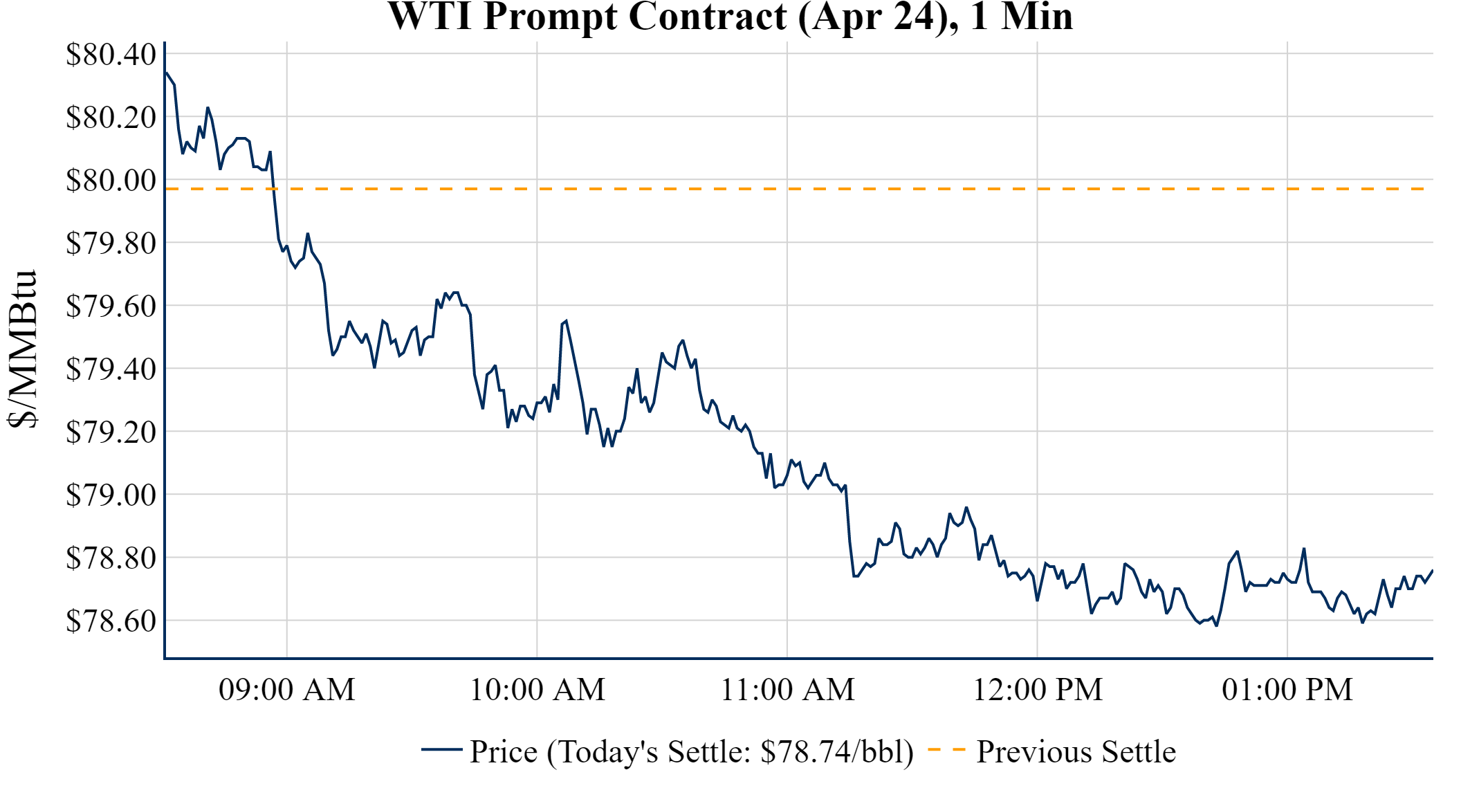 Prompt-Month WTI (Apr 24) was down $-1.23 on the day, to settle at $78.74