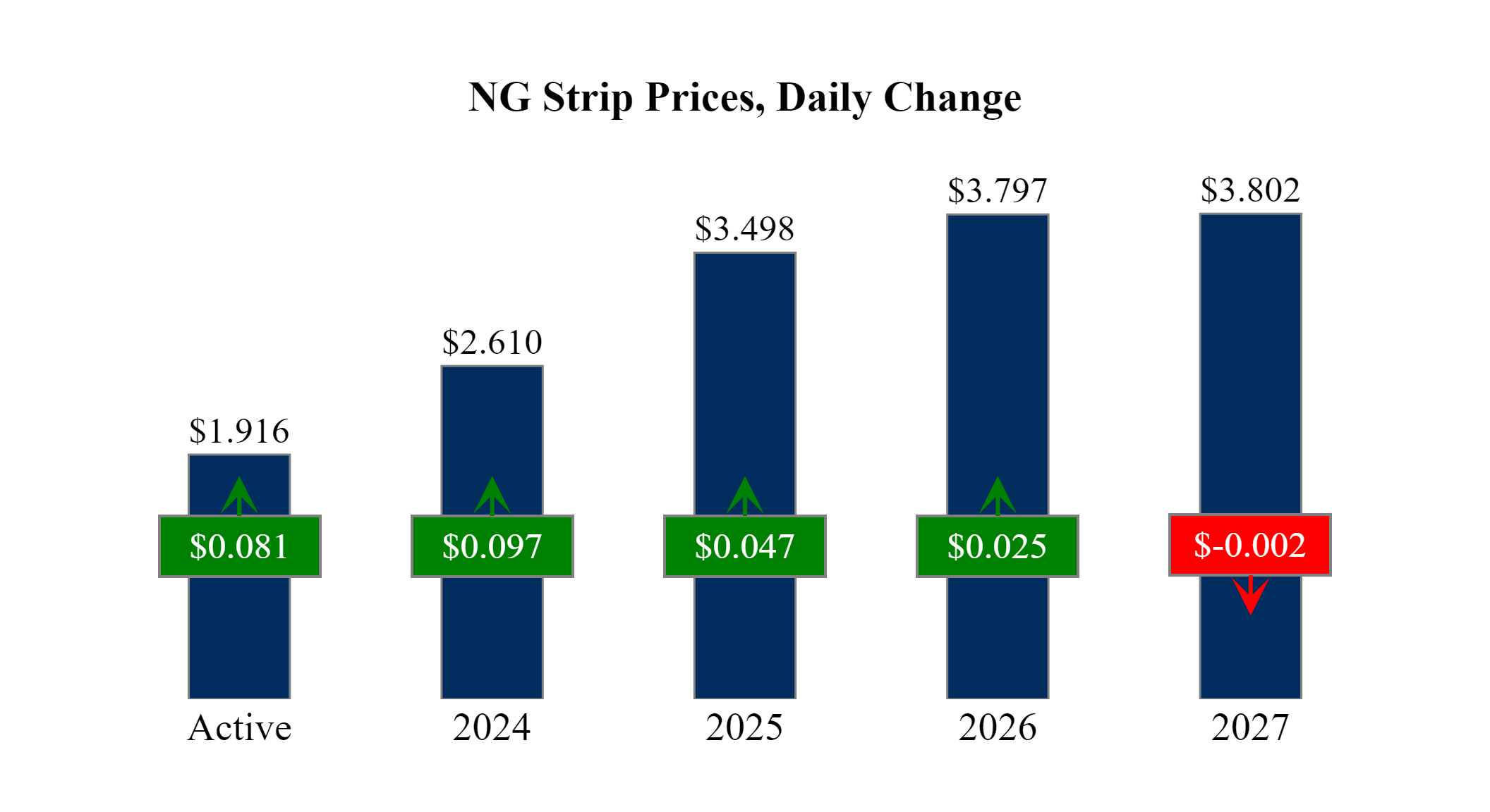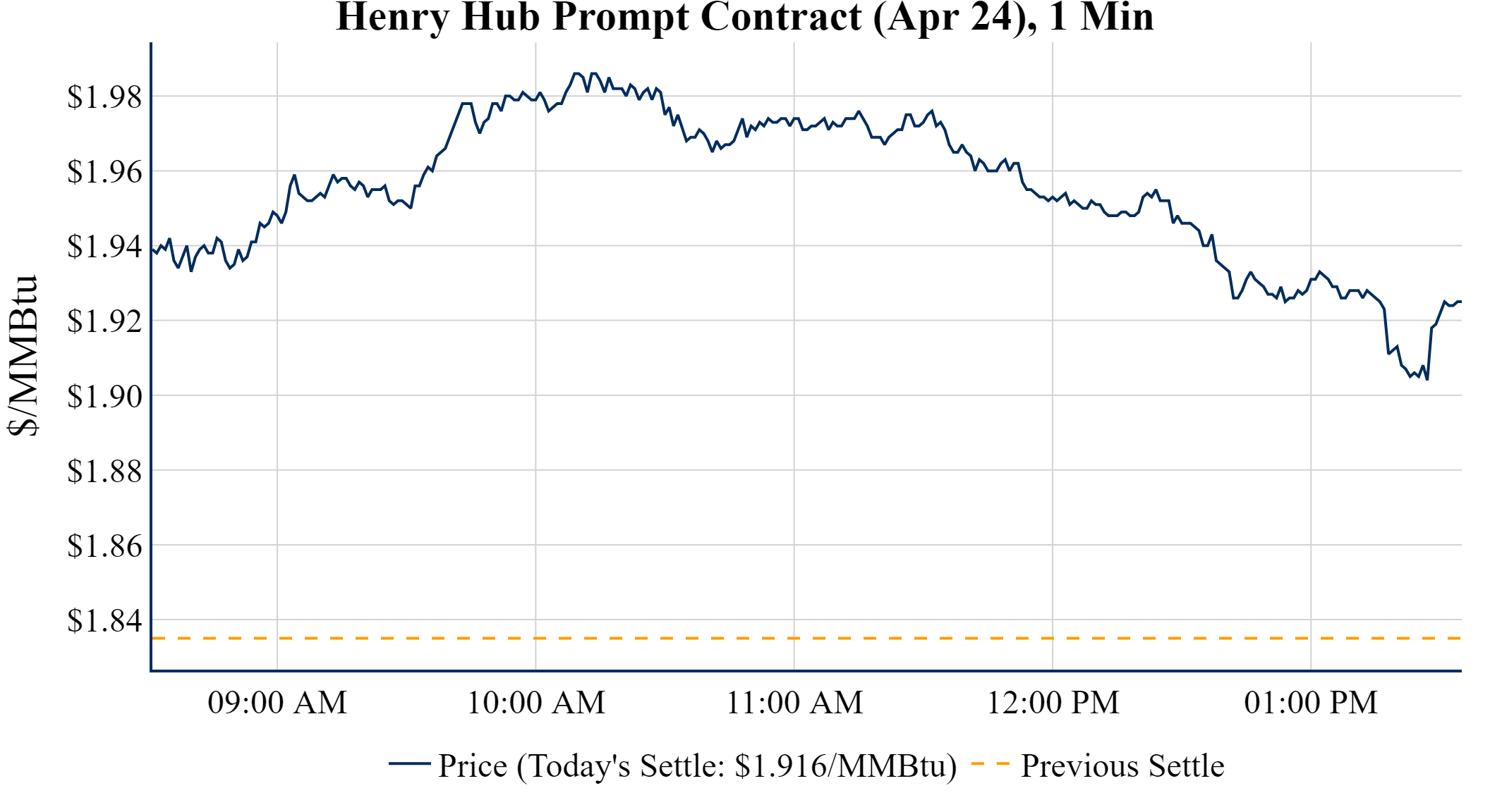 Prompt-Month Henry Hub (Apr 24) was up $0.081 on the day, to settle at $1.916